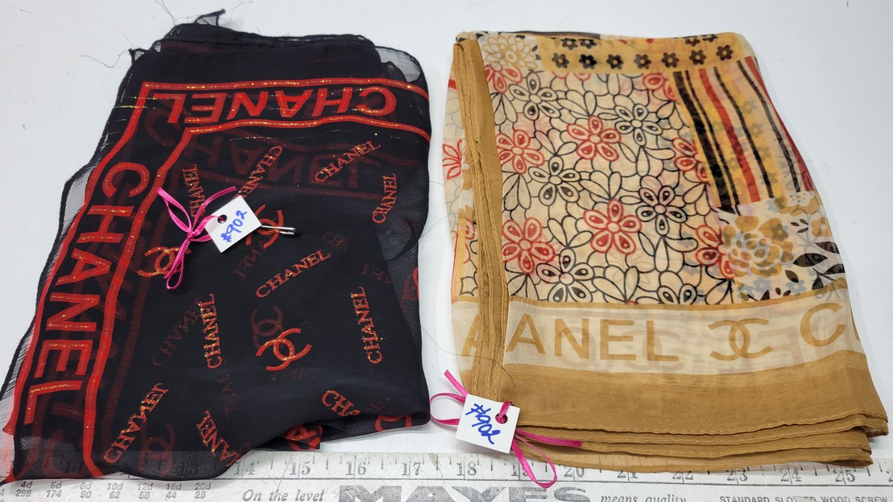 Pair of faux CHANEL scarves