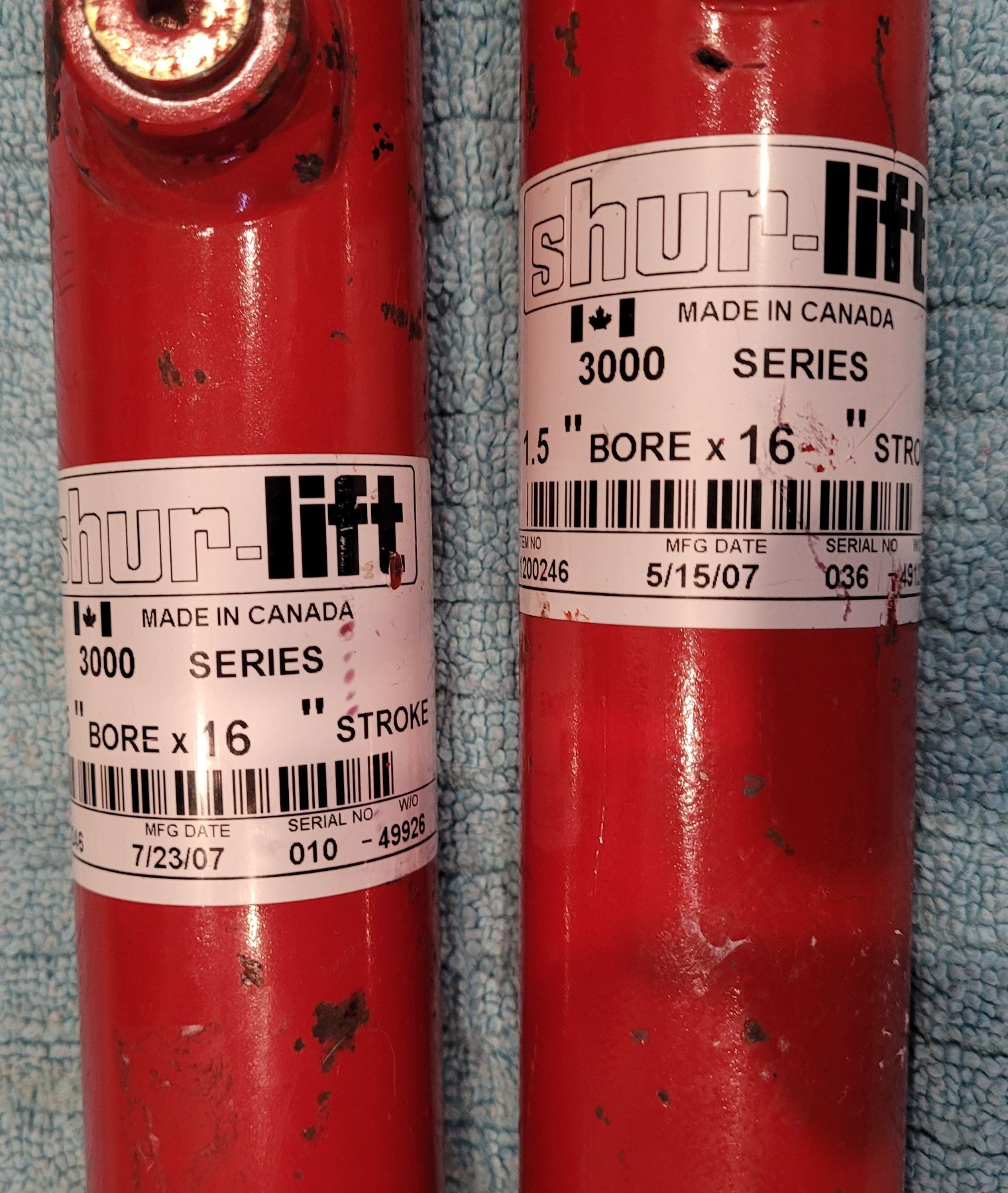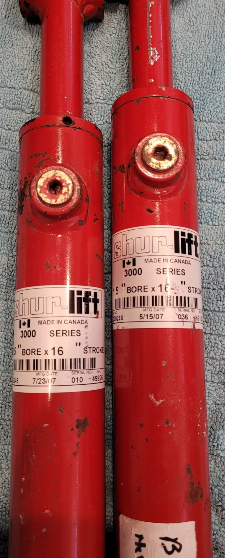 Pair of new shur-lift 3000 series hydraulic cylinders 1 1/2" bore x 16" stroke