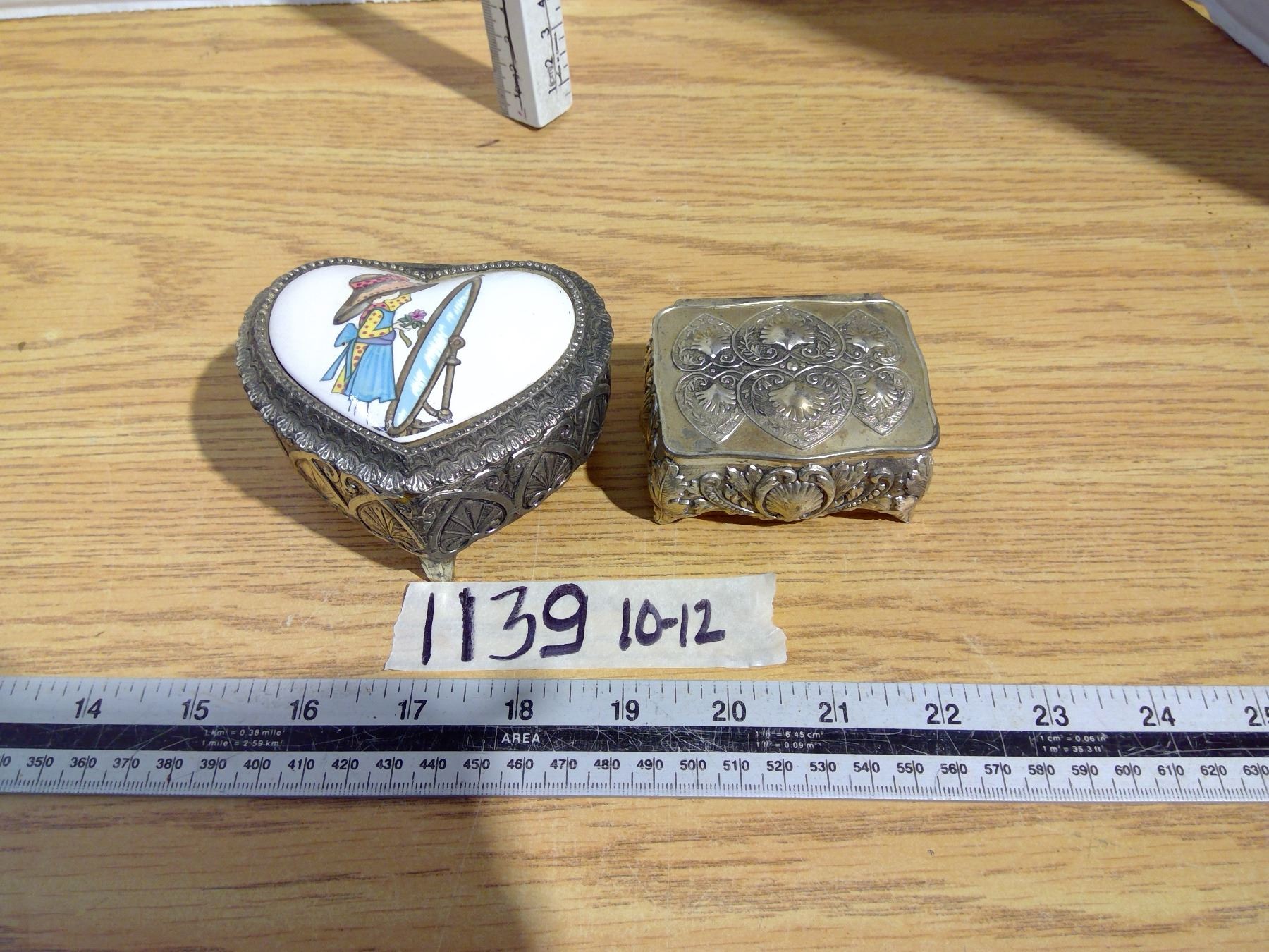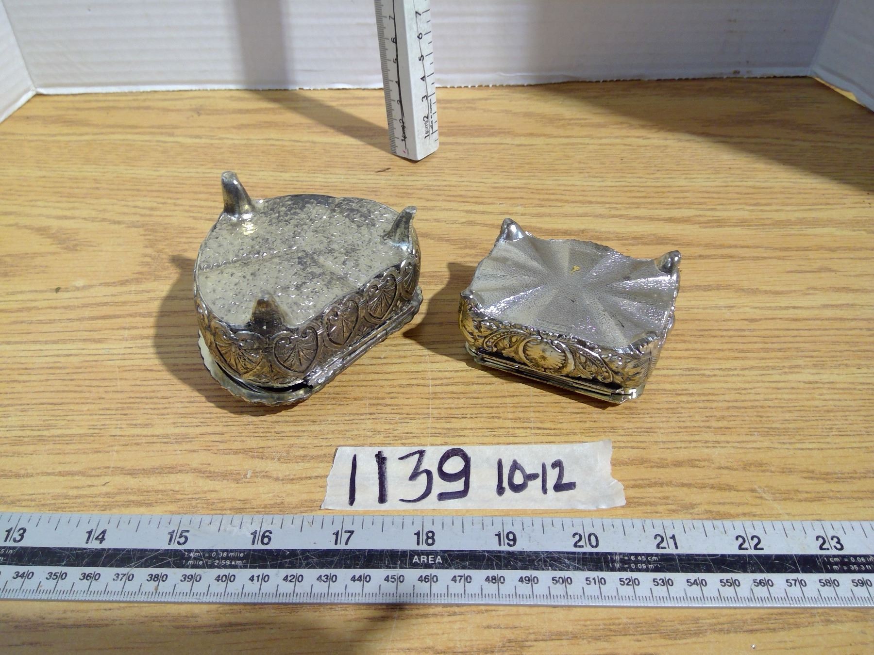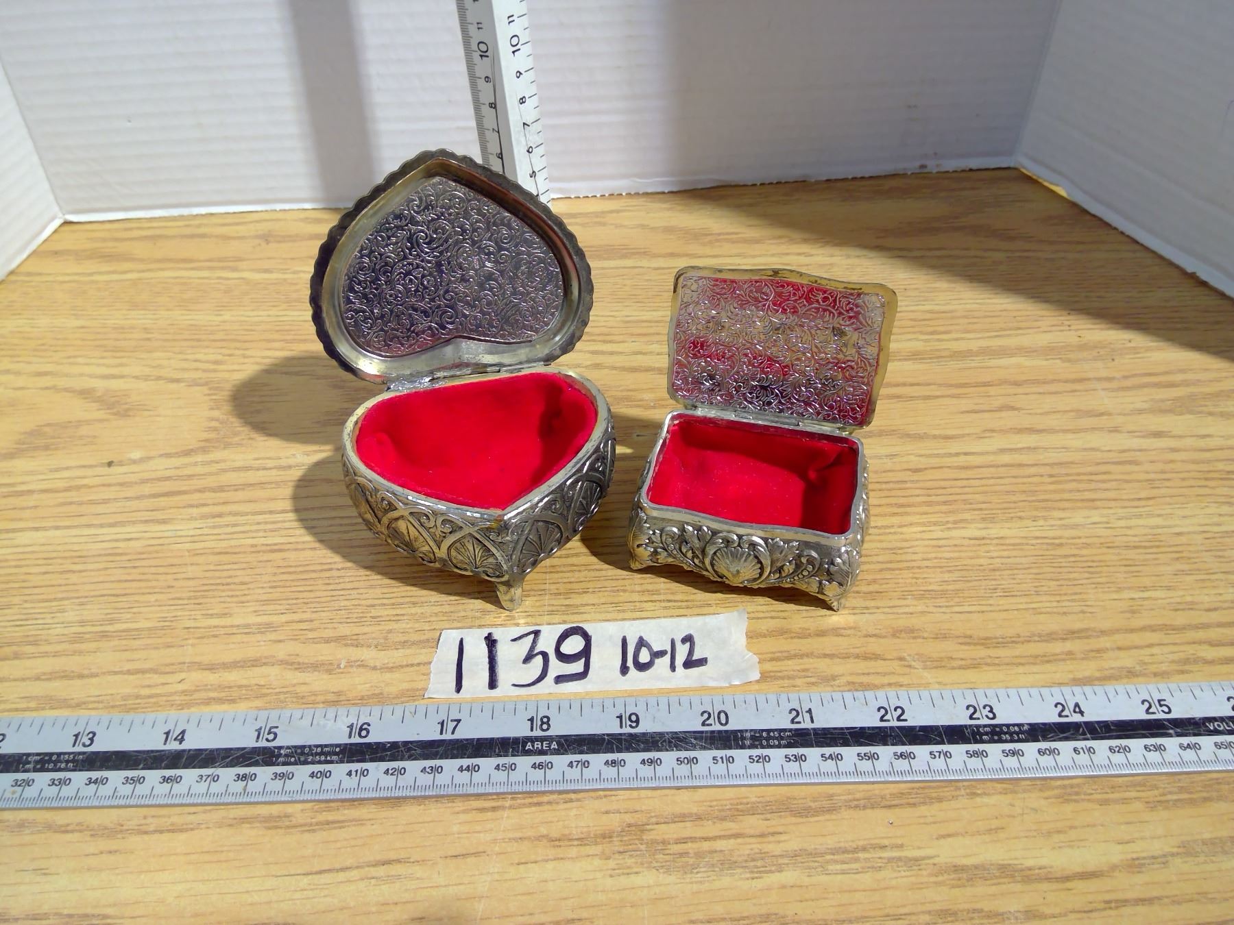Pair of silver colored heavy ring boxes