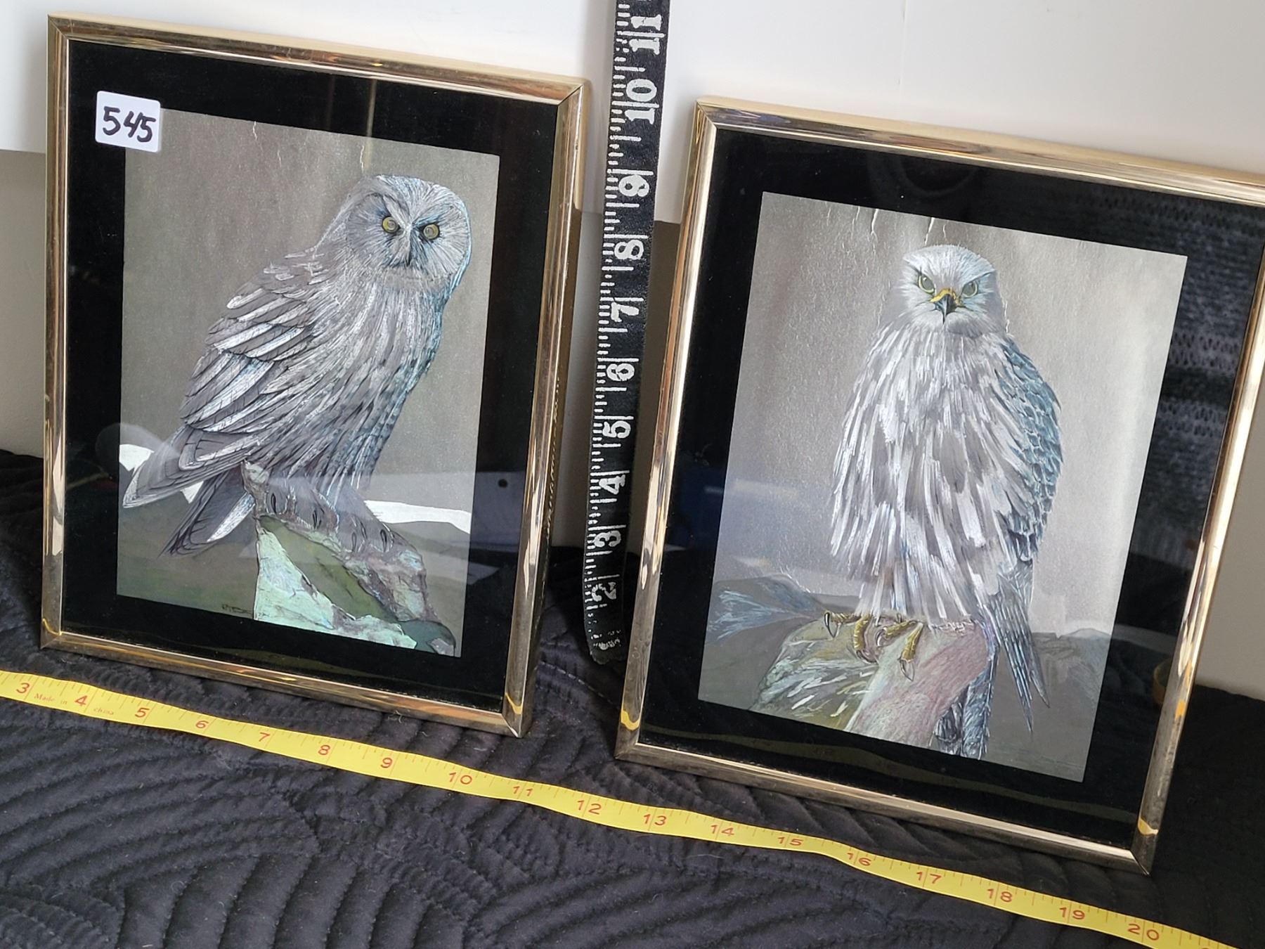 Pair of vintage foil owl prints.