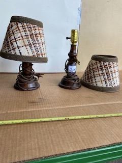 Pair ofMCM Night Stand Lamps Extra Long Cords, Wooden Bases