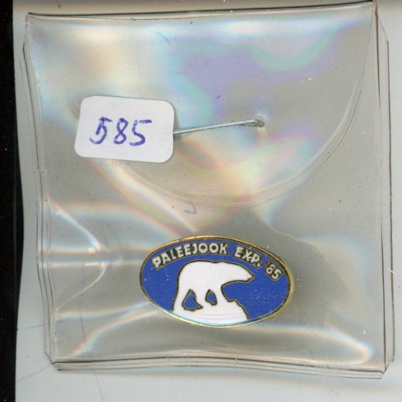 Paleejook Expo 85 pin. From what used to be the North West Territories, now Nunavut. Colourized.