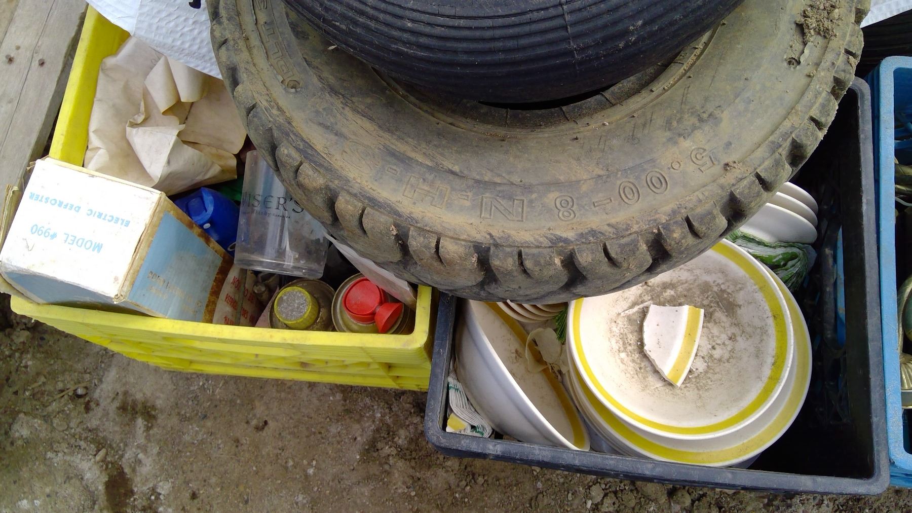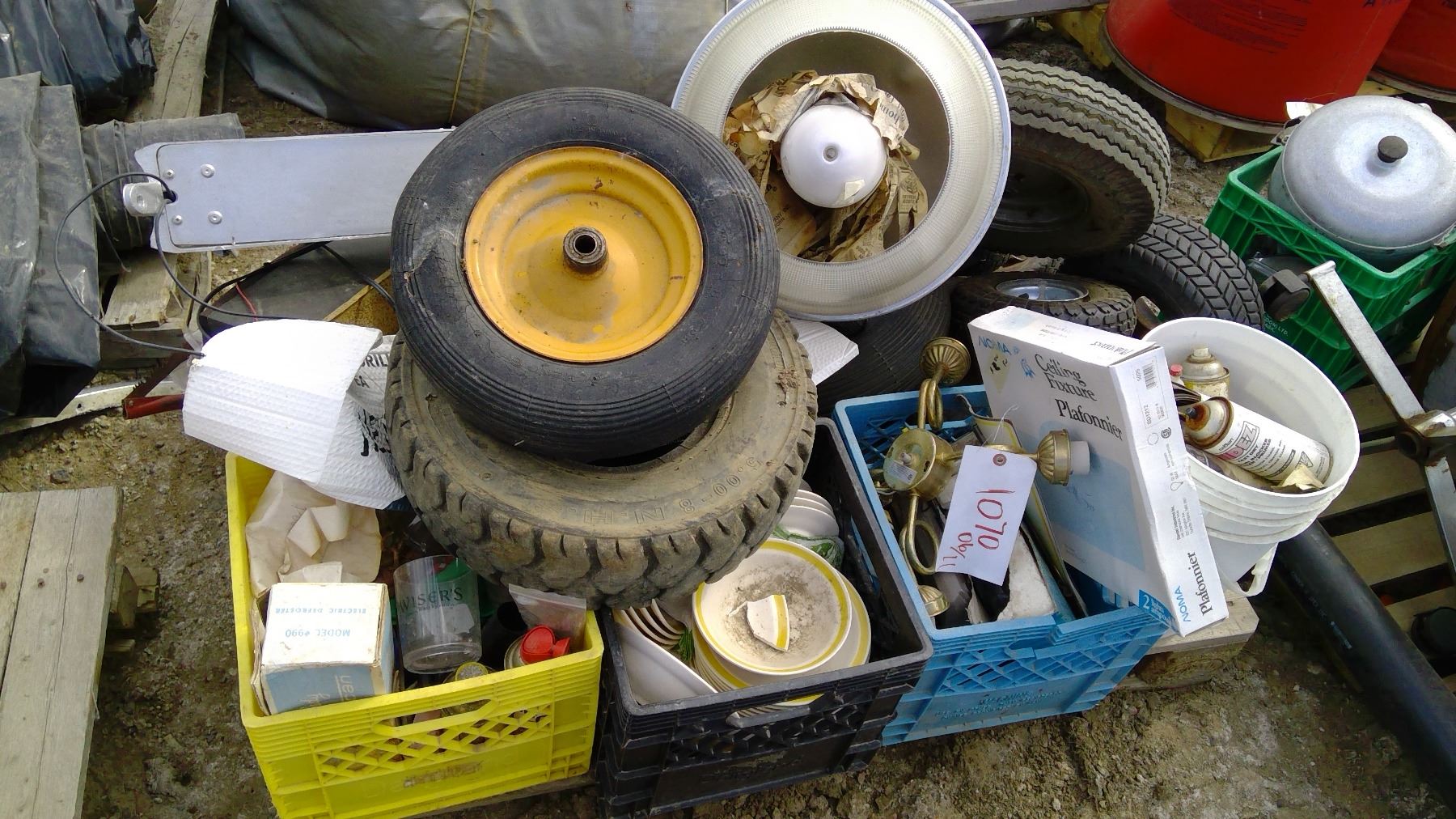 Pallet of Assorted Tires, Speakers, Misc. Spray Cans