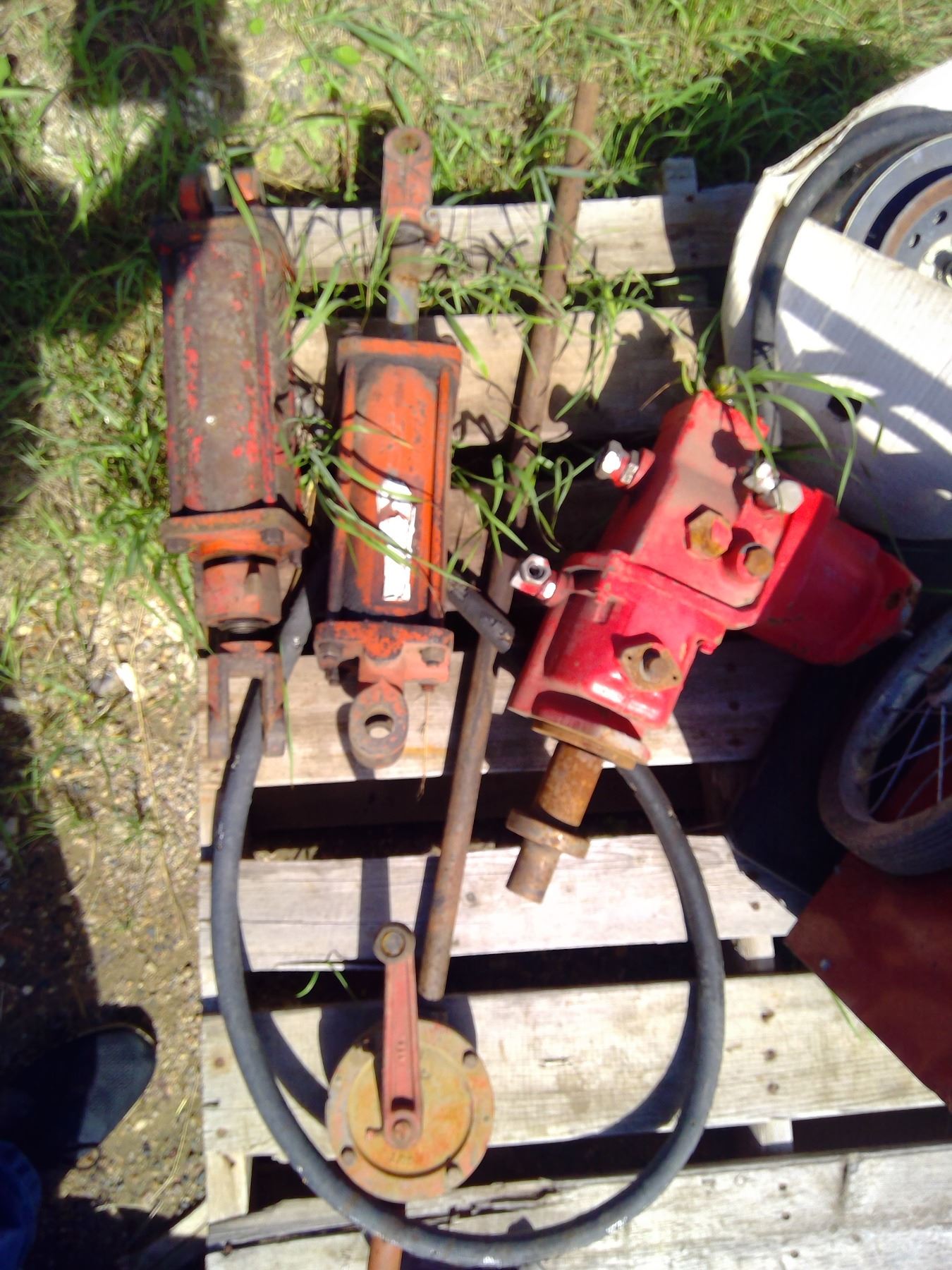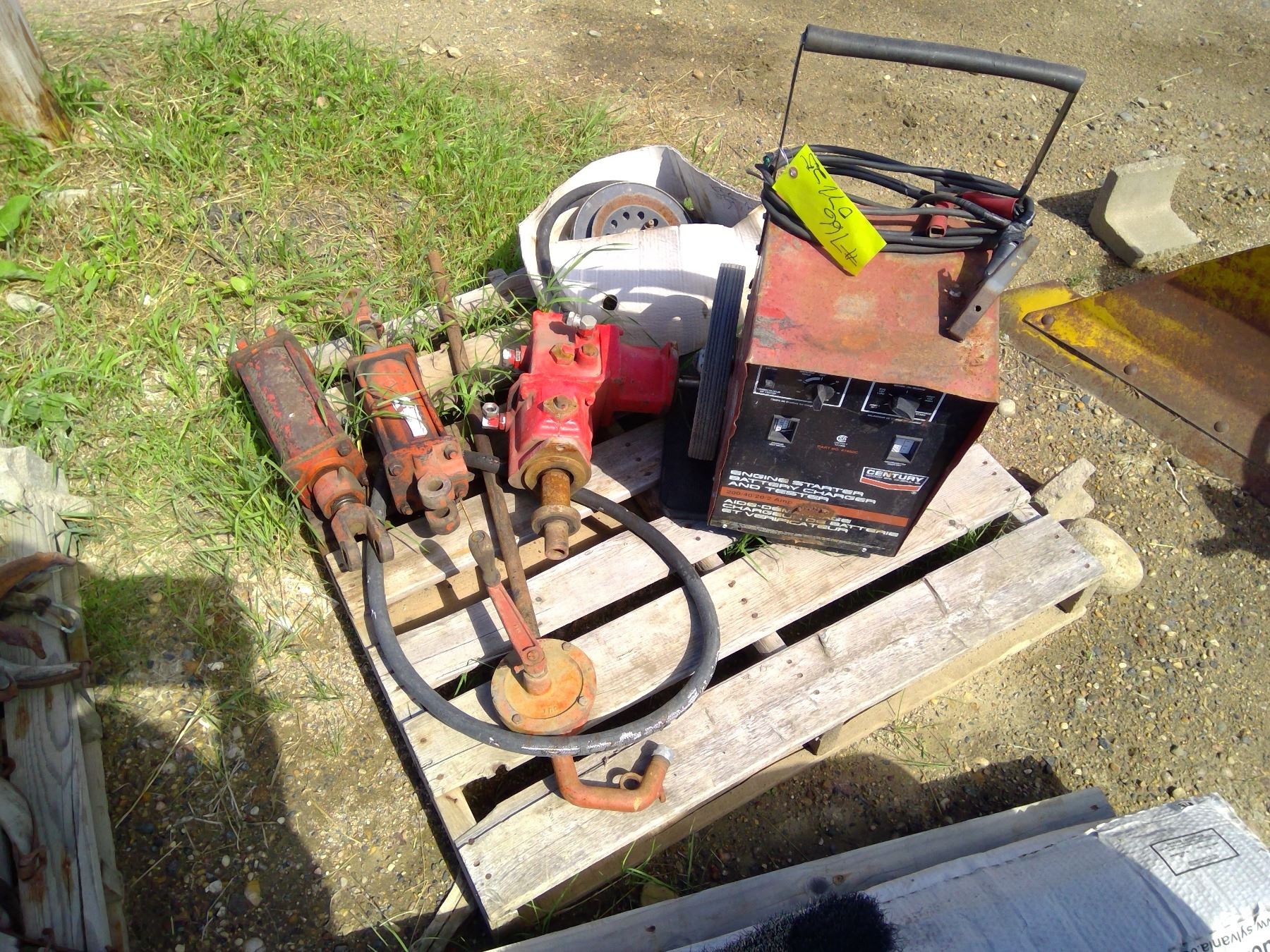 Pallet of Battery Charger, 2x Hydraulic Rams, Pump