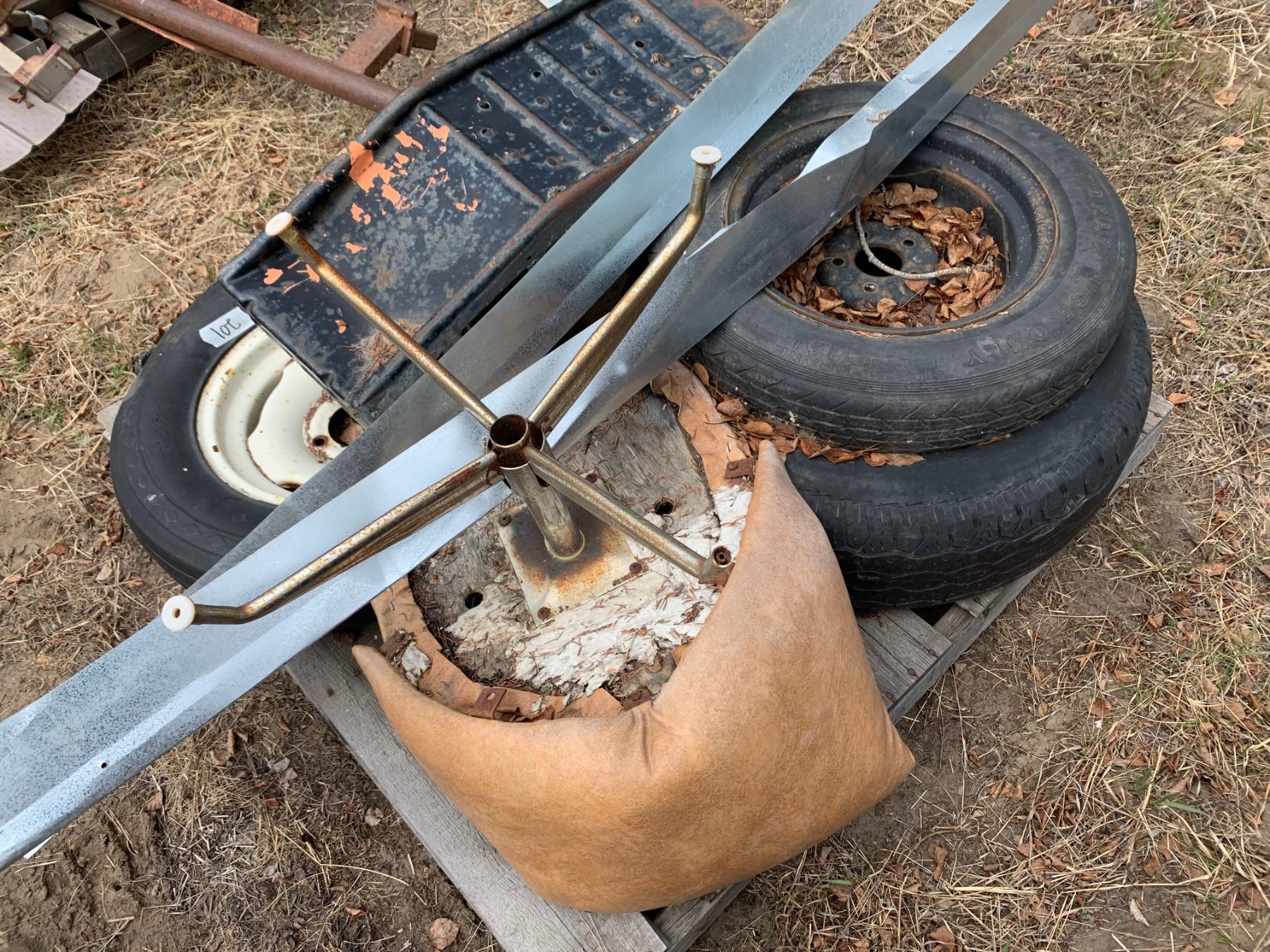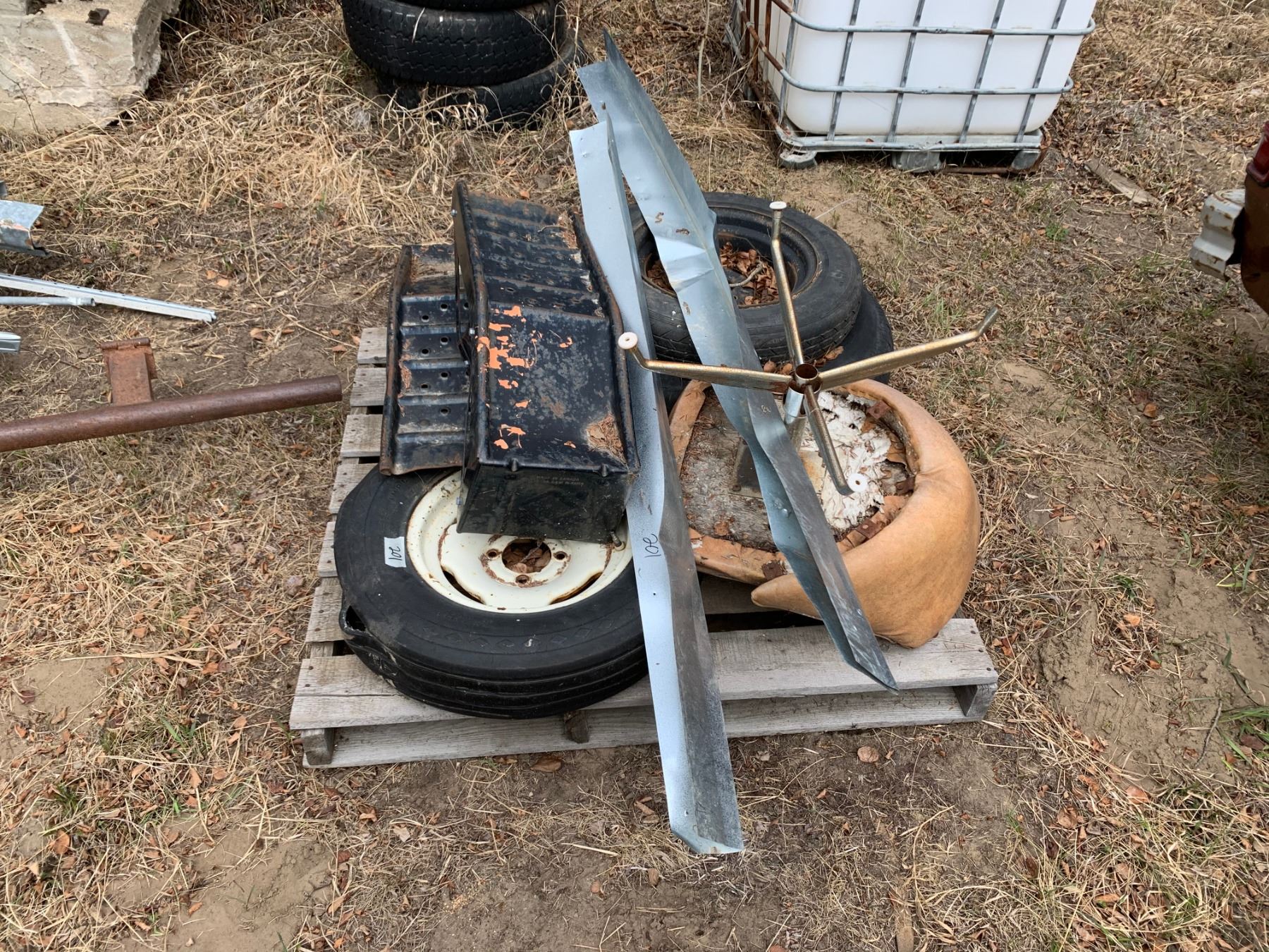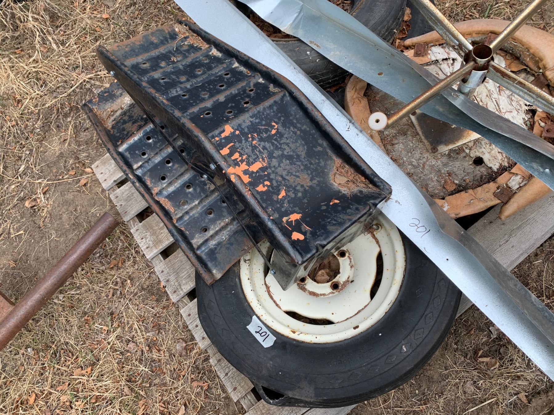 Pallet of Car Ramps and Implement Wheels