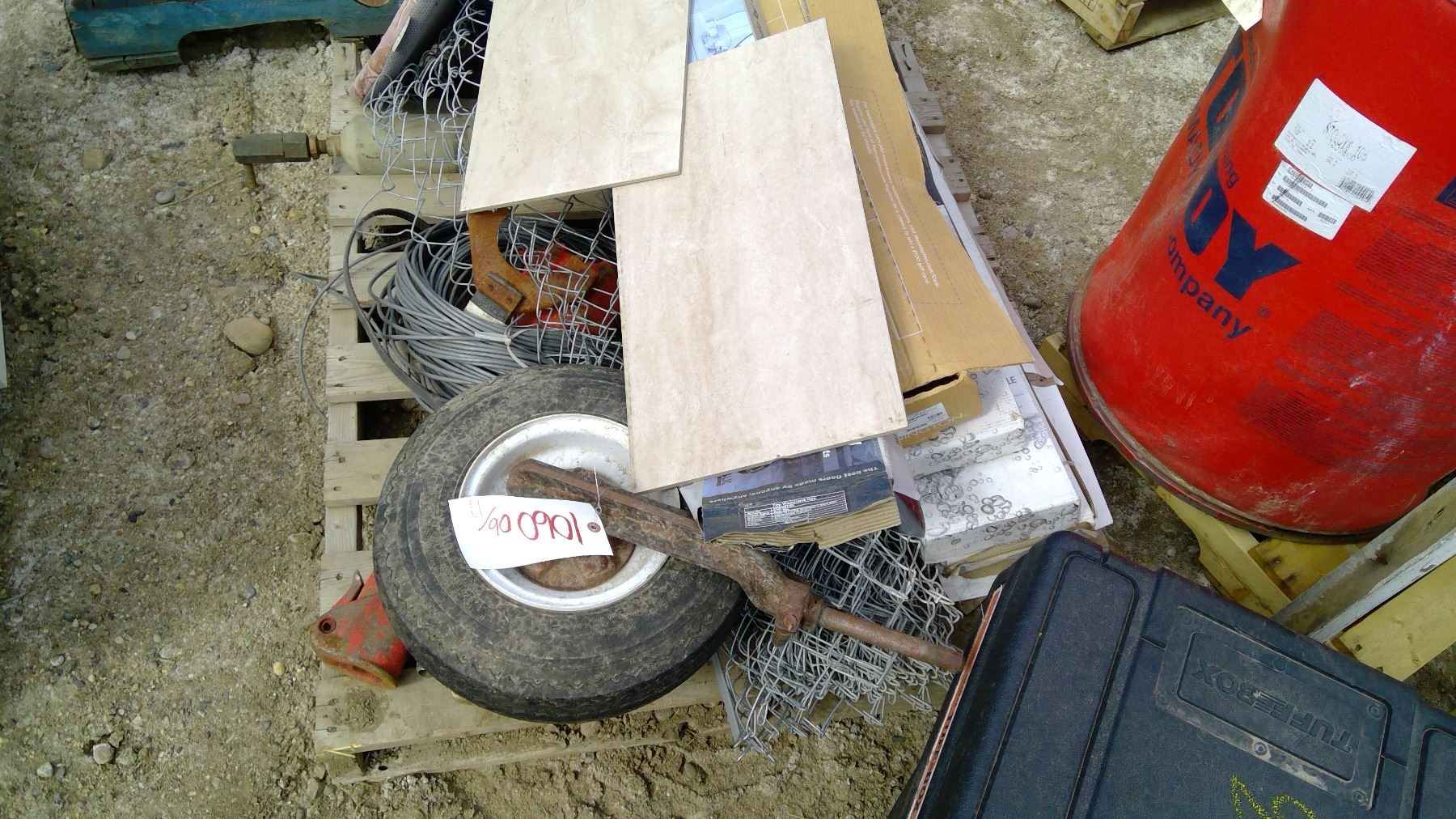 Pallet of Chain Link Fence, Flooring, Wire, Wheelbarrow Wheel