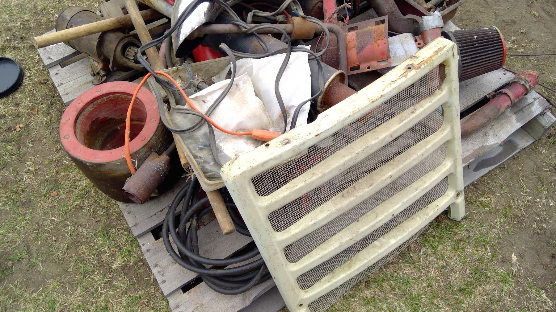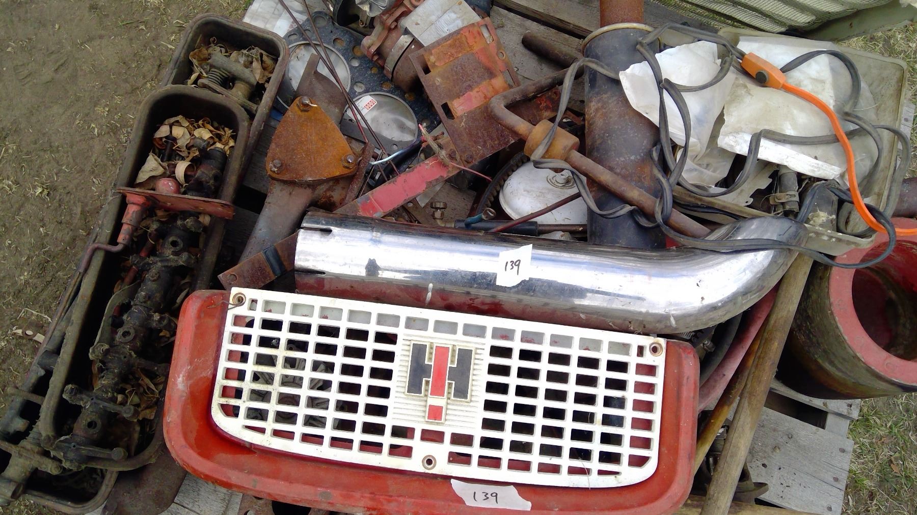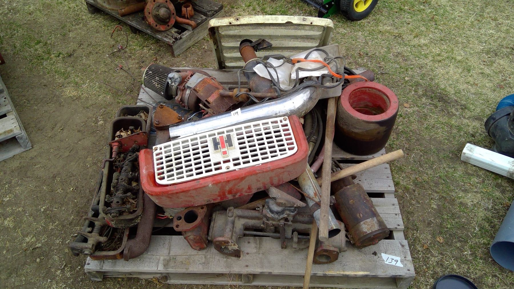 Pallet of IHC Parts - Misc. Pullies, Muffler, etc.