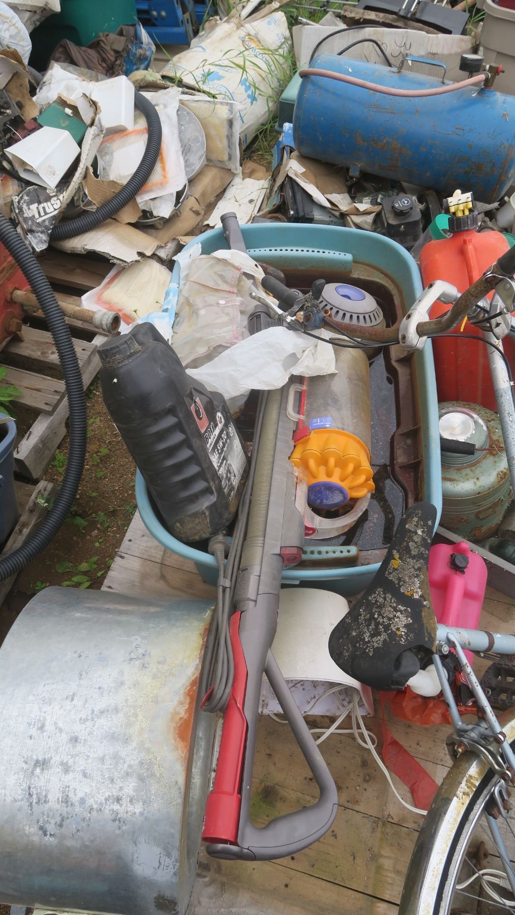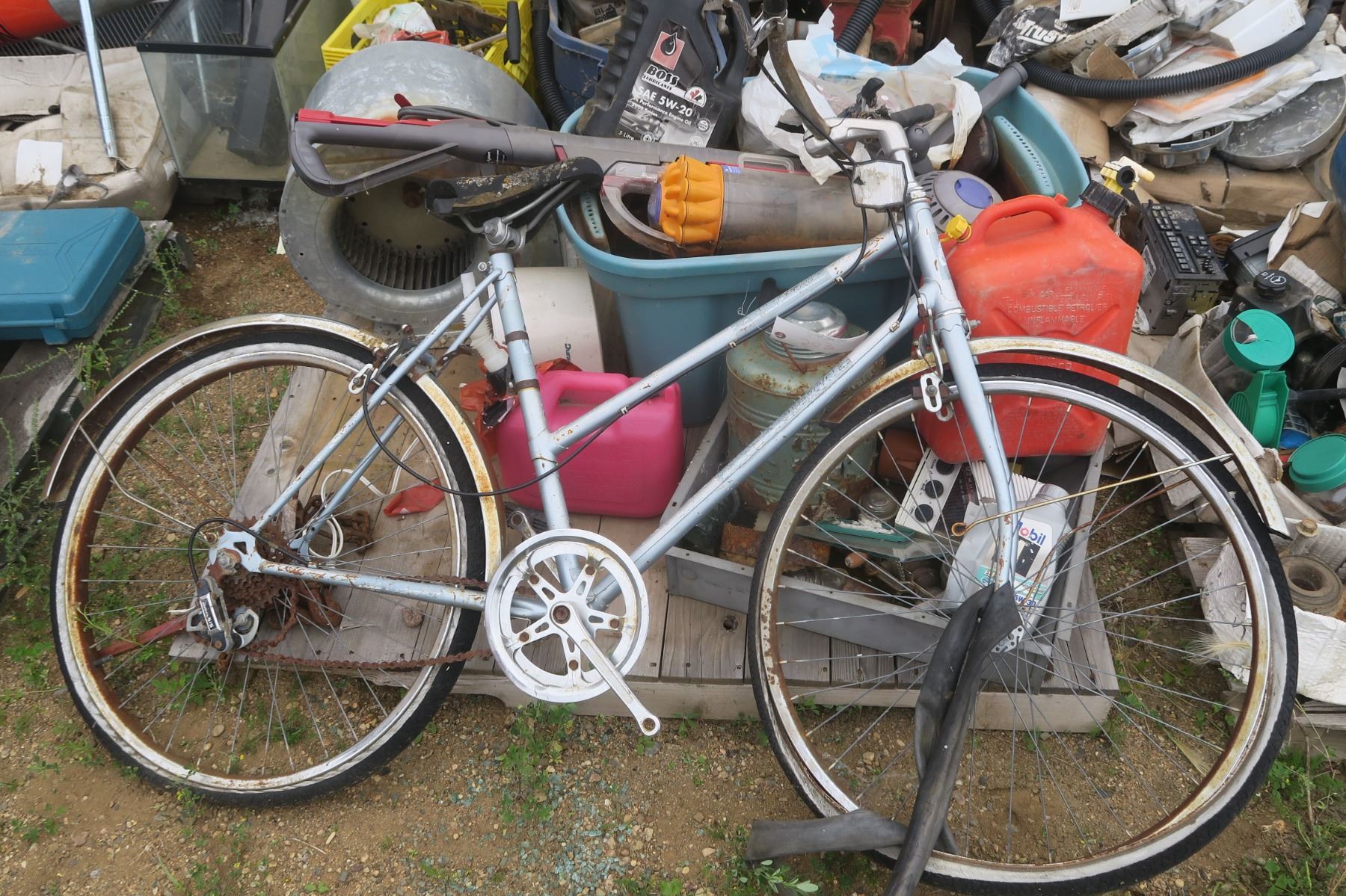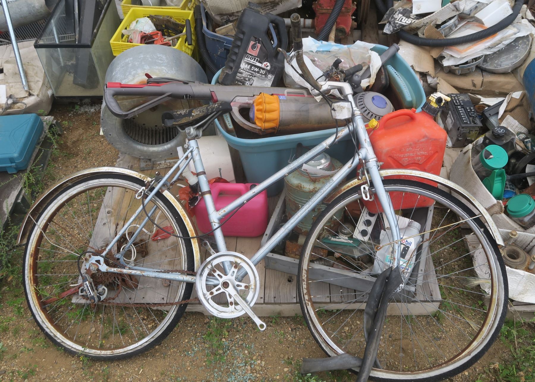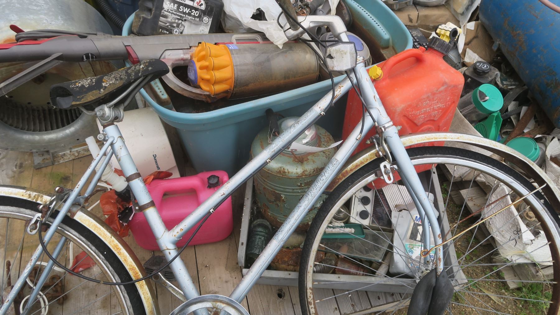 Pallet of Misc. - Jerry Cans, Bike, Grain Fan, etc.