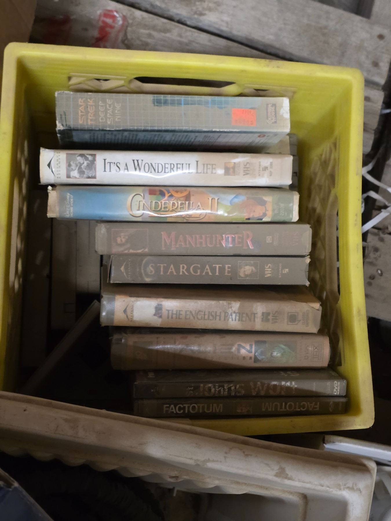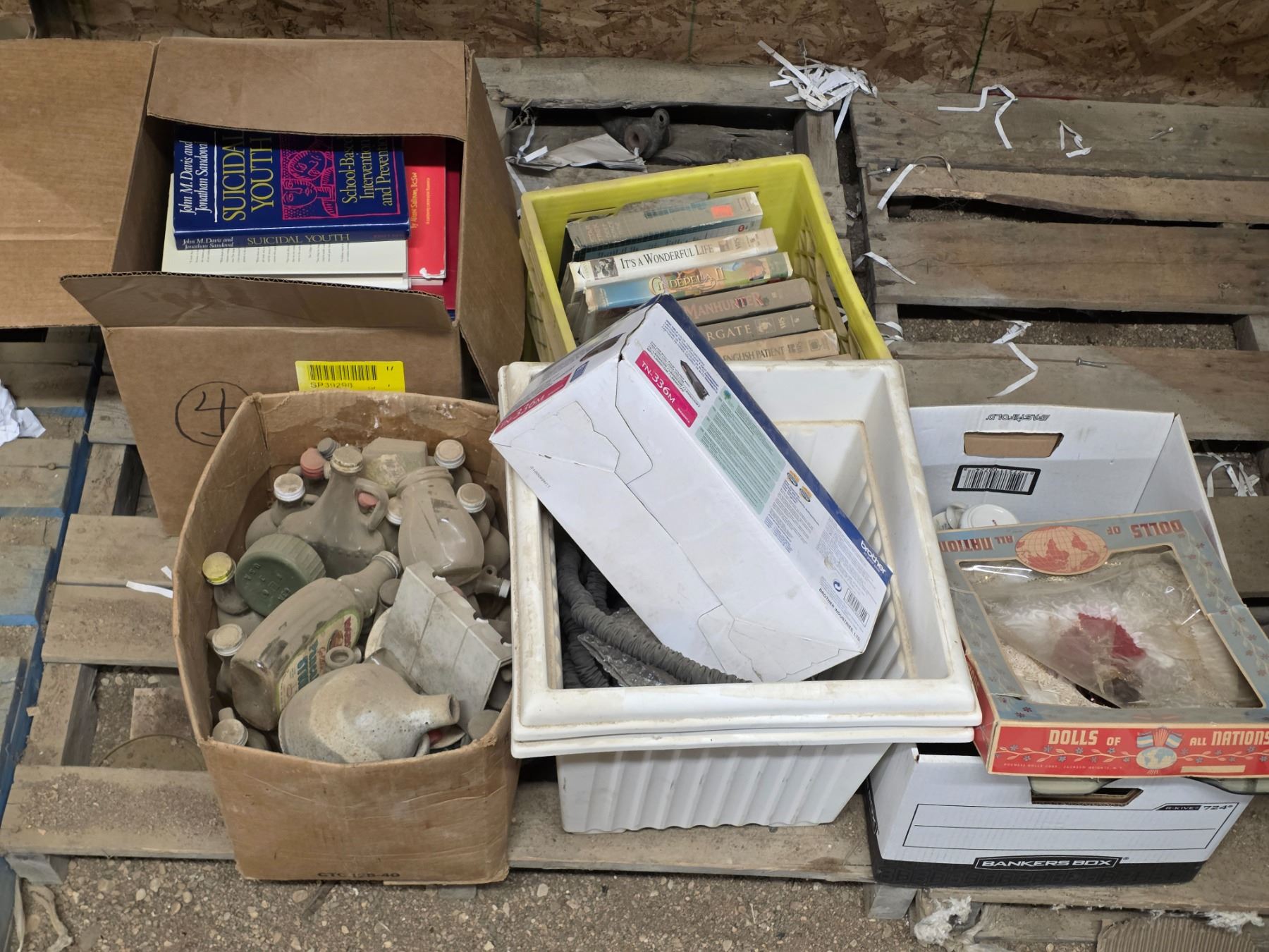Pallet of misc items, VHS movies, dishes, books and glassware