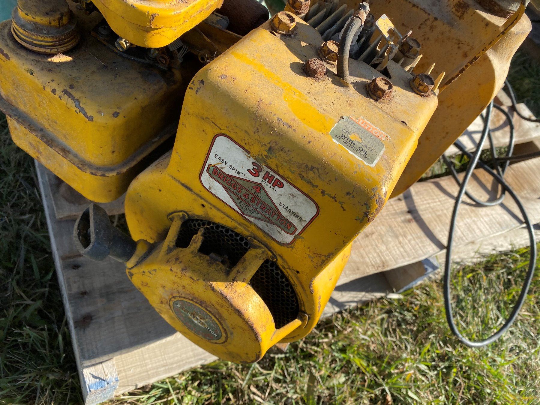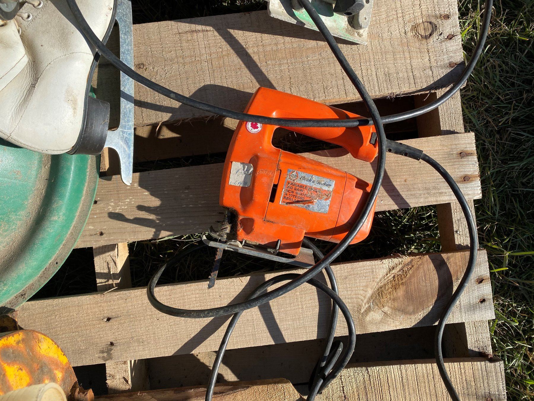 Pallet of miscellaneous – 8 1/4 inch Milwaukee circular saw, Black & Decker jigsaw, 3 hp 2 inch Brig