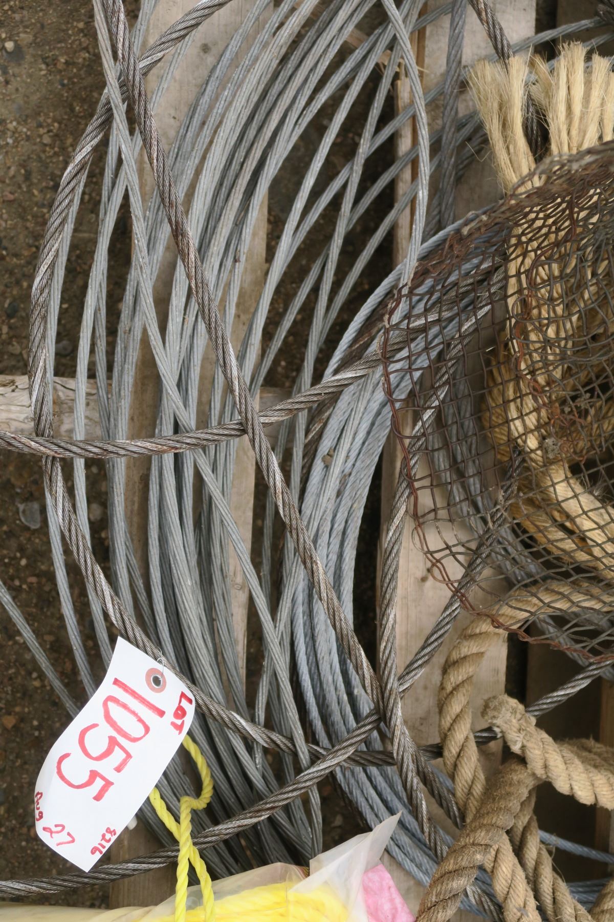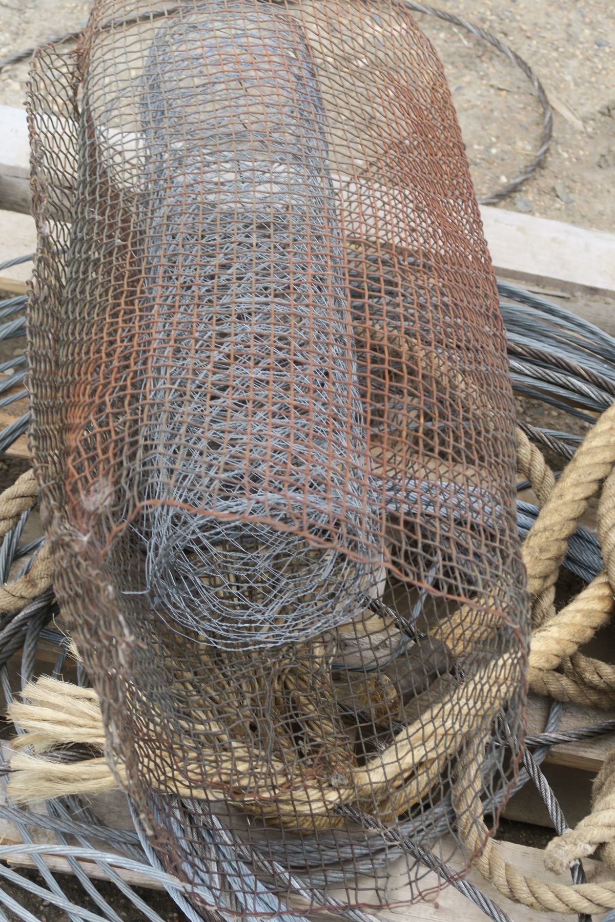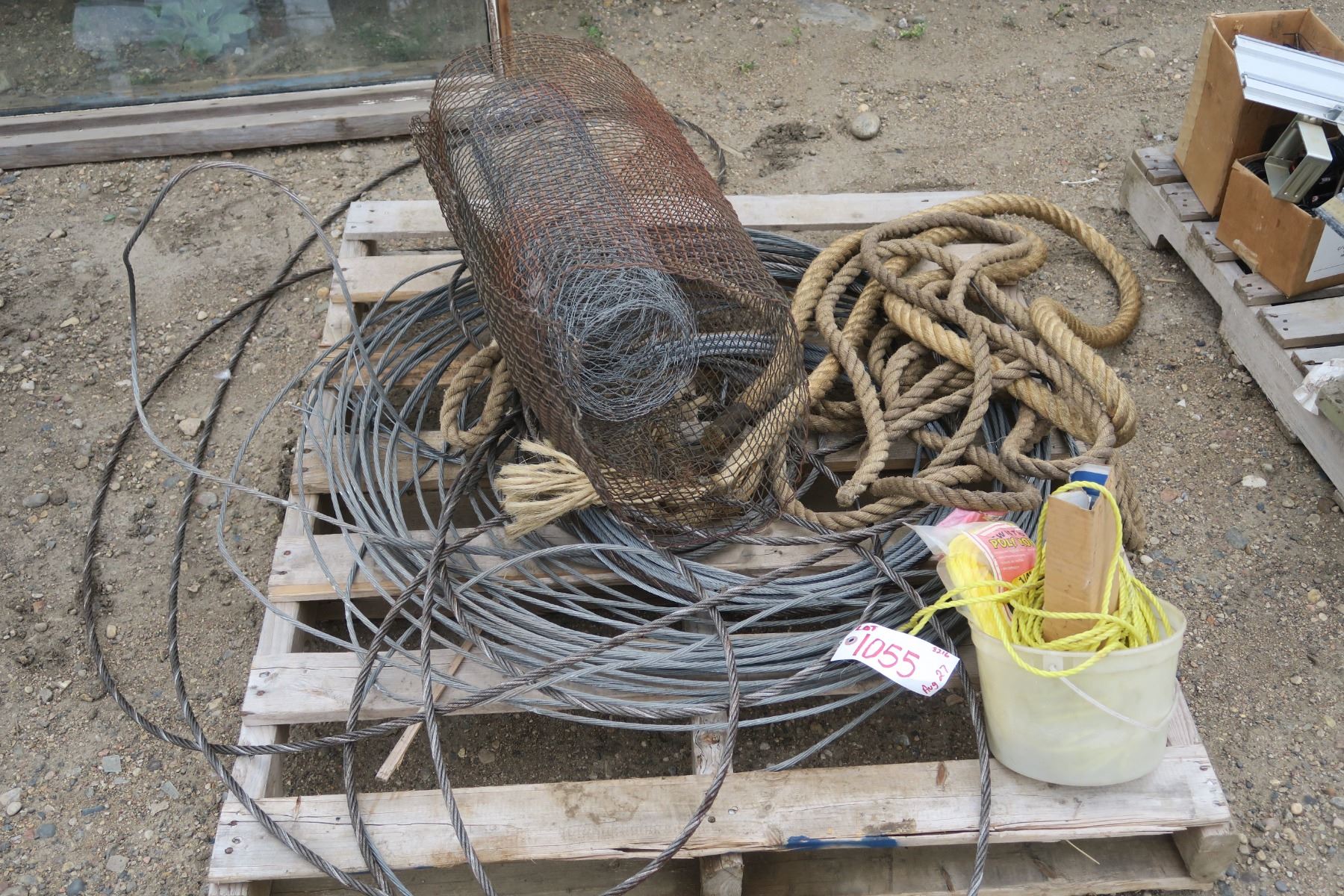 Pallet of steel cable, rope and some mesh.