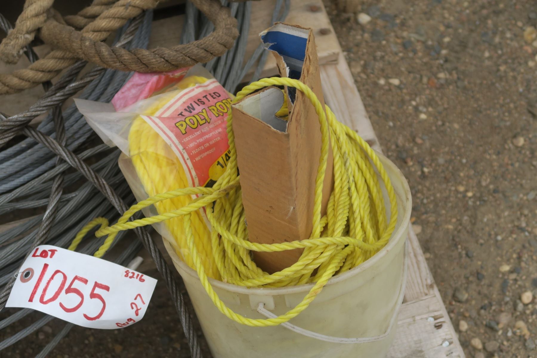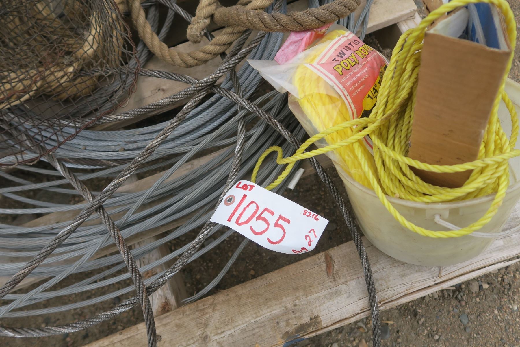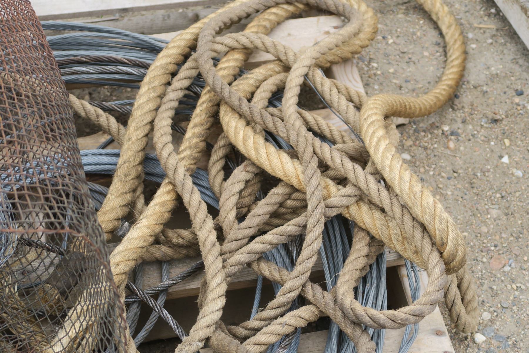 Pallet of steel cable, rope and some mesh.
