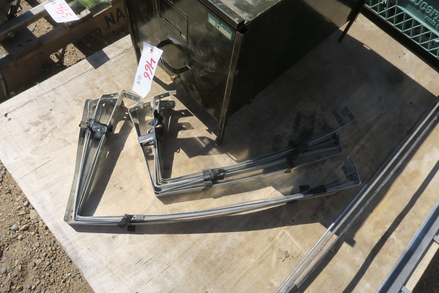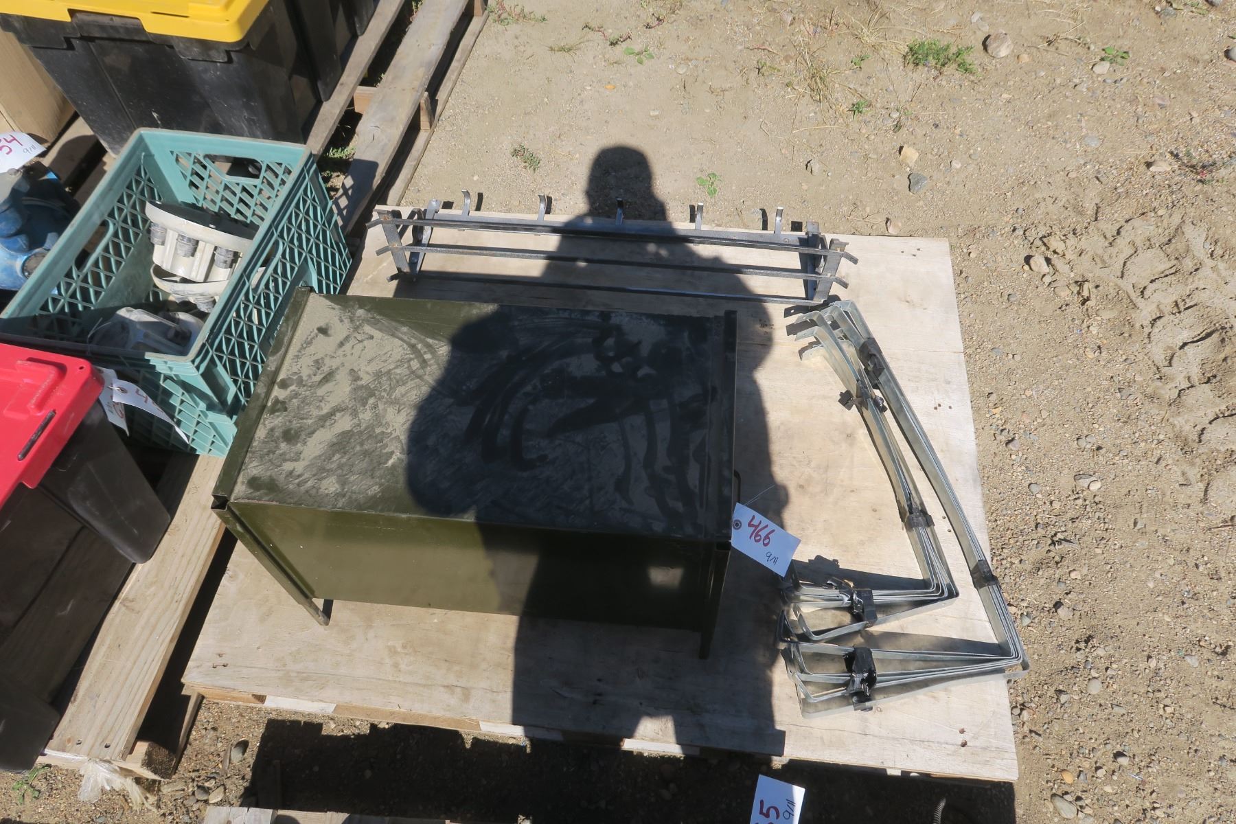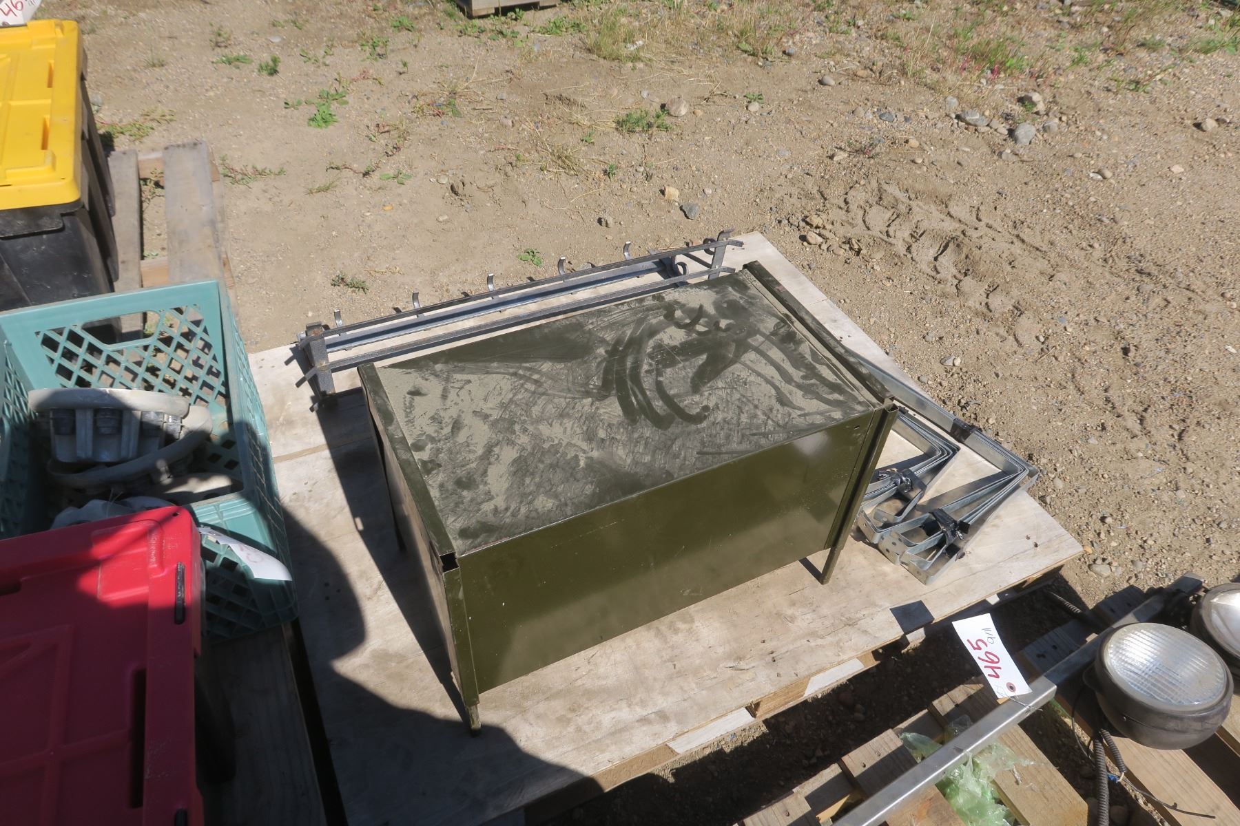 Pallet w/ Metal Filing Drawer, Ornate Coat Hooks & Misc. Brackets