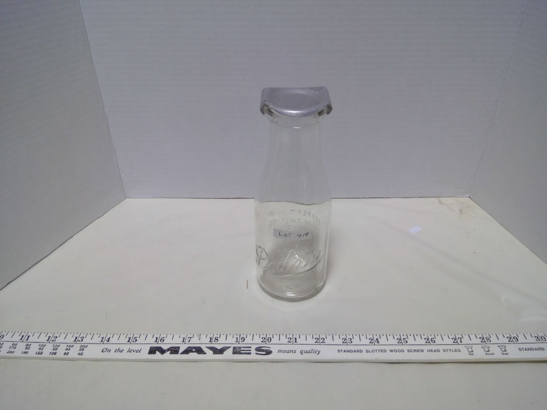 Palm Dairies Milk Bottle w/ Metal Topper, from 40's/50's
