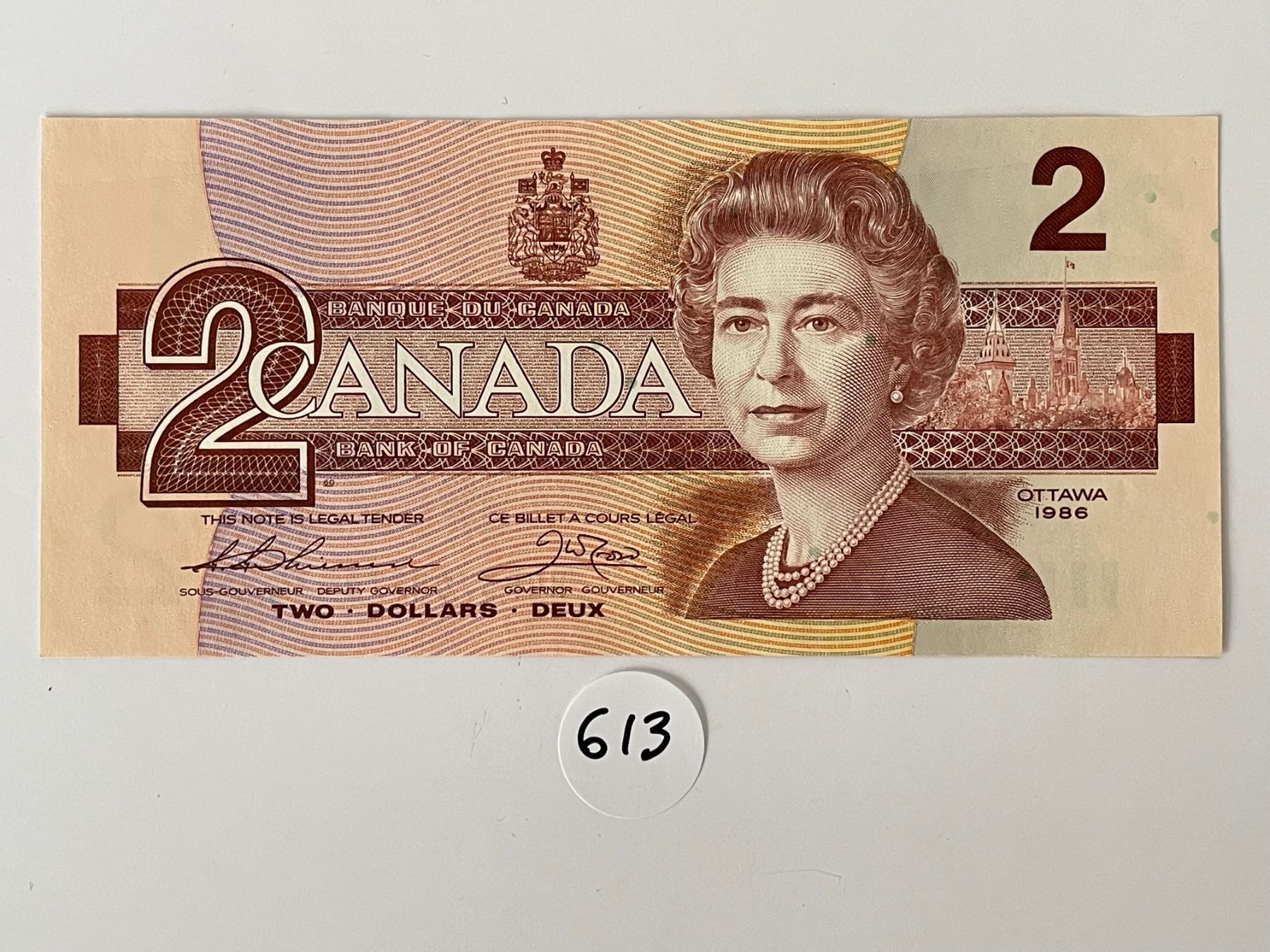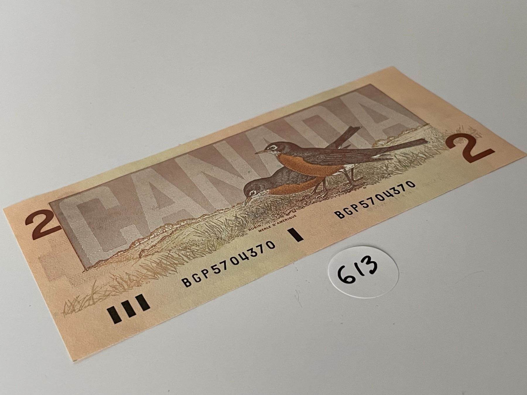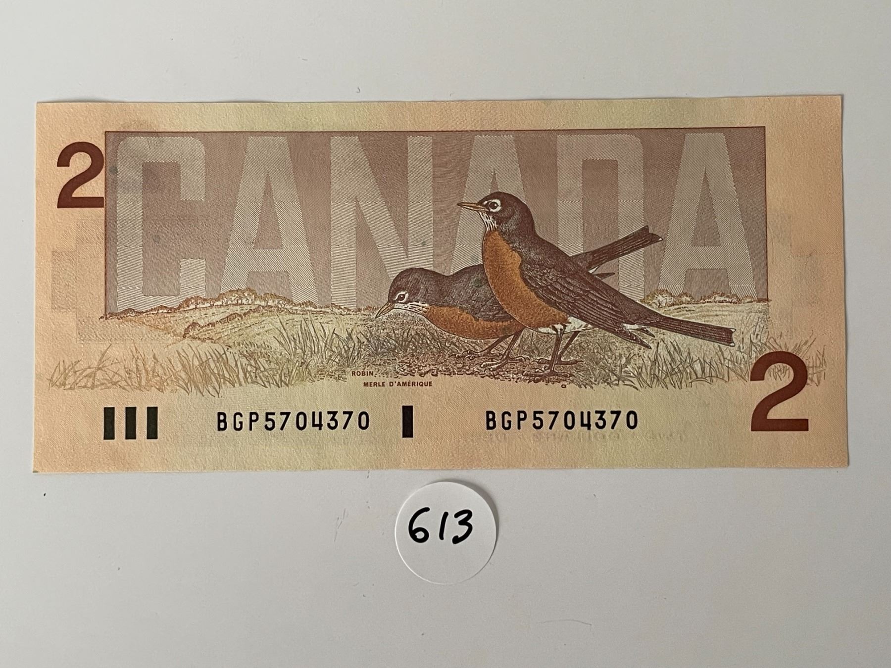 Paper Two Dollar Canadian Serial # BGP5704370 (from 1986)