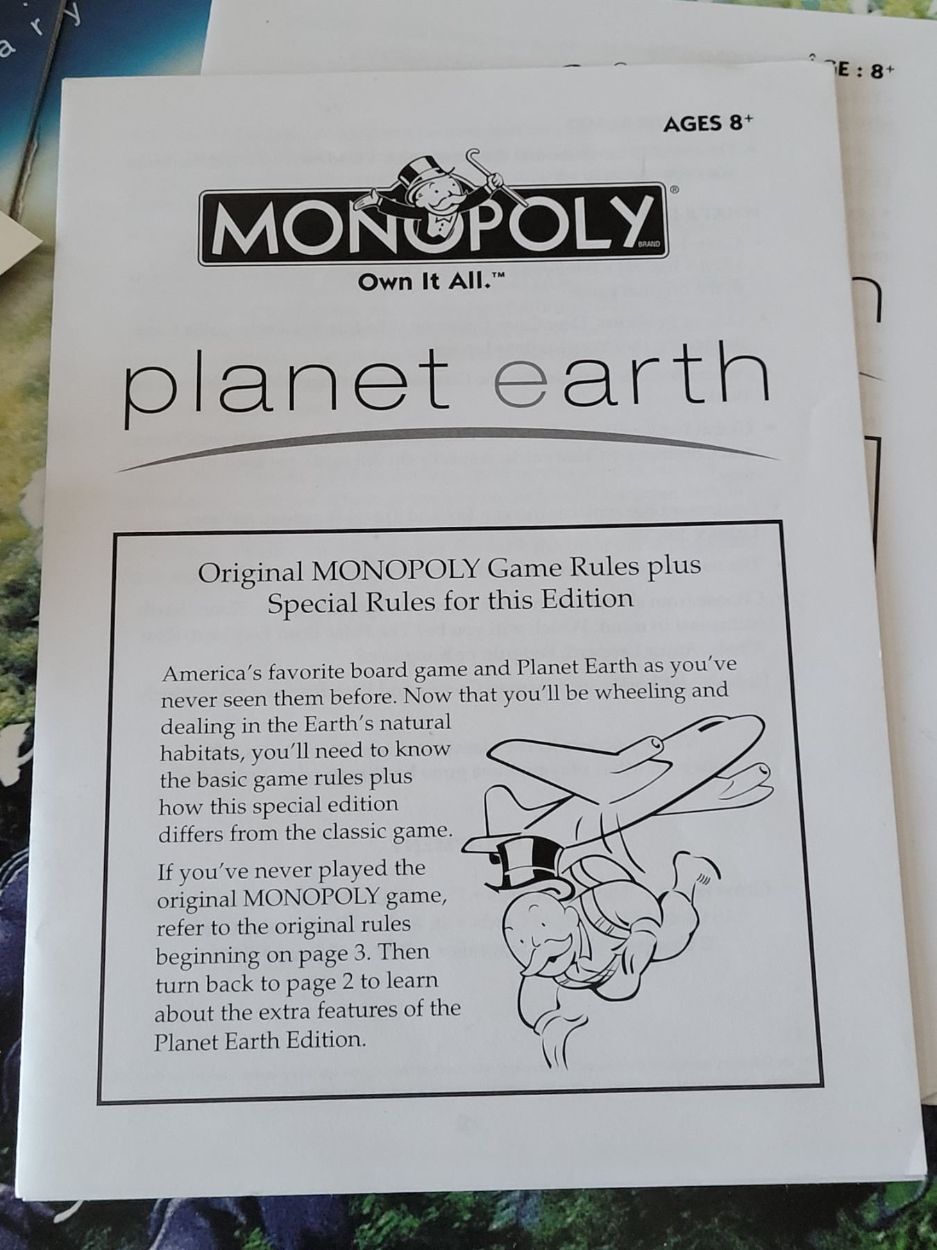 Parker Bros. Planet Earth Monopoly 2008. Special rules.