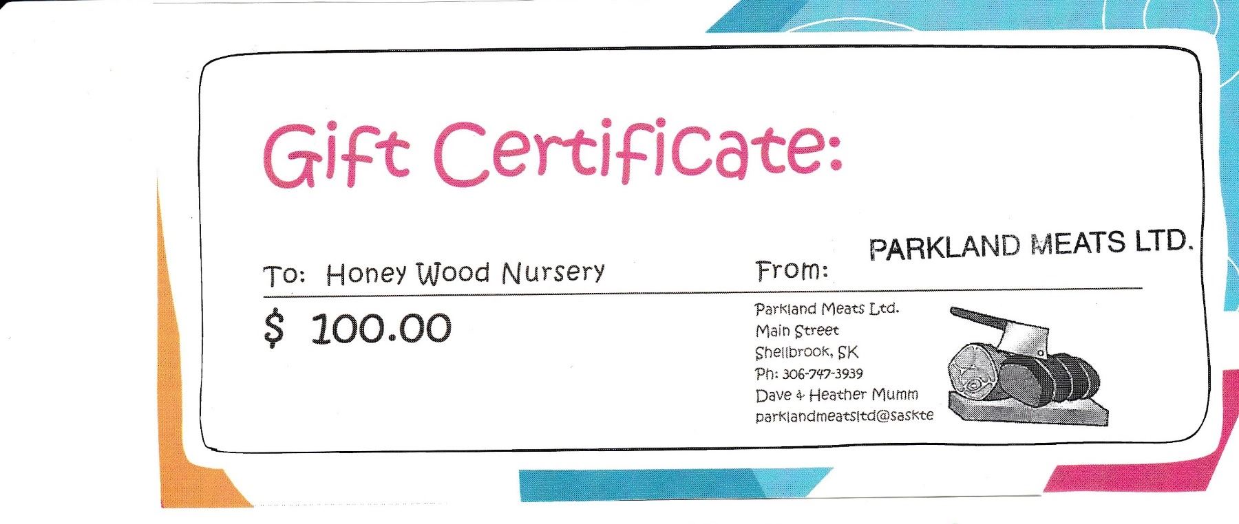Parkland Meats Gift Certificate $100.00