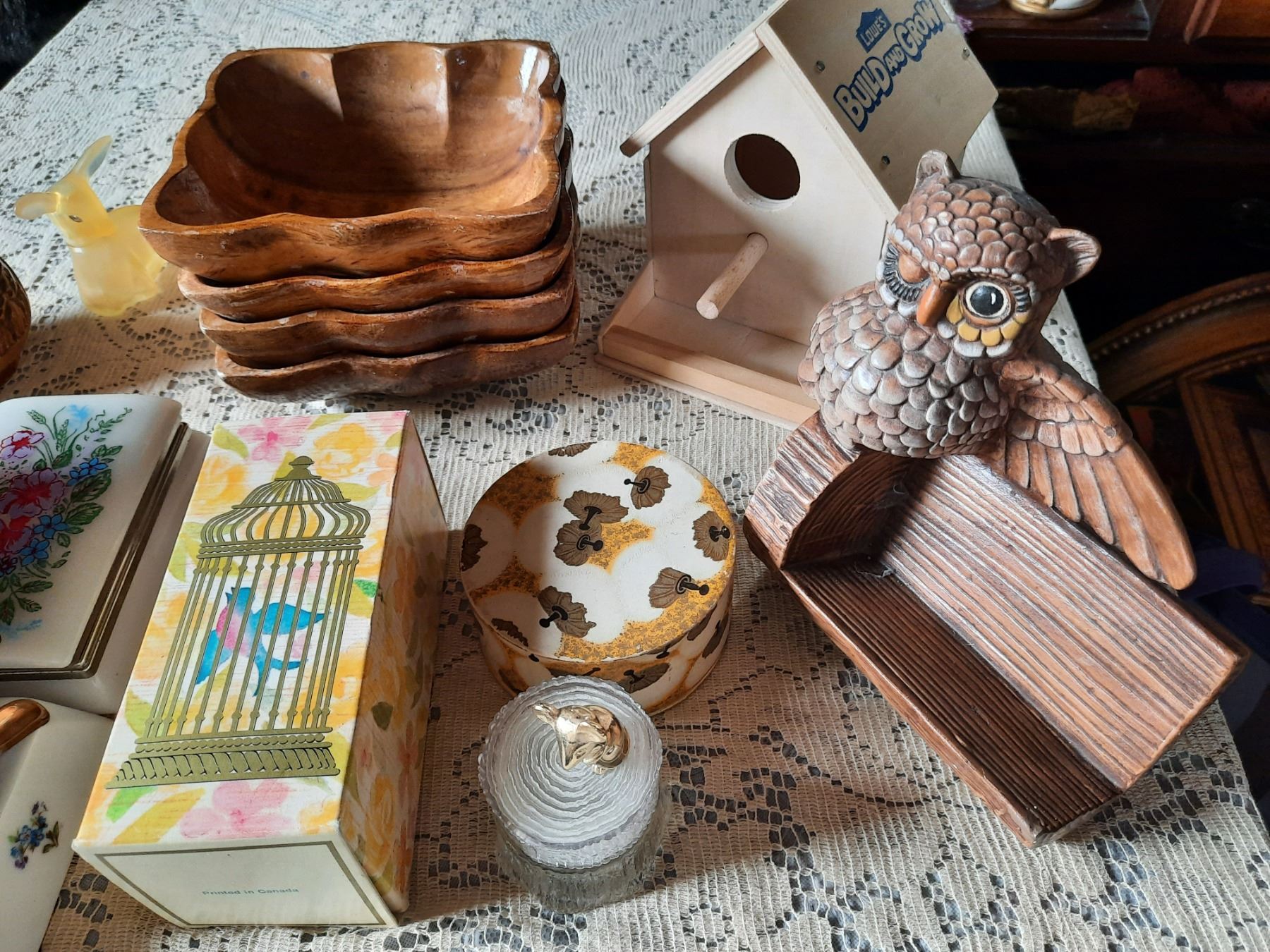 Partylite Votives, Napkin Rings & Placeholder Set, Wood Bowls, Owl Cardholder