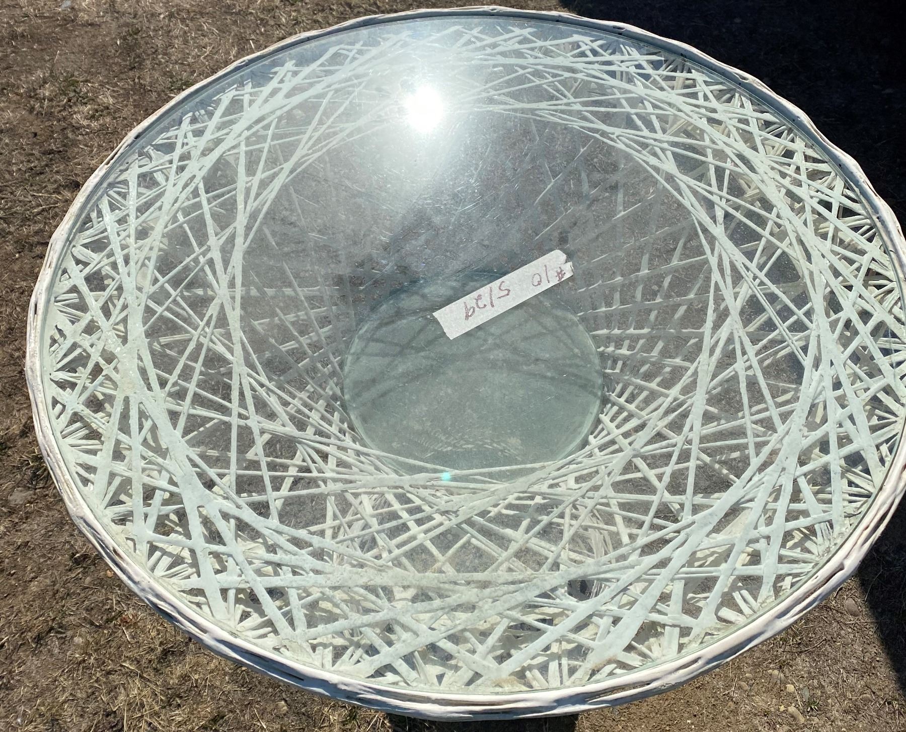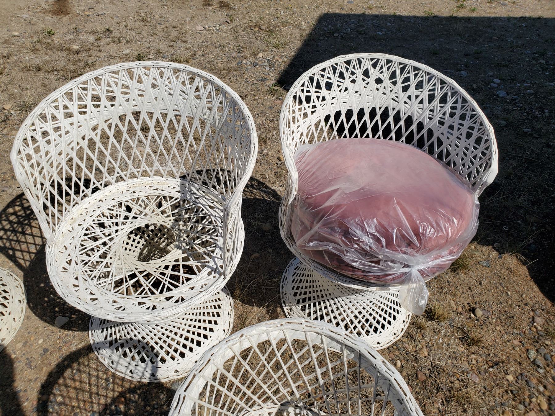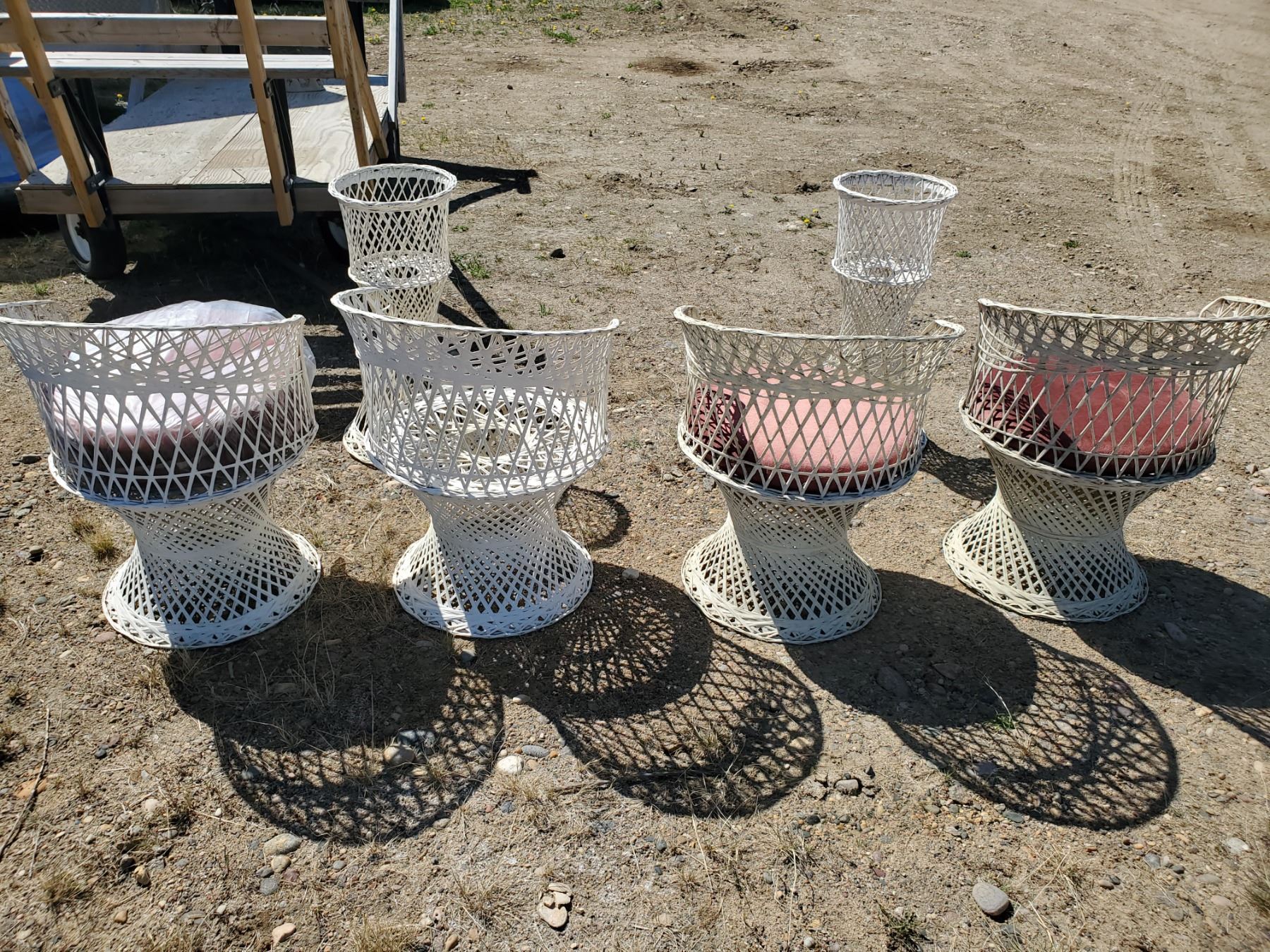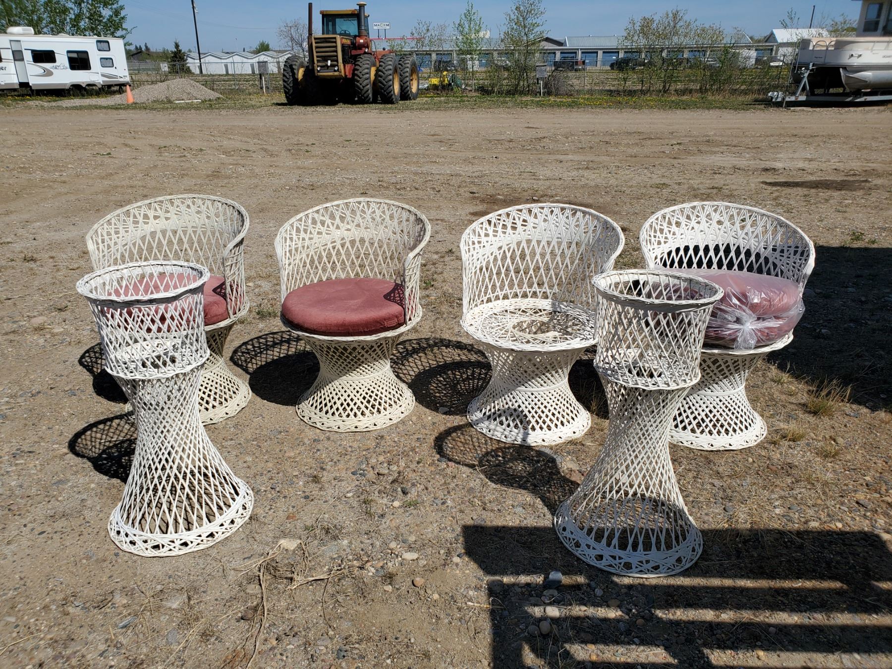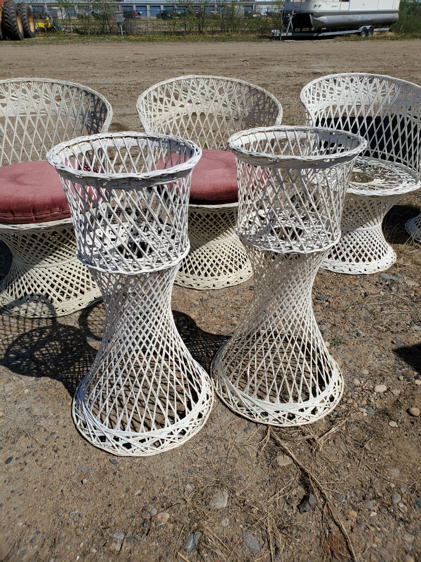 Patio Set includes 4 chairs, 2 plant stands, 1 table 33"W (all fibre glass)
