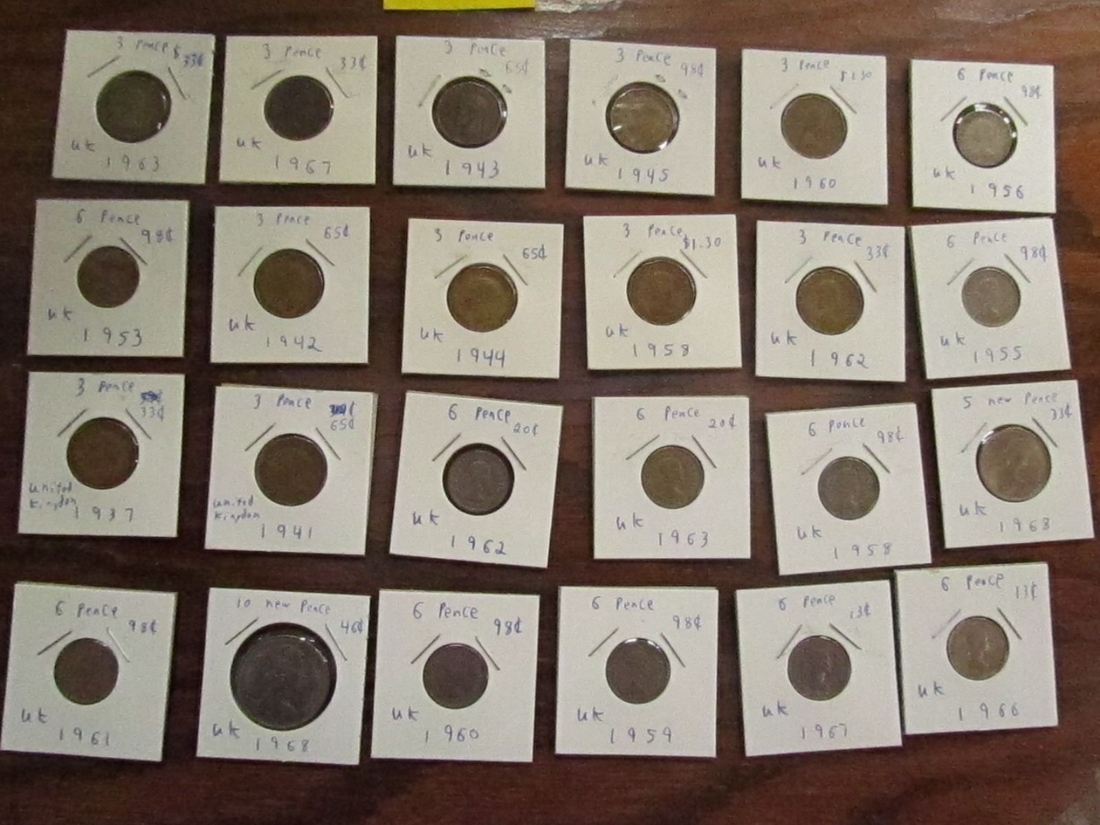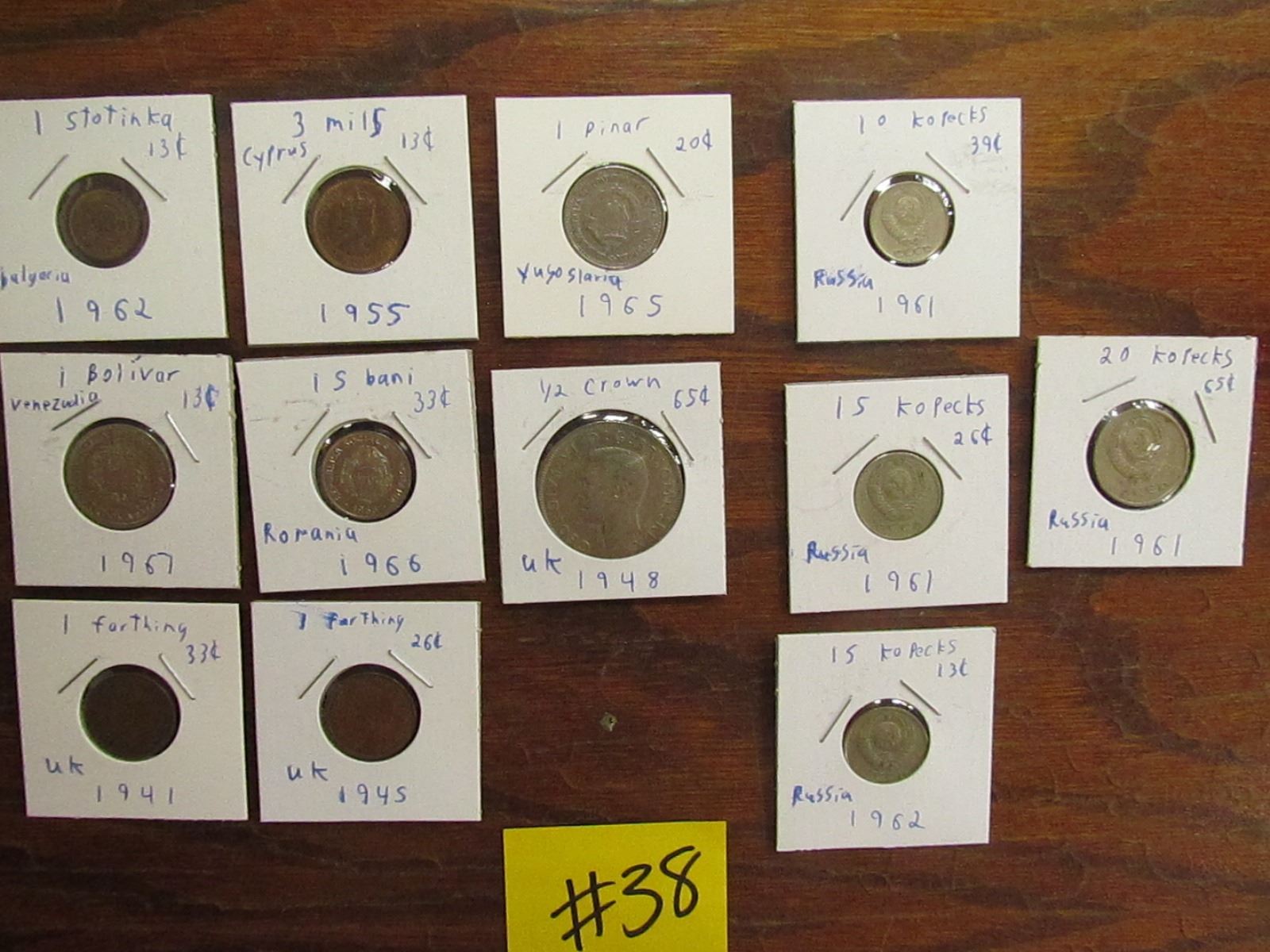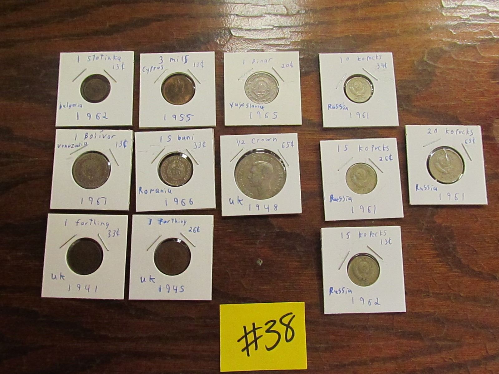 24 Pence,2Farthing,4 Kopecks,1- Pinar,Stotinka,Mils,Isbani,Bolivar,Crown