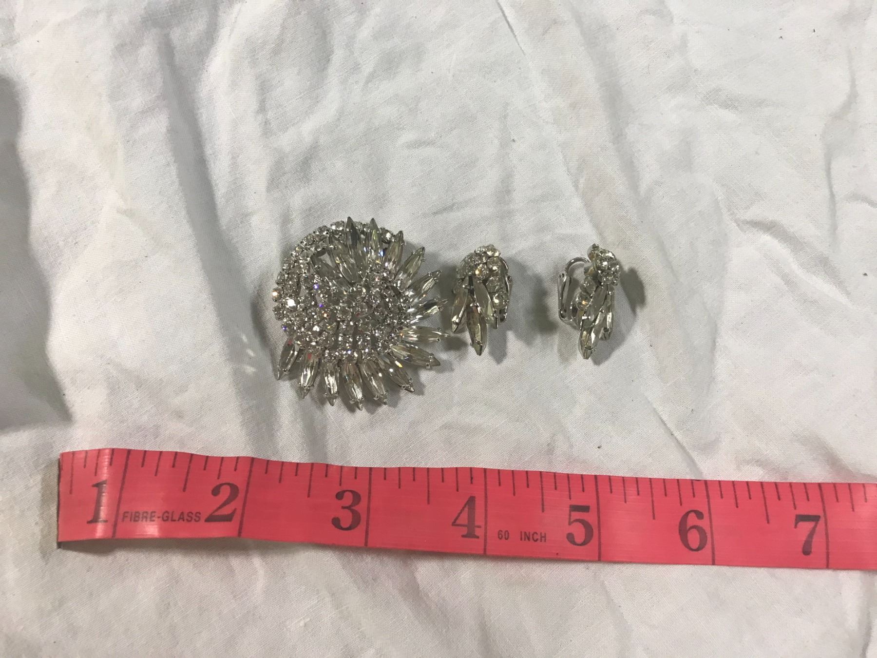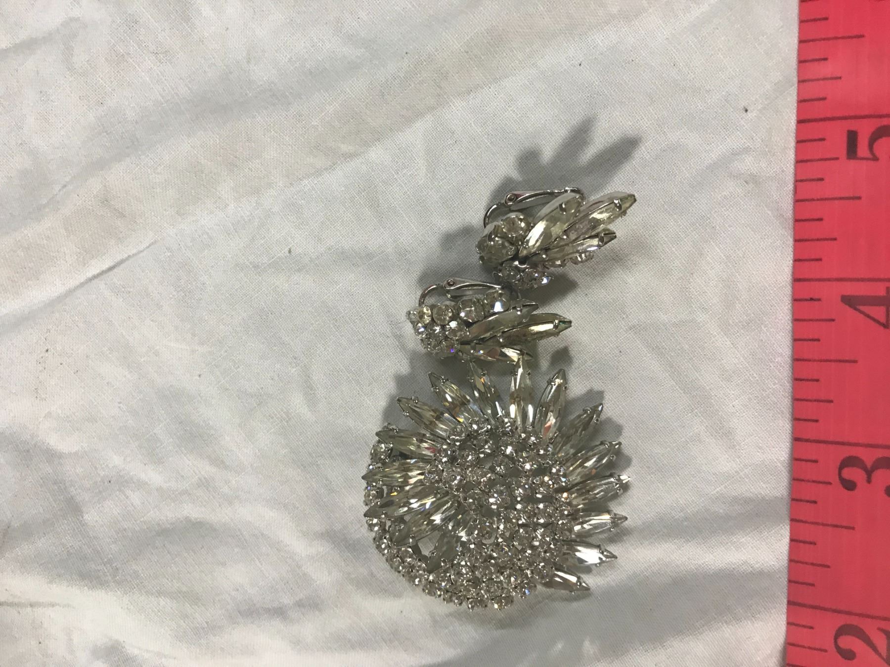 Peoples Jewelry Box With Rhinestone Brooch And Matching Pair Of Earrings