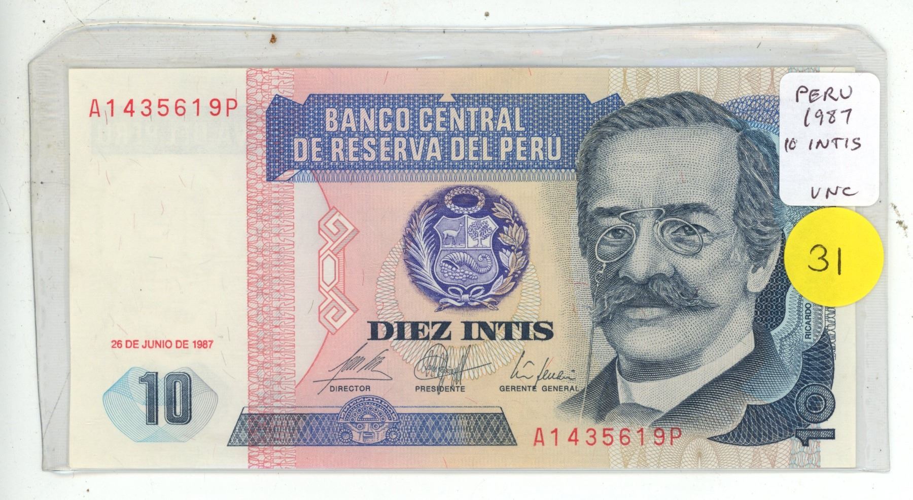 Peru. Central Reserve Bank of Peru. 1987 10 Intis. Uncirculated.