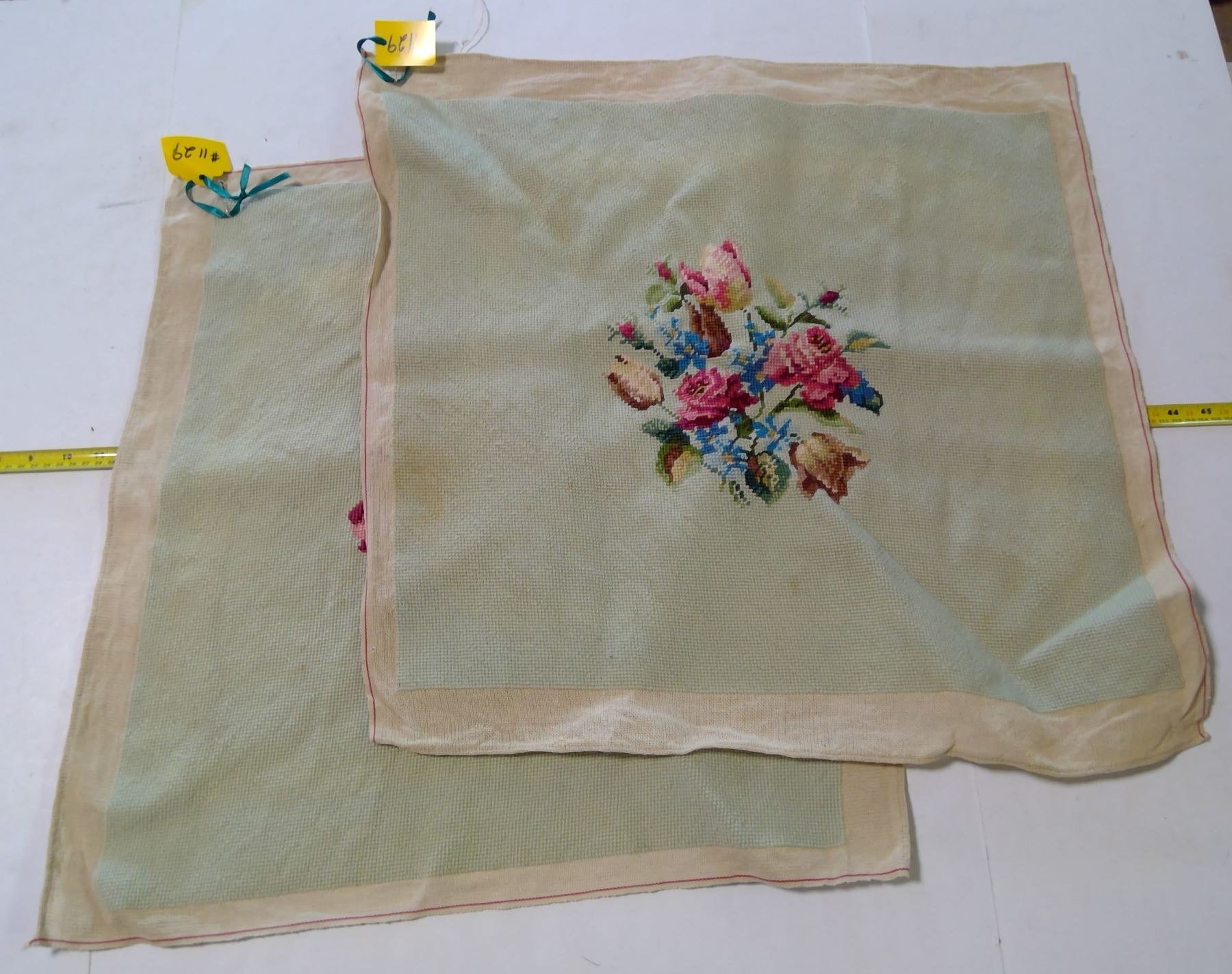 Petit Point Floral Motif Chair or Footstool Covers (2)