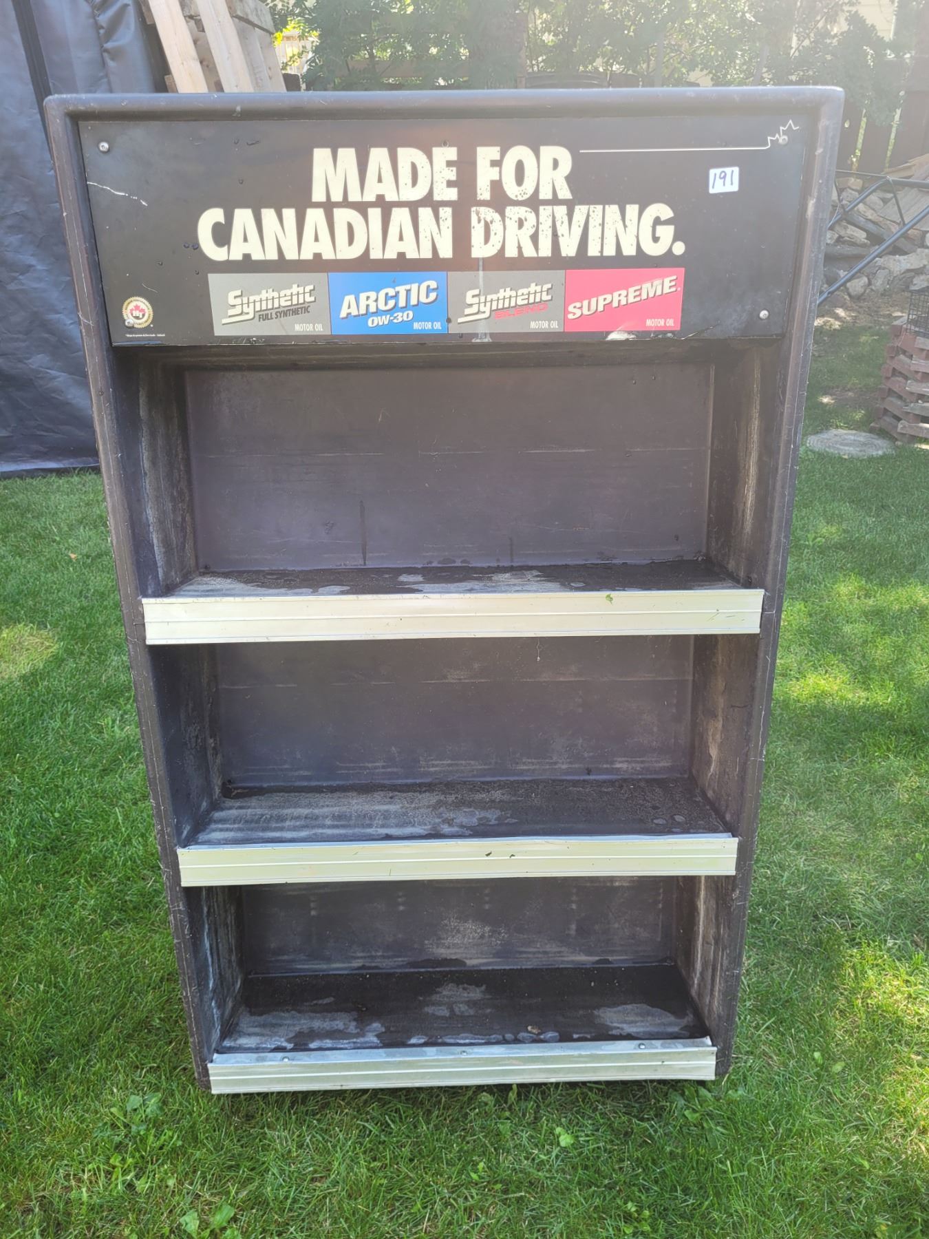 Petro Canada oil can display cart.