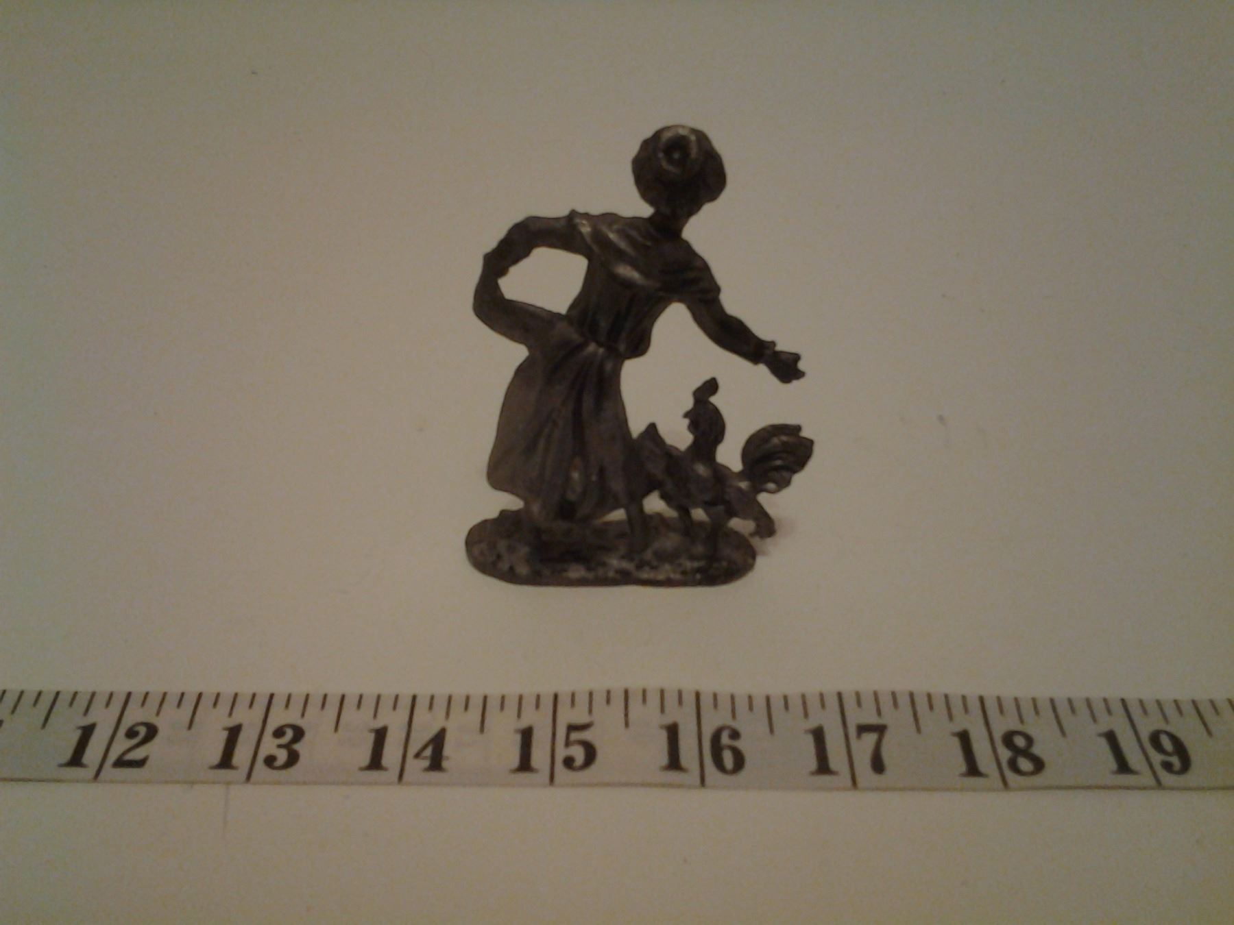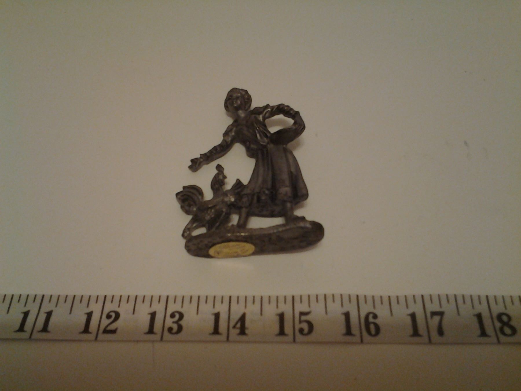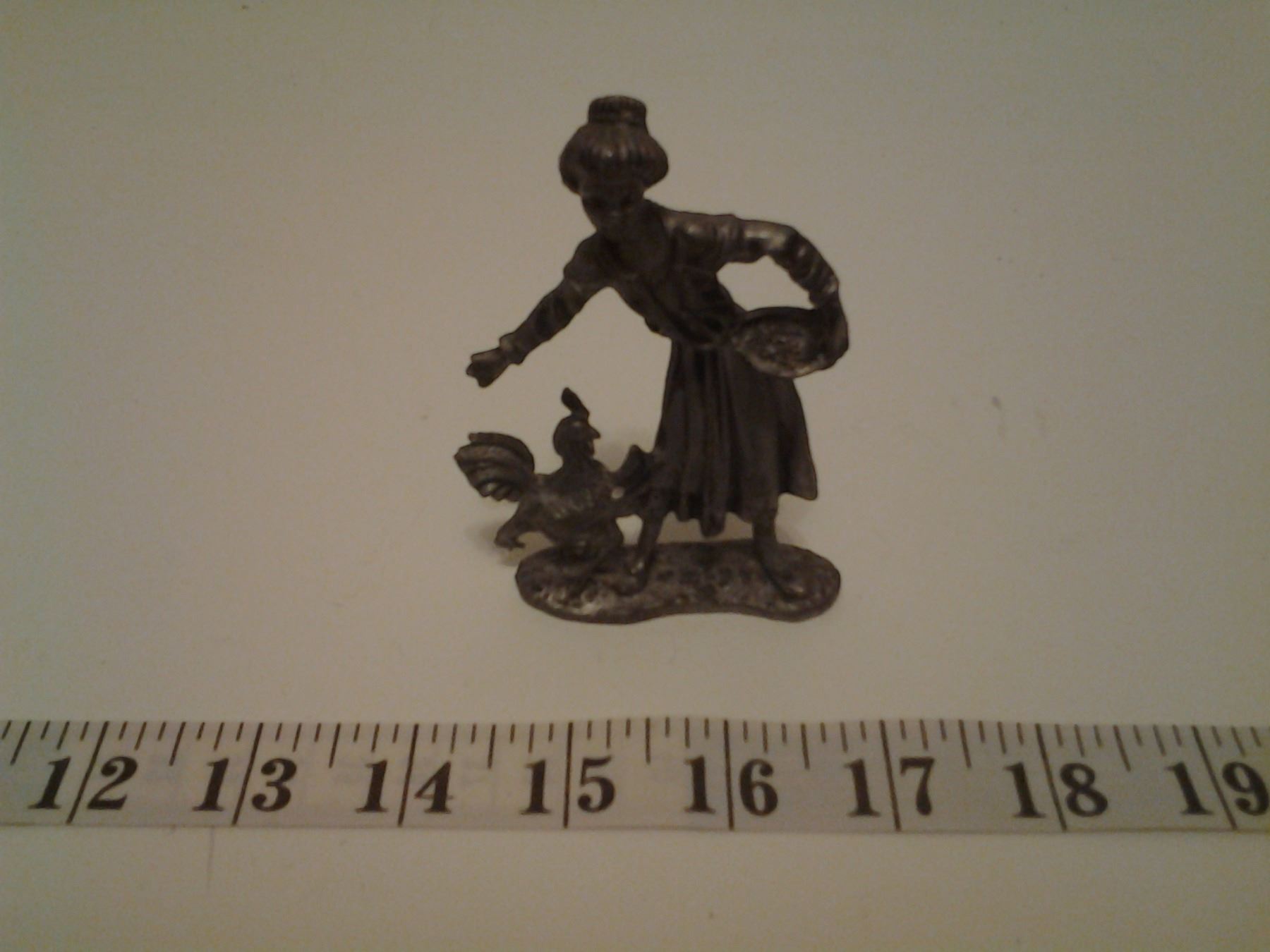 Pewter Lady Feeding Chicken - Made in Italy