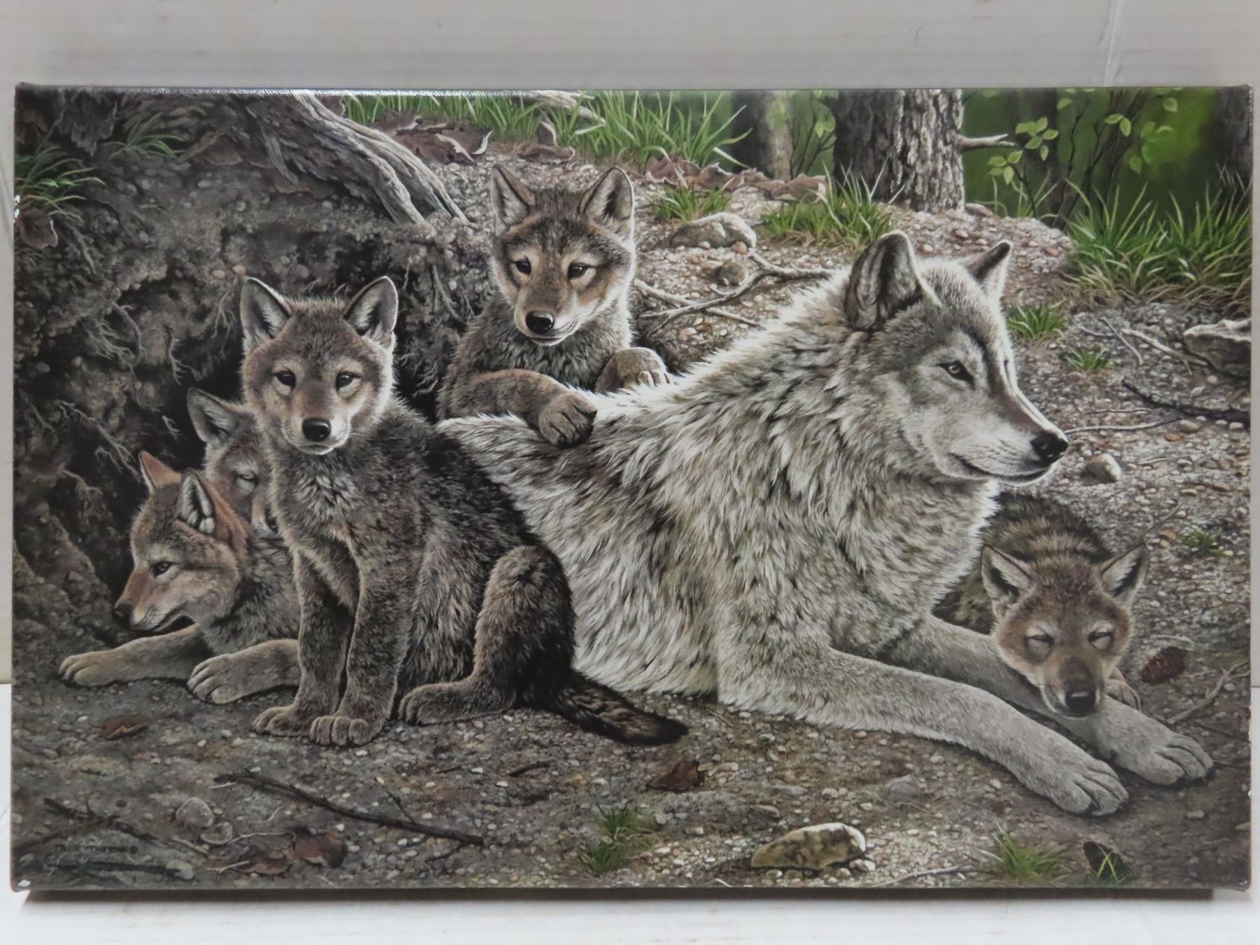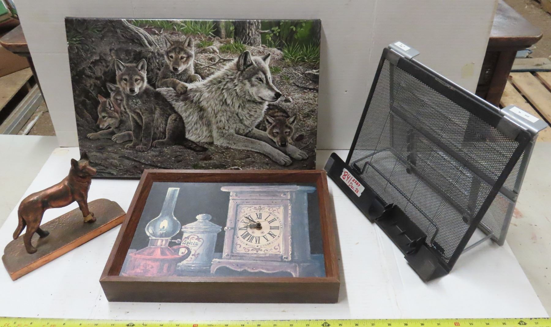 Picture of wolves + mini wolf statue (broken leg) + stationary document/book holder