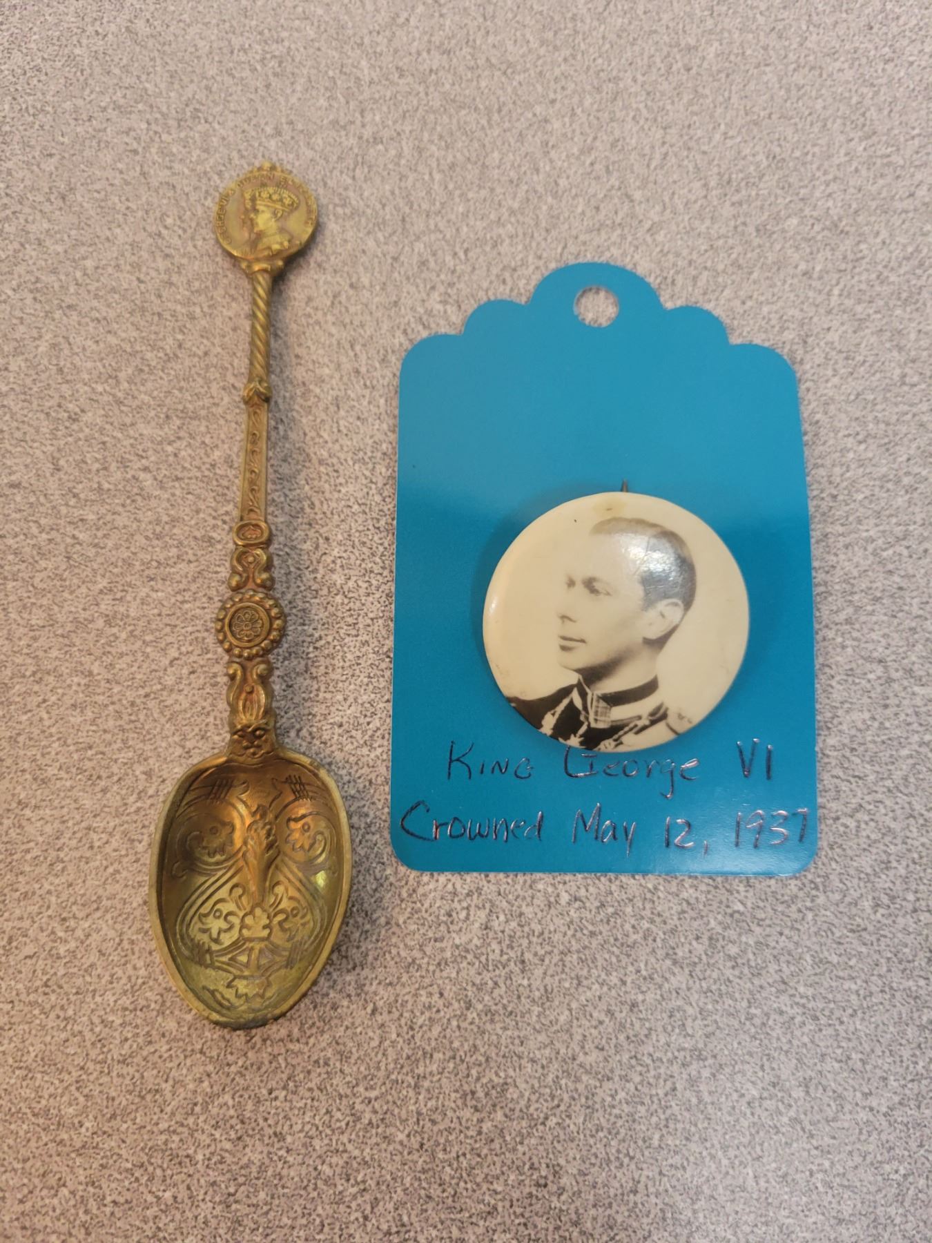 Pinback and Souvenir spoon, King George 1V, 1939