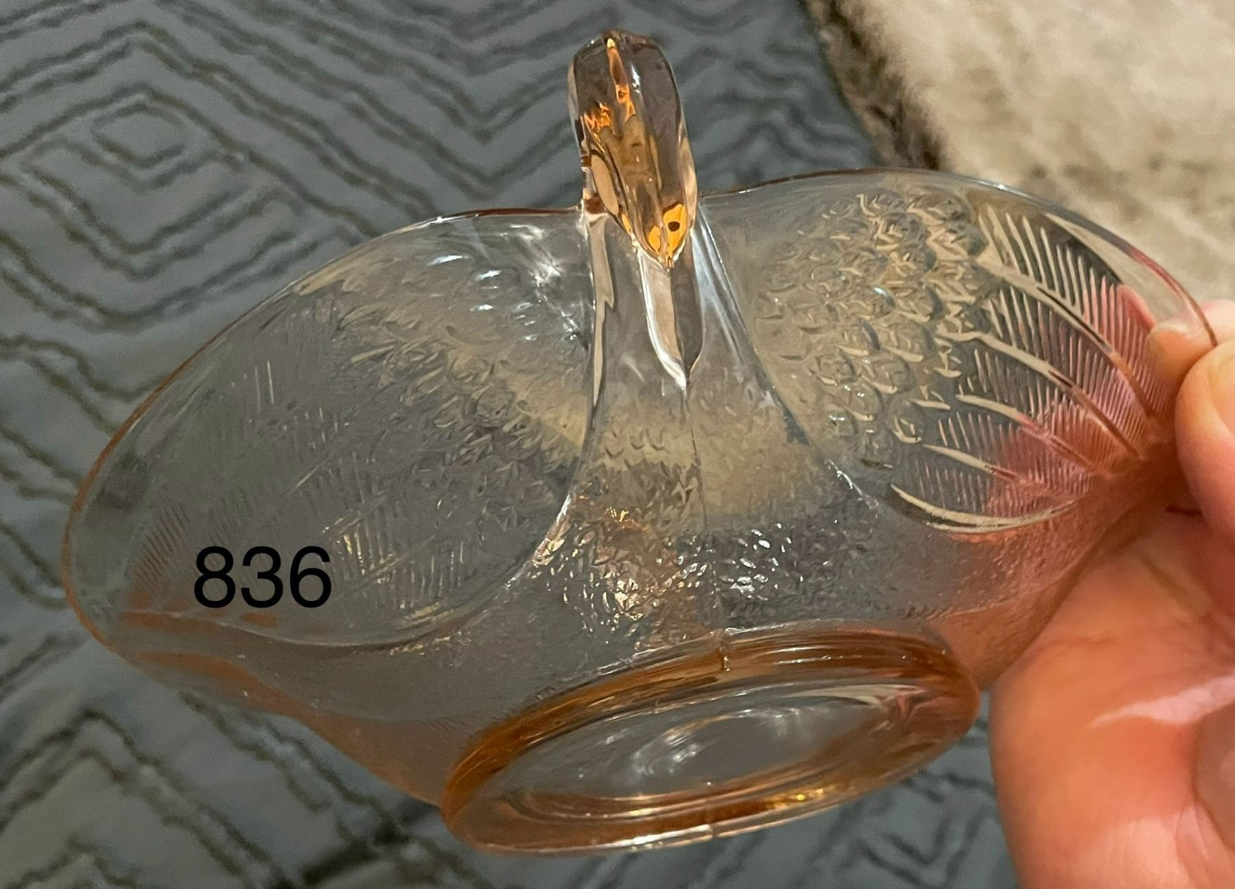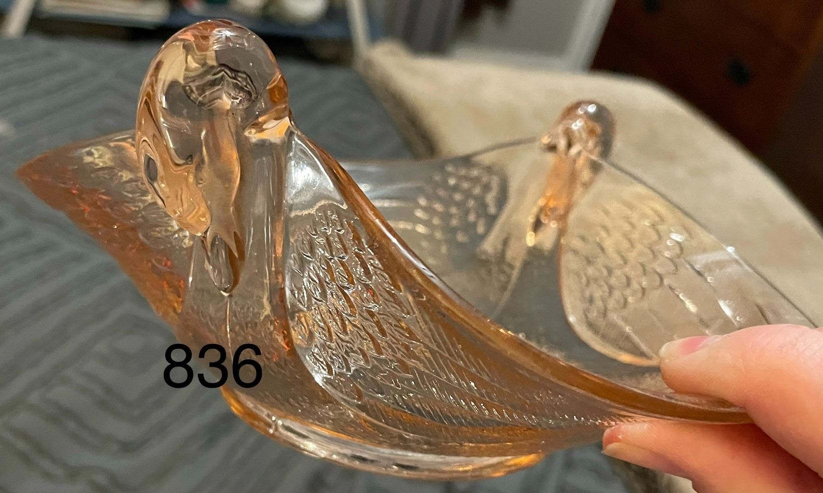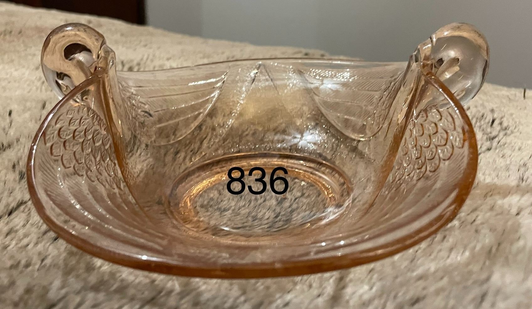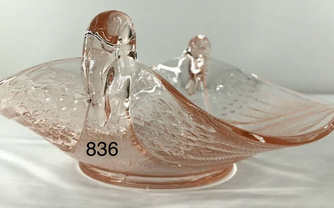 Pink, ? Depression glass, swan, candy dish. No chips or cracks