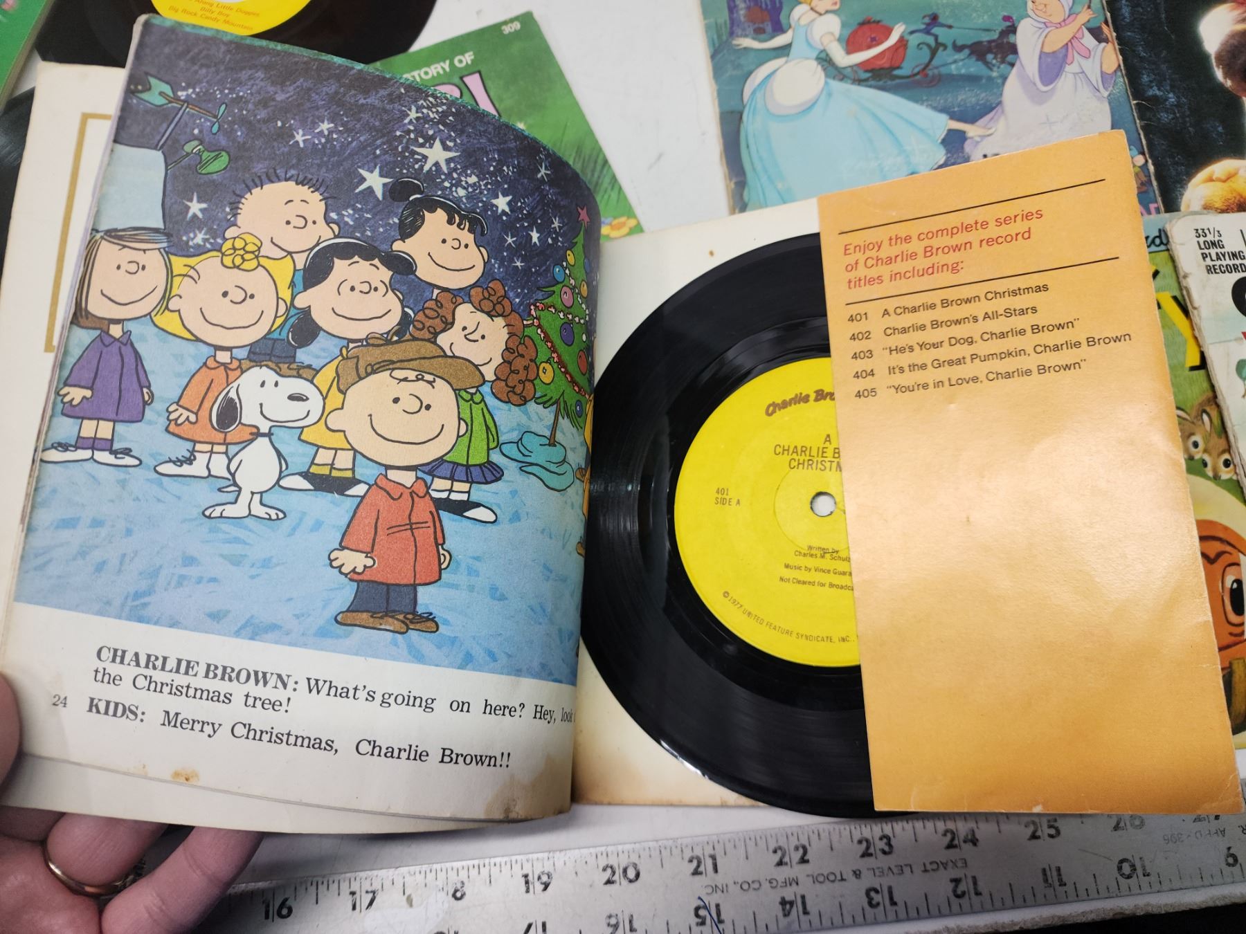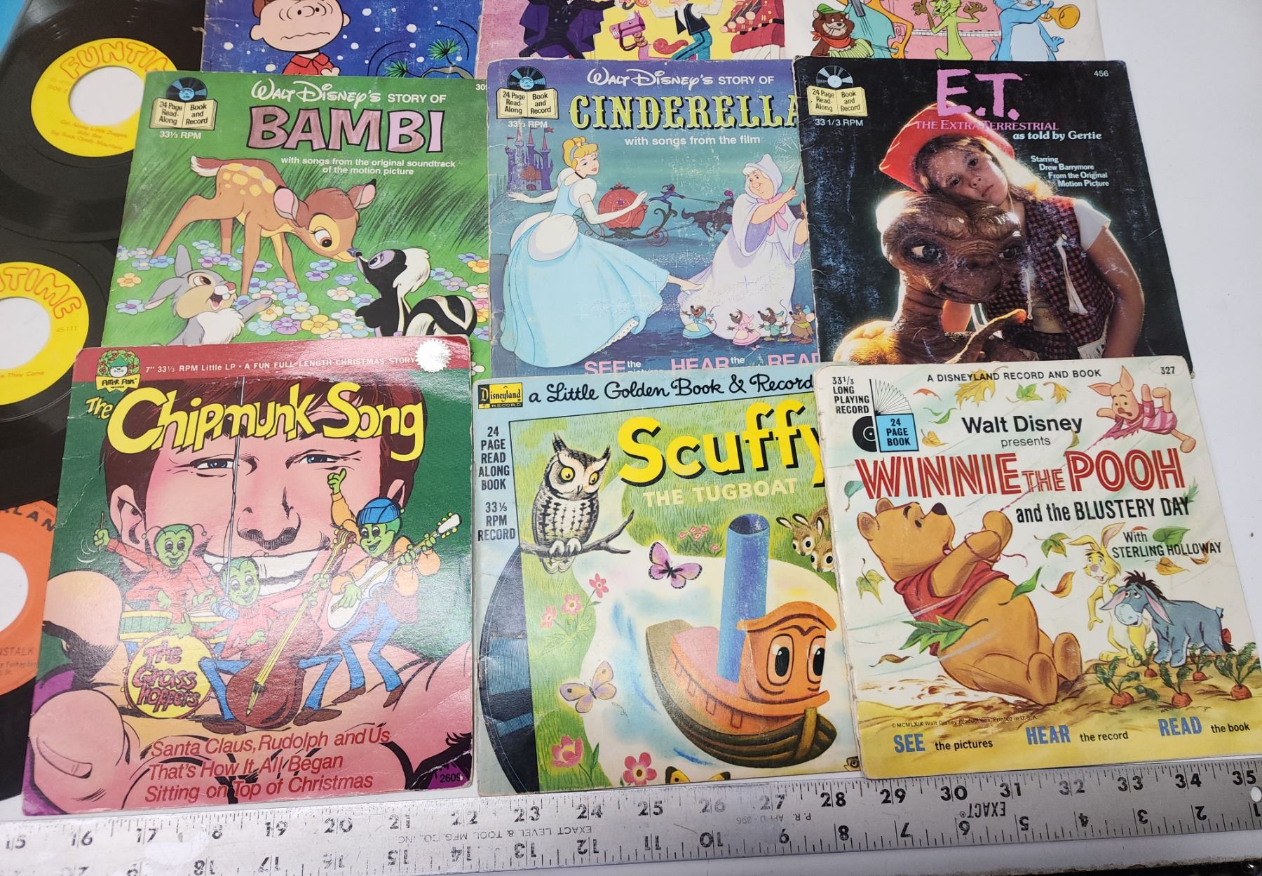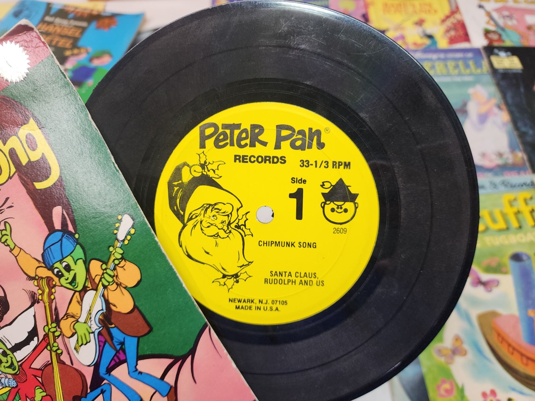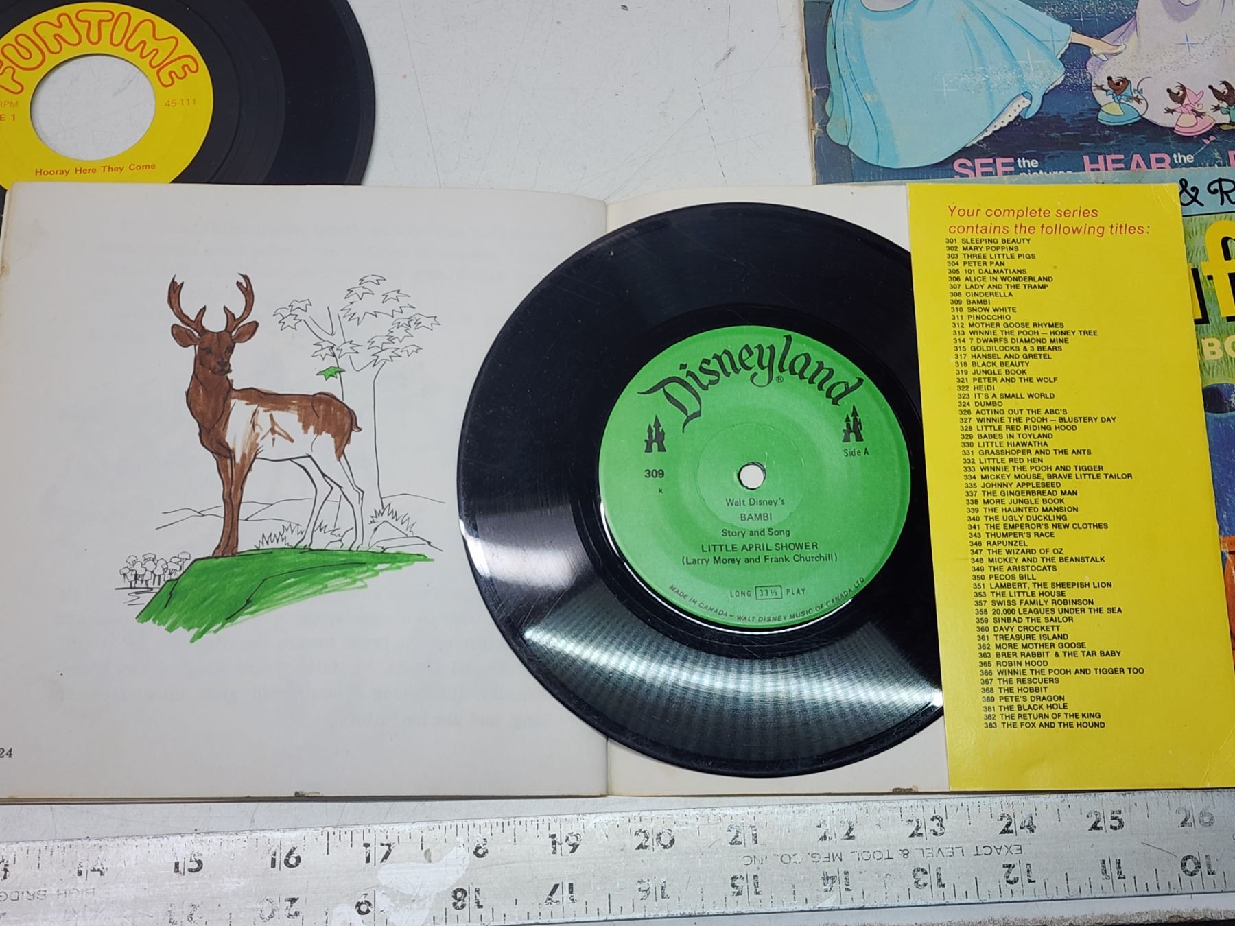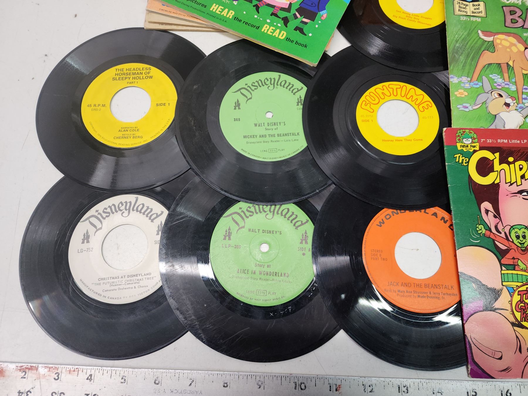 Pink & Orange containers - filled with kid's small 33rpm vinyl records