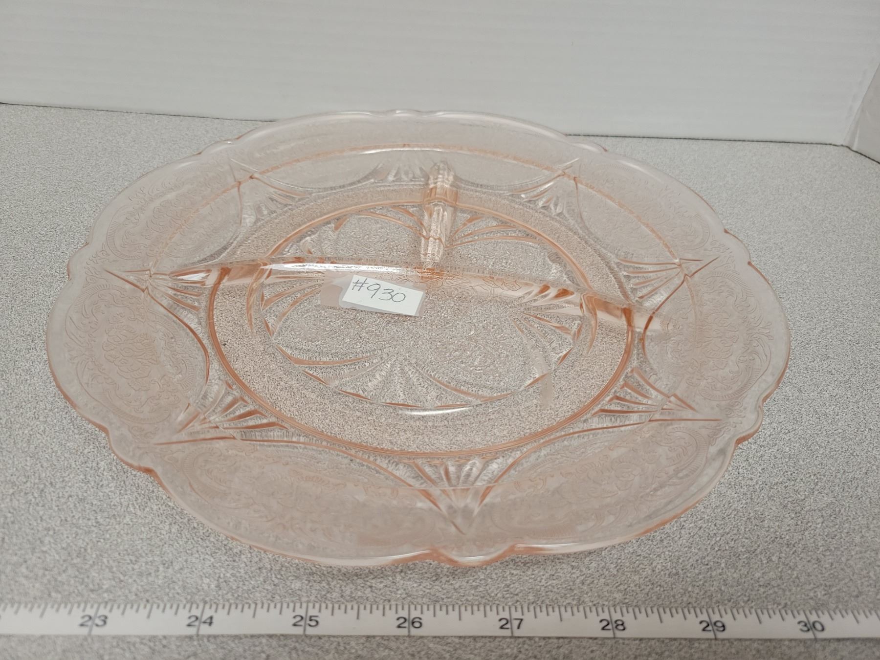 Pink depression glass grill plate, Royal Lace, 9 ½”