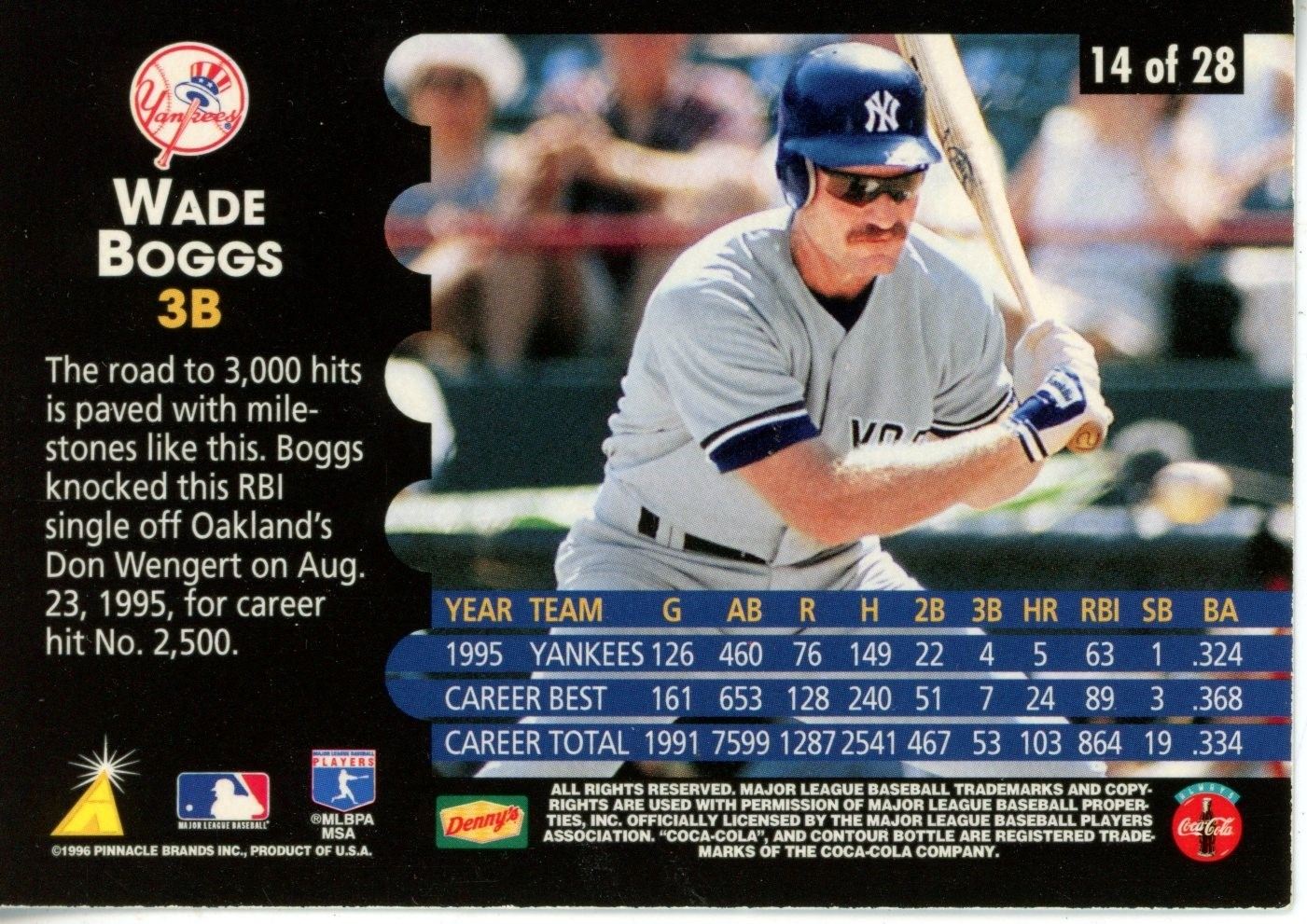 Pinnacle 1996 Baseball Card - Wade Boggs