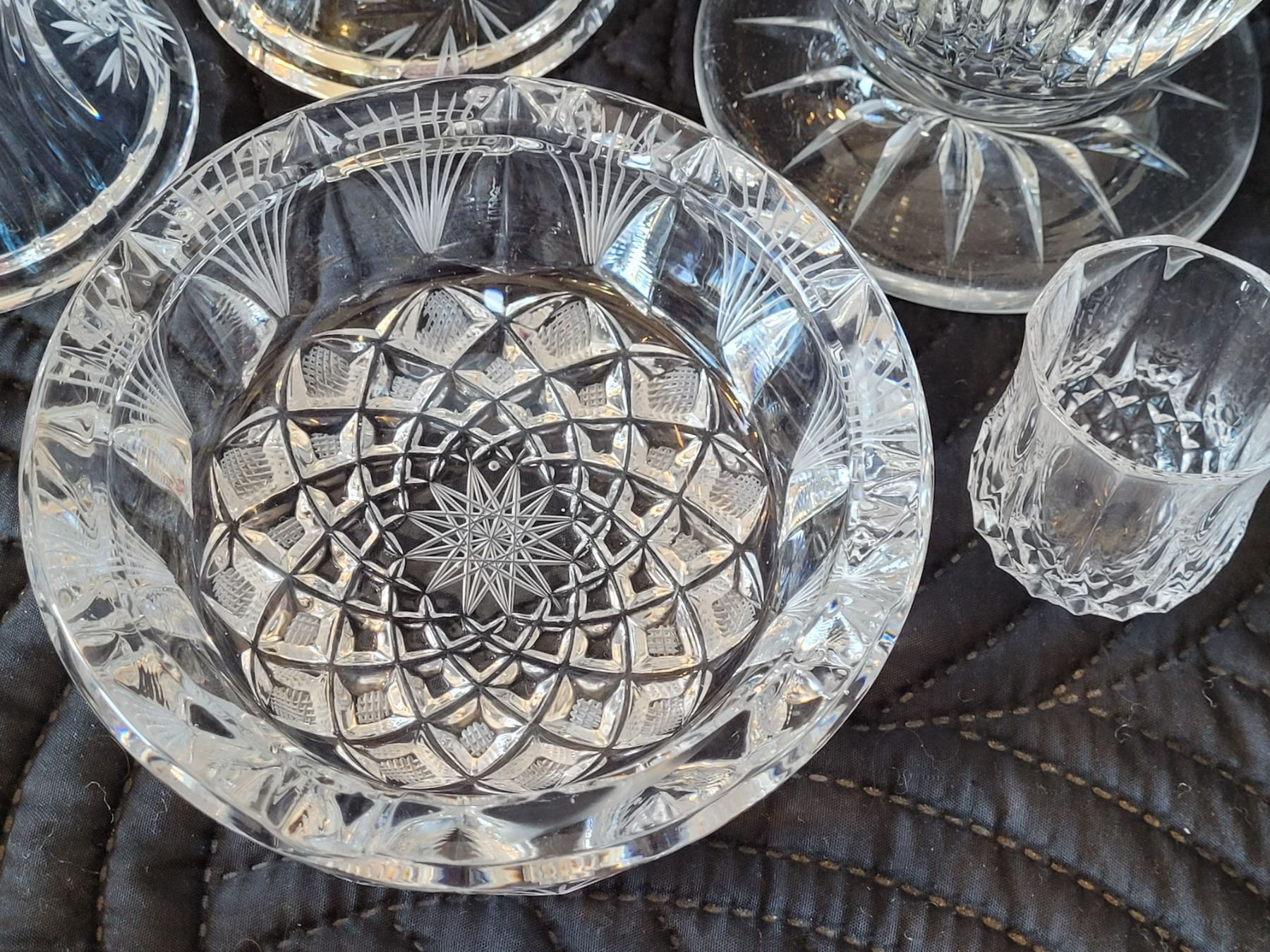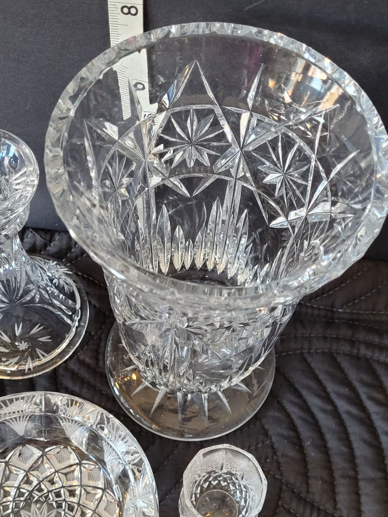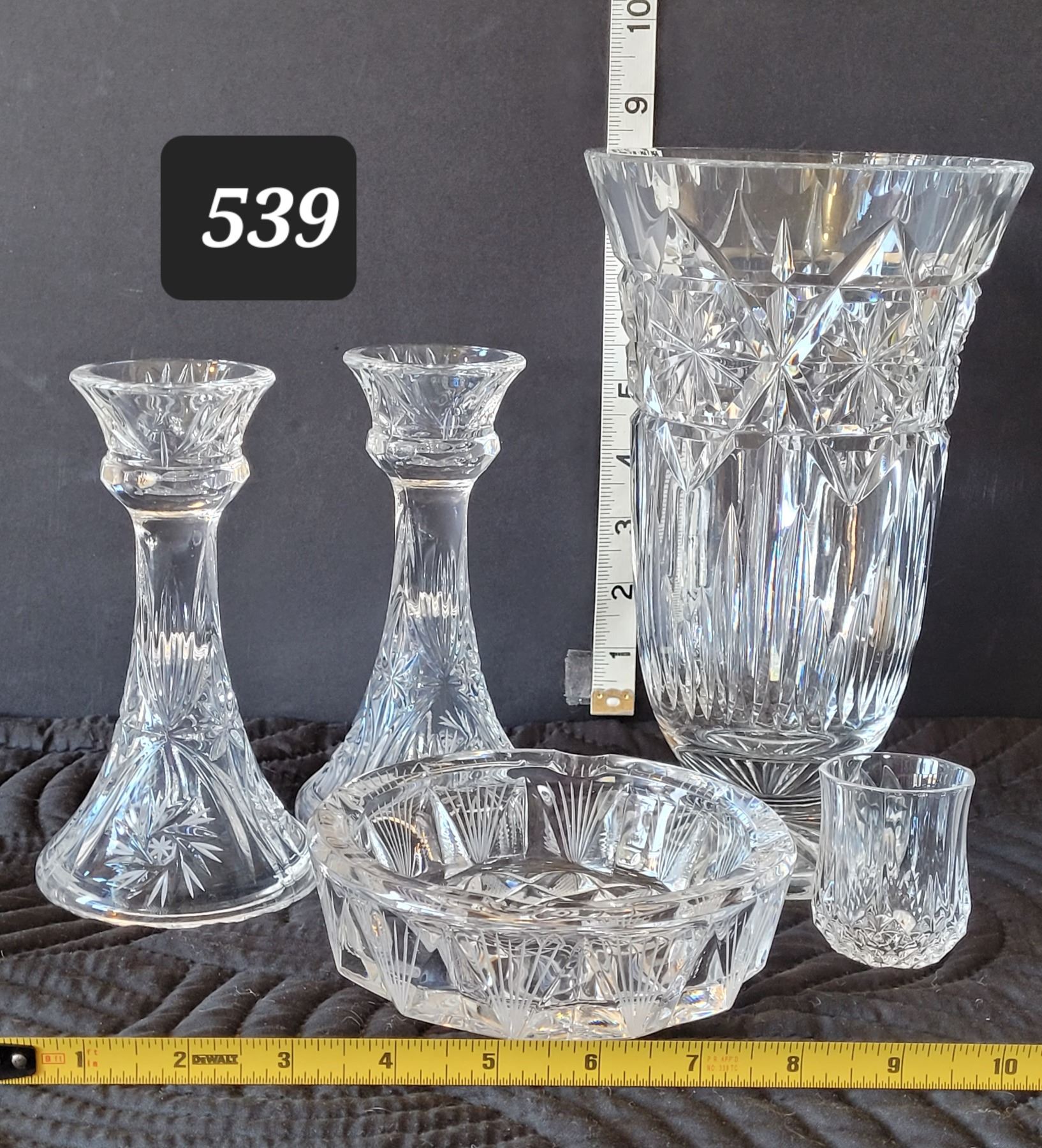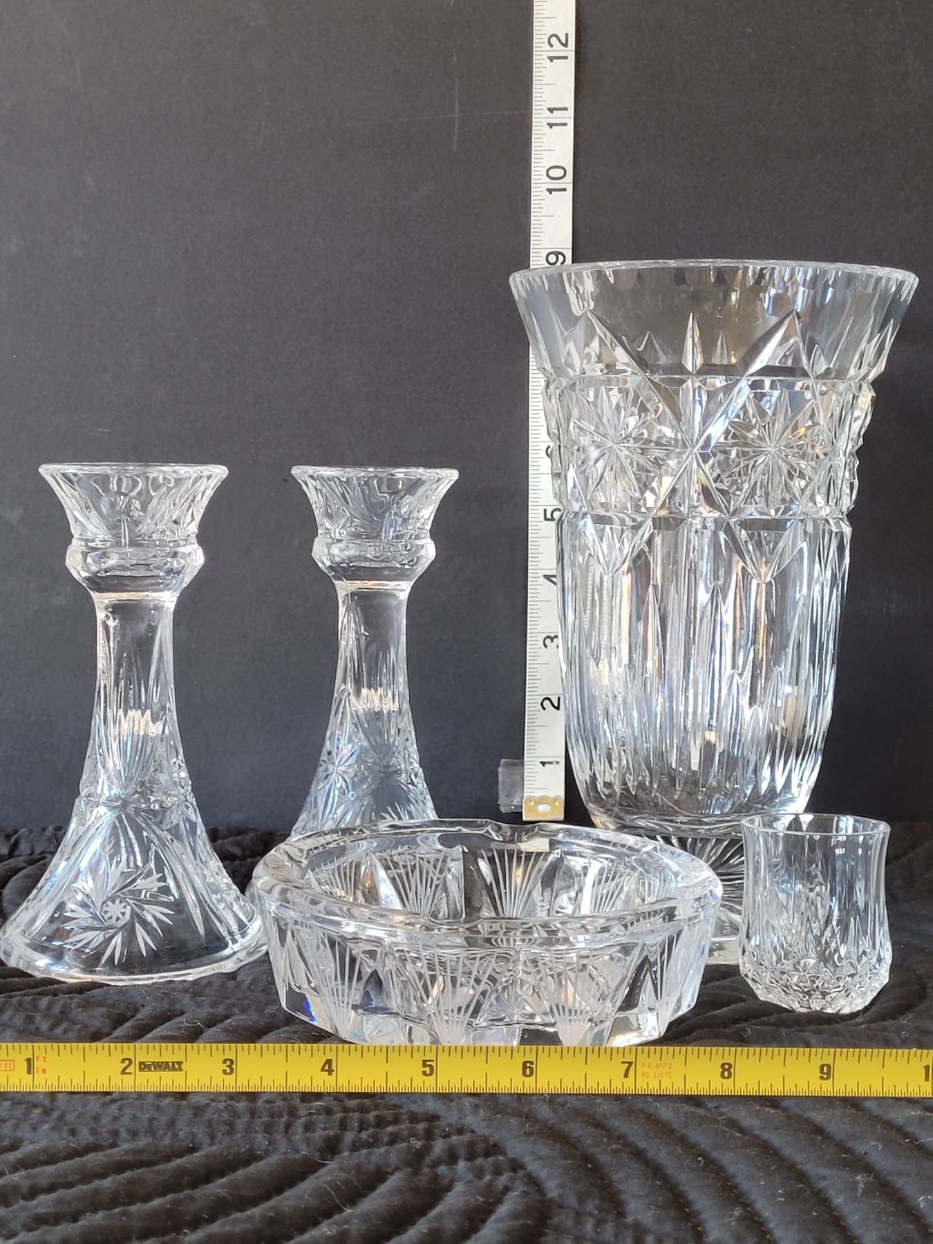 Pinwheel lead crystal. Vase, candle sticks, ashtray/ candy dish, toothpick vase.