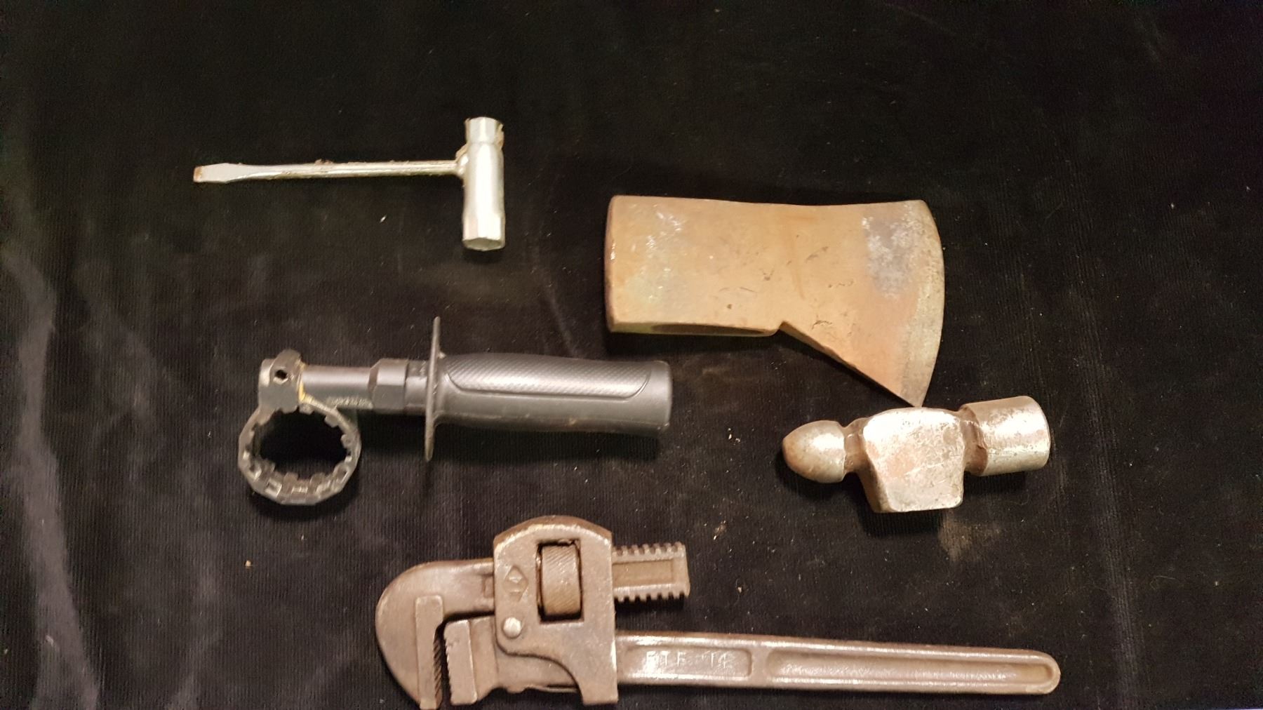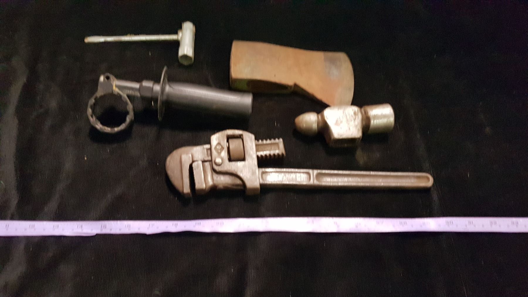 Pipe Wrench & Axe Head & Misc.
