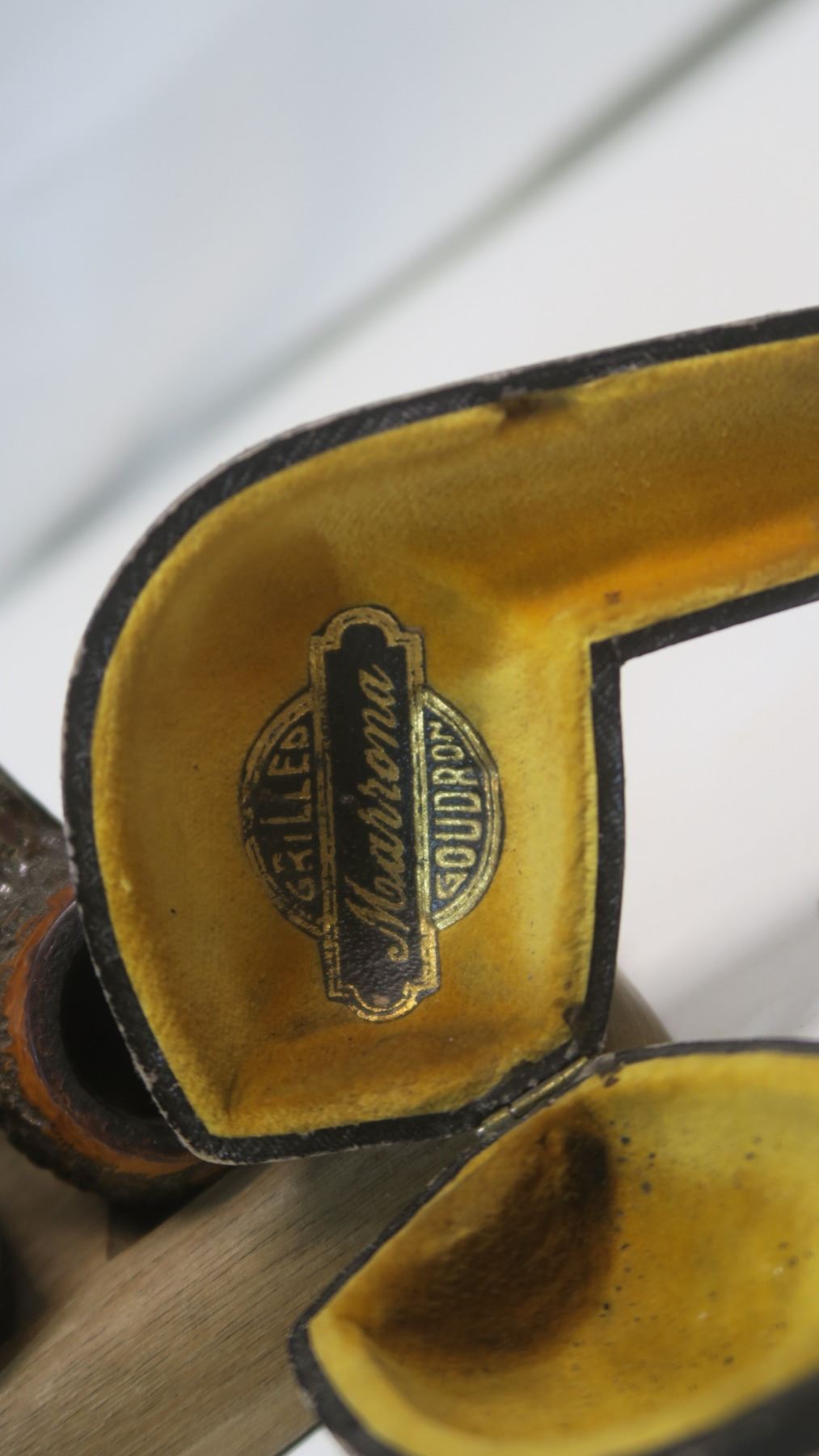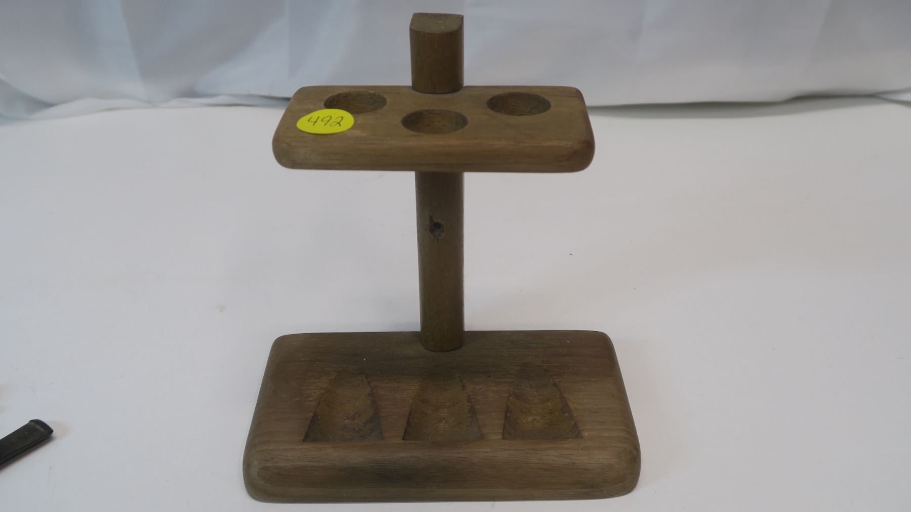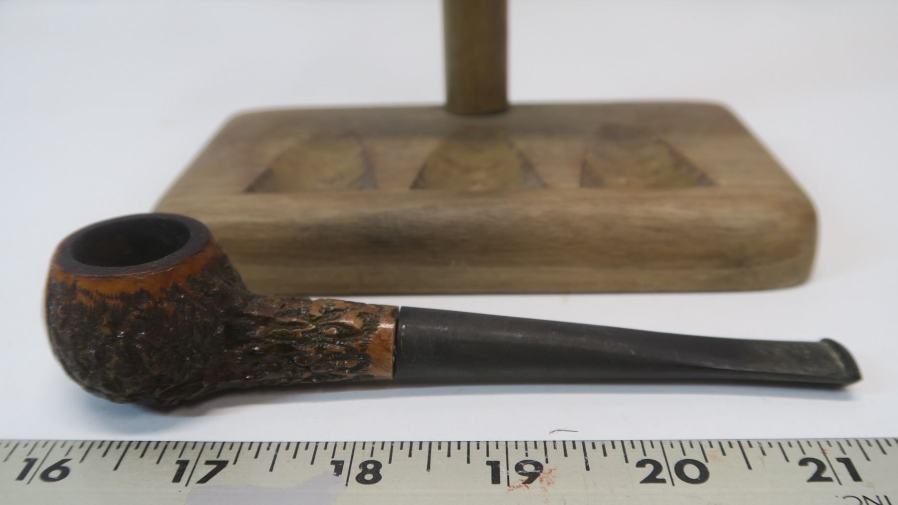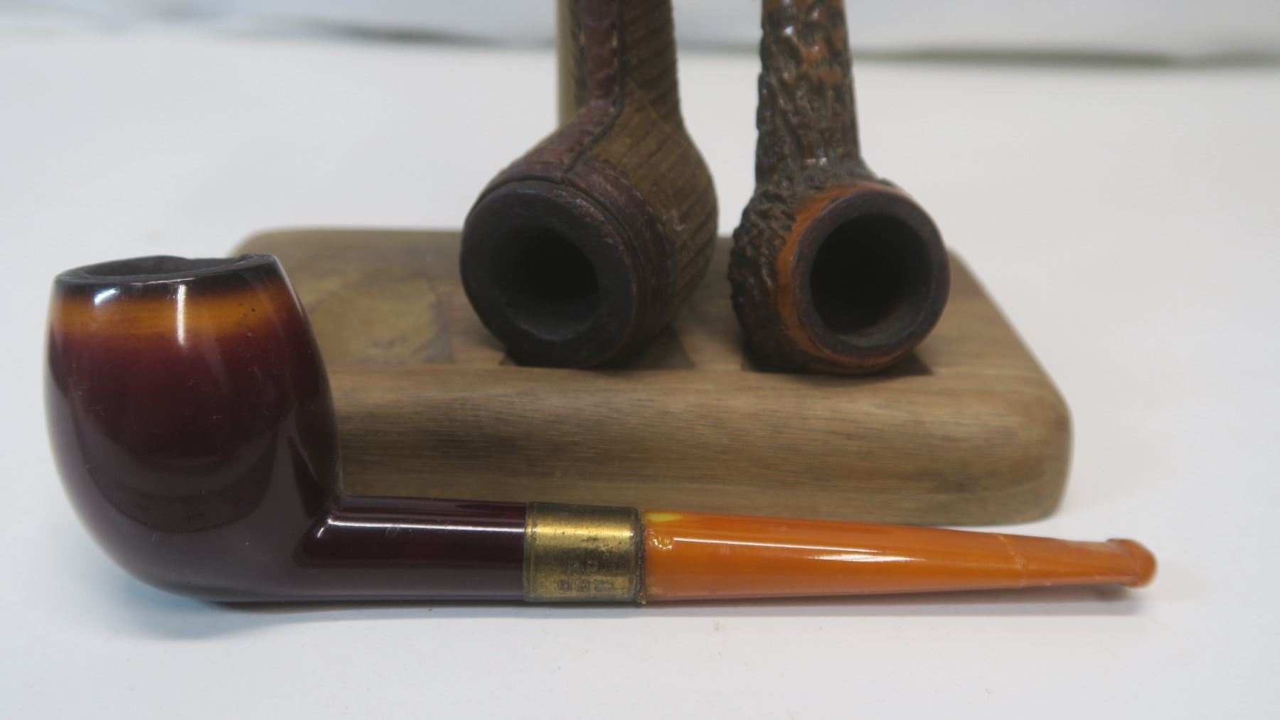 Pipe smokers set, 3 vintage pipes, pipe stand, vintage pipe case.