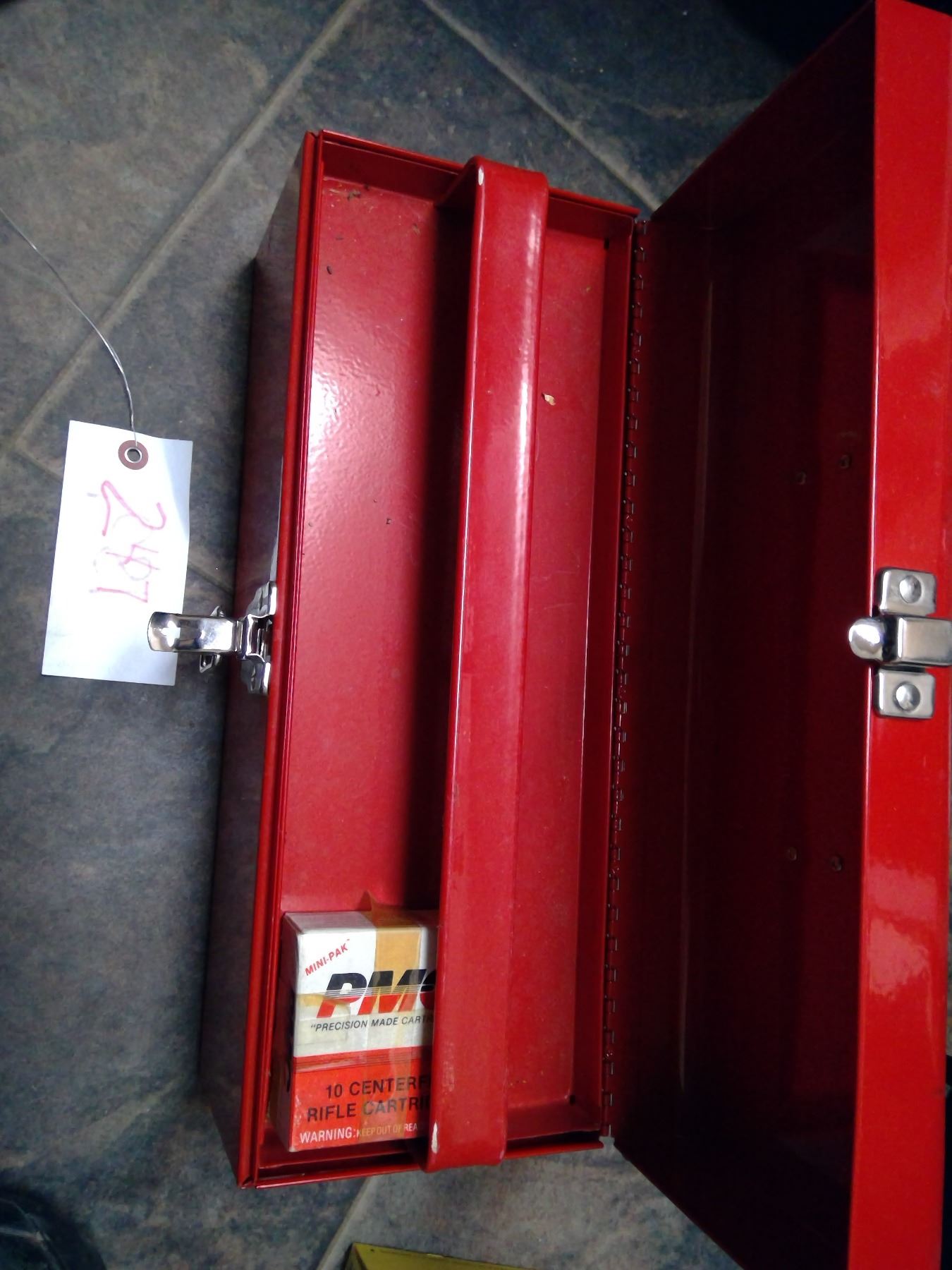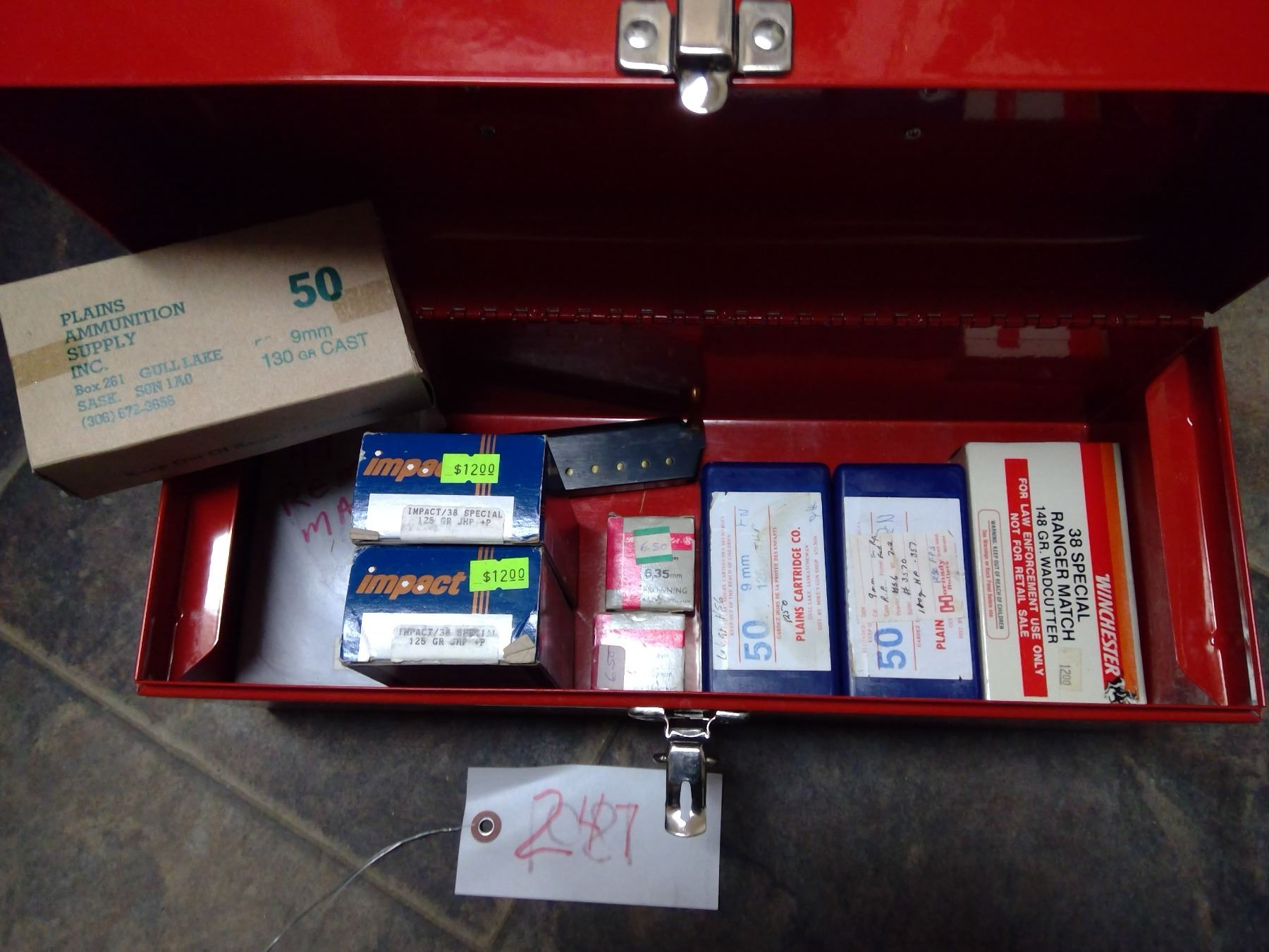 Pistol Ammo (44 REM Mag partial) 38 125 gr (2),38 148 Gr (1),Luger 9 mm (2 1/2), clip full of 45 ammo, 1 1/2 box of 6, 35 ammo in red tool box Cannot ship PAL required