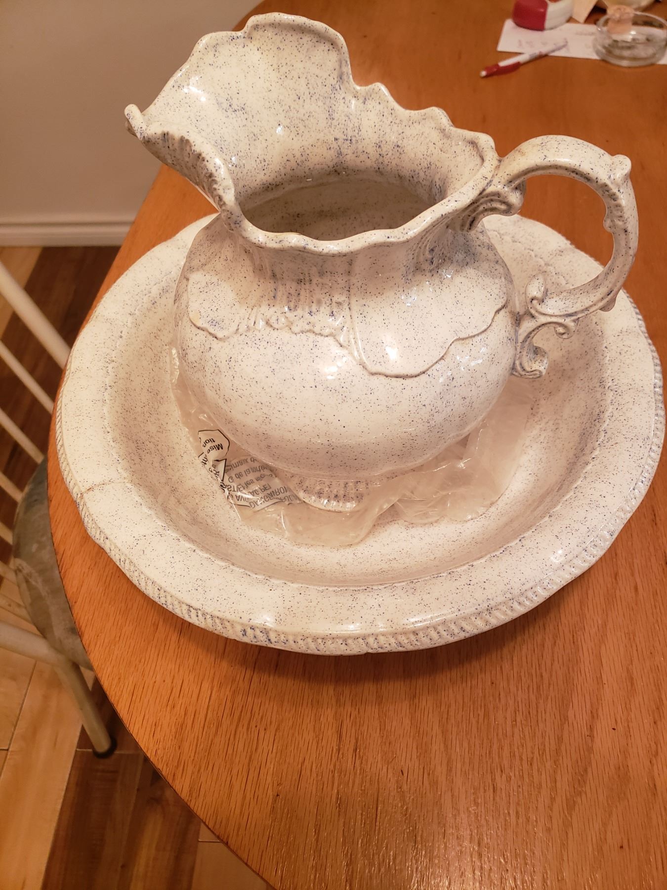 Pitcher and wash basin set, basin cracked pitcher no chips or cracks