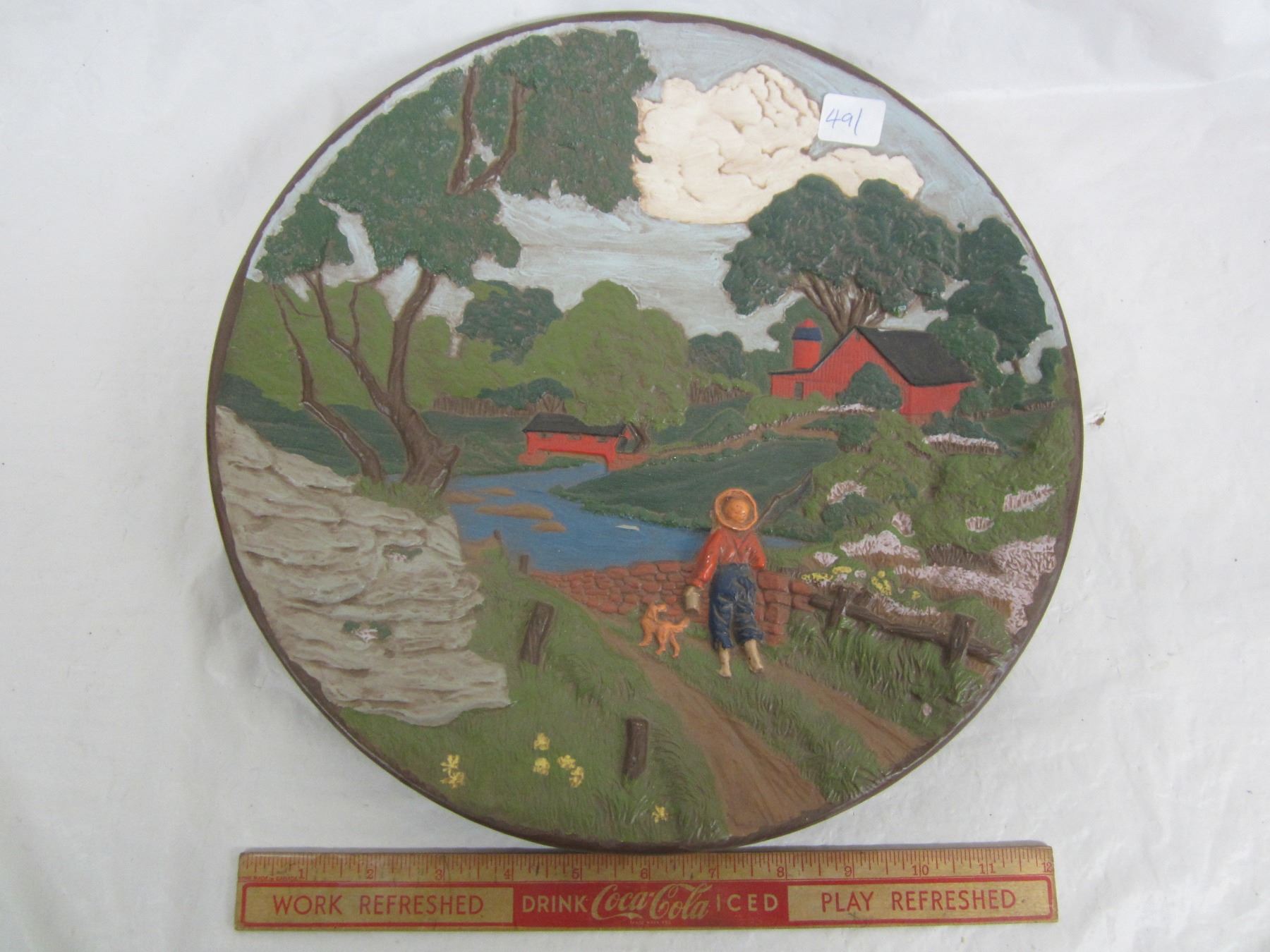 Plaster Plaque from Byron Molds 1972 with Farm Scene