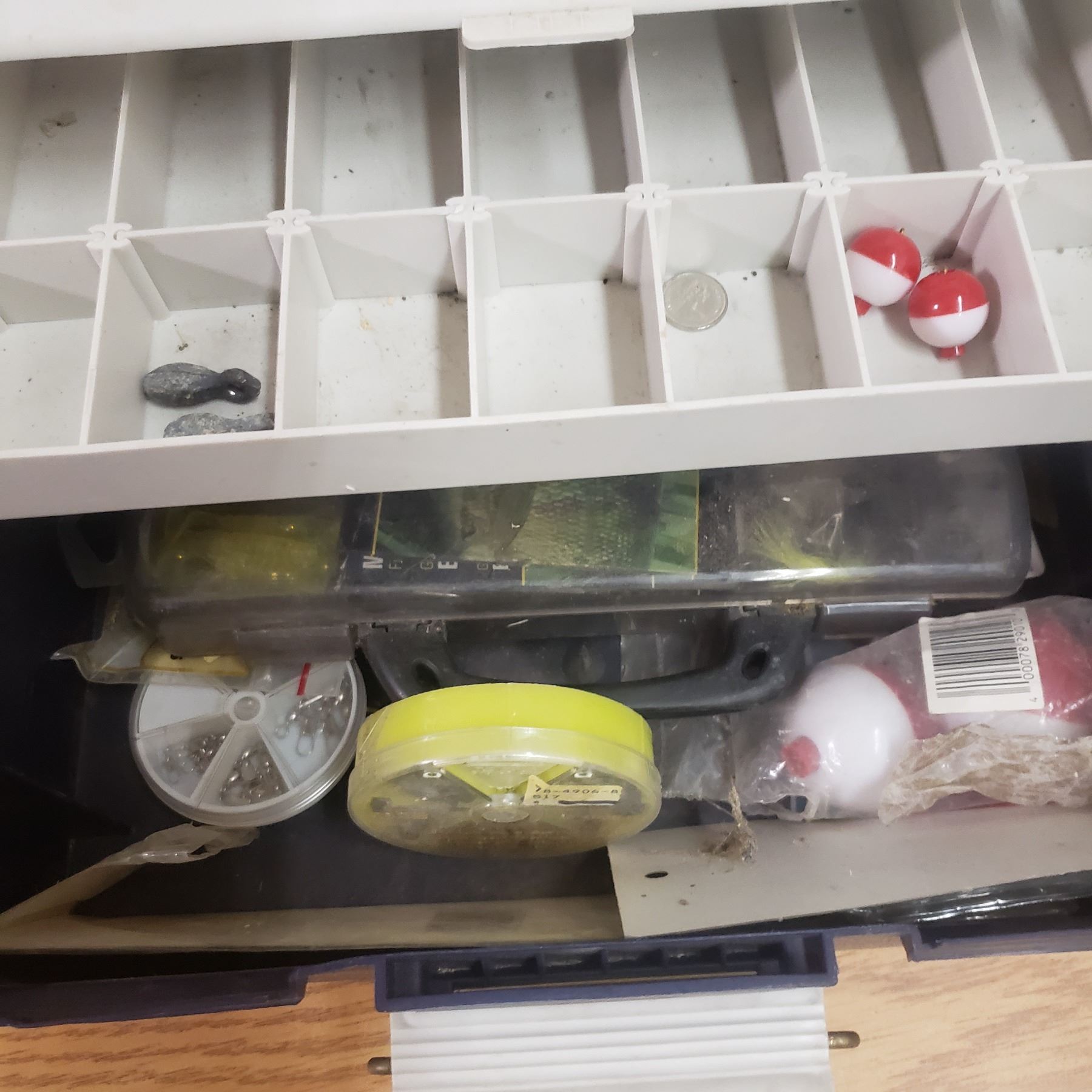 Plastic wood stream tackle box with hooks