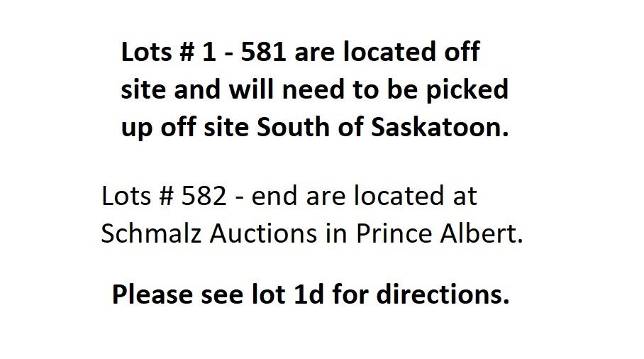 All items are located off site South of Saskatoon. All items will need to be picked up off site. Please see lot 1d for directions.