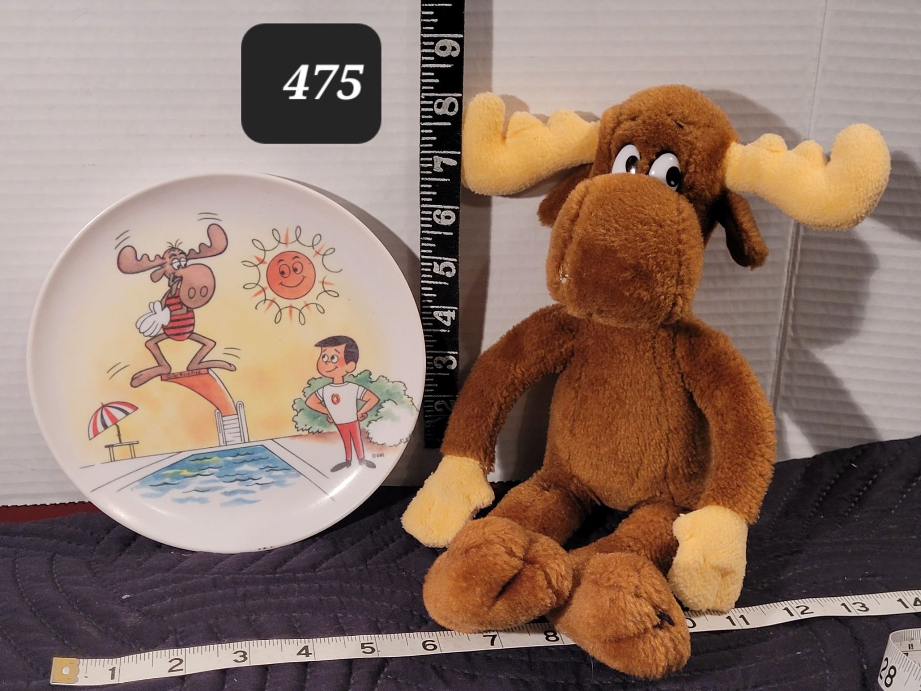 Plush Bullwinkle the moose & vintage Melmac plate.