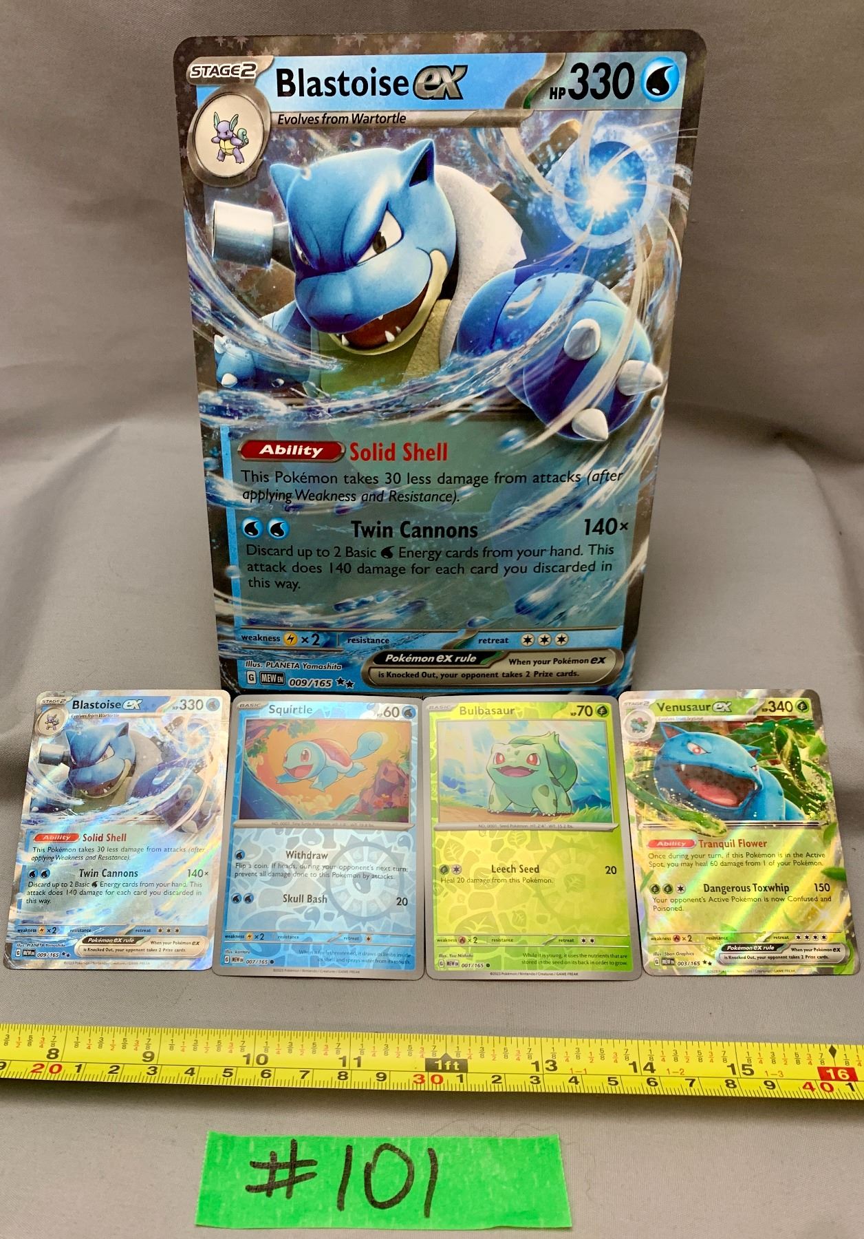 Pokemon Blastoise EX Jumbo #009/165 & 4 x Promo Holo Cards From 151 Blooming Waters Boxed Sets