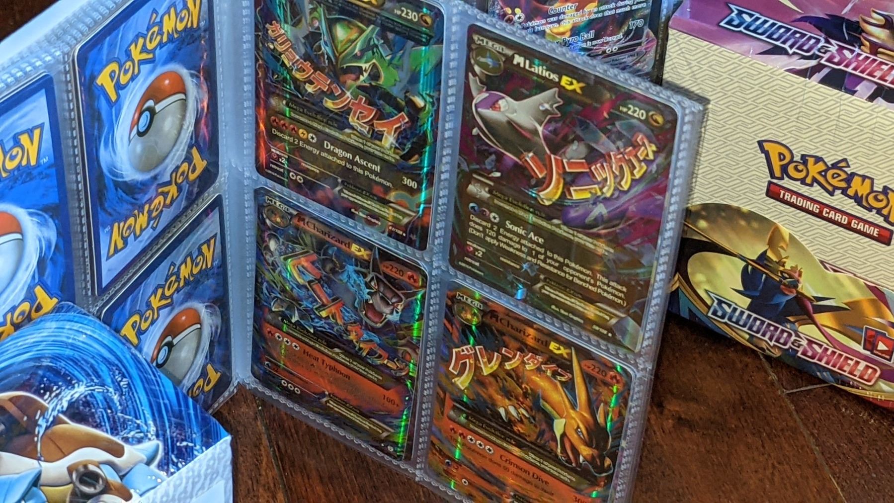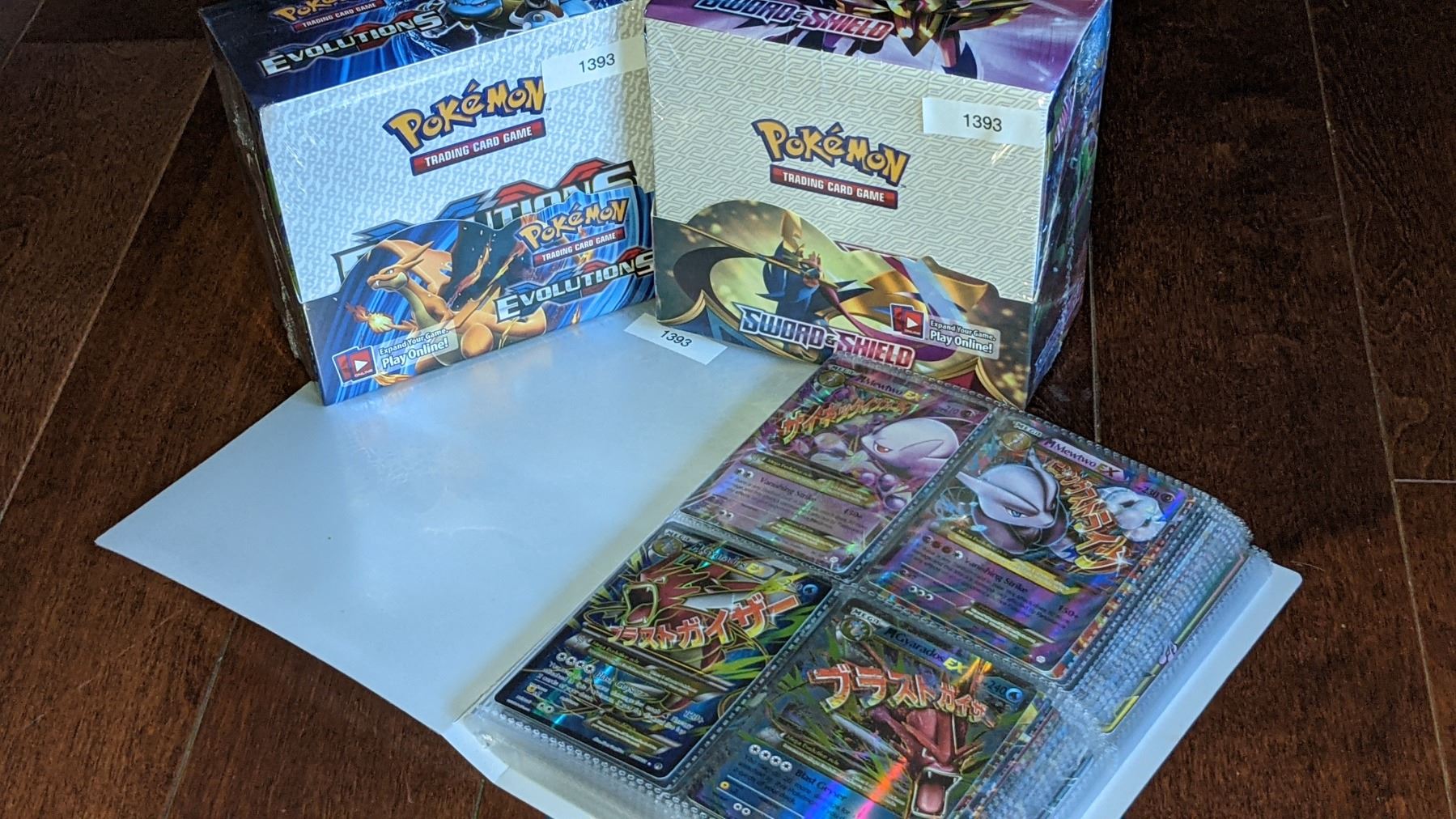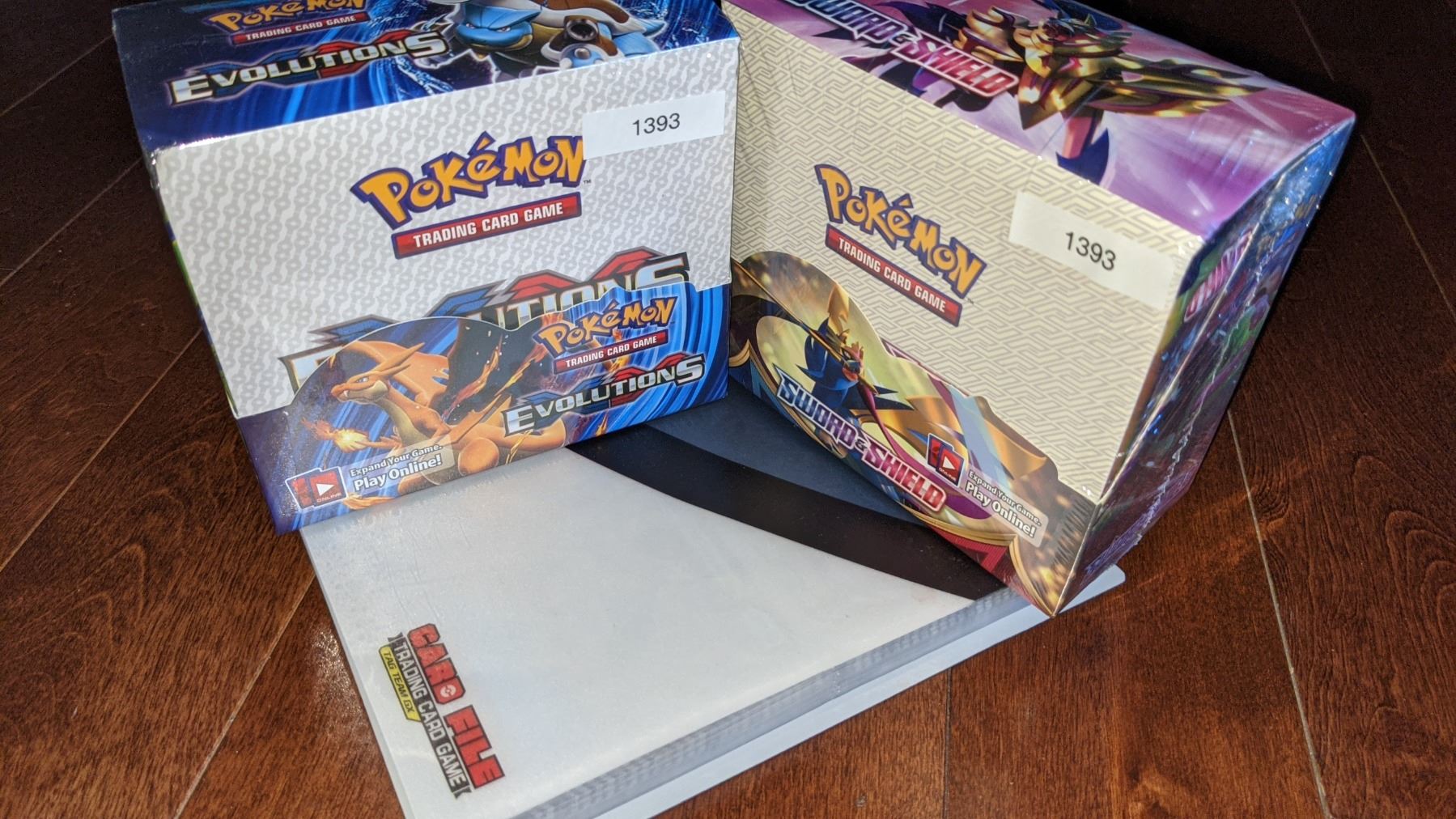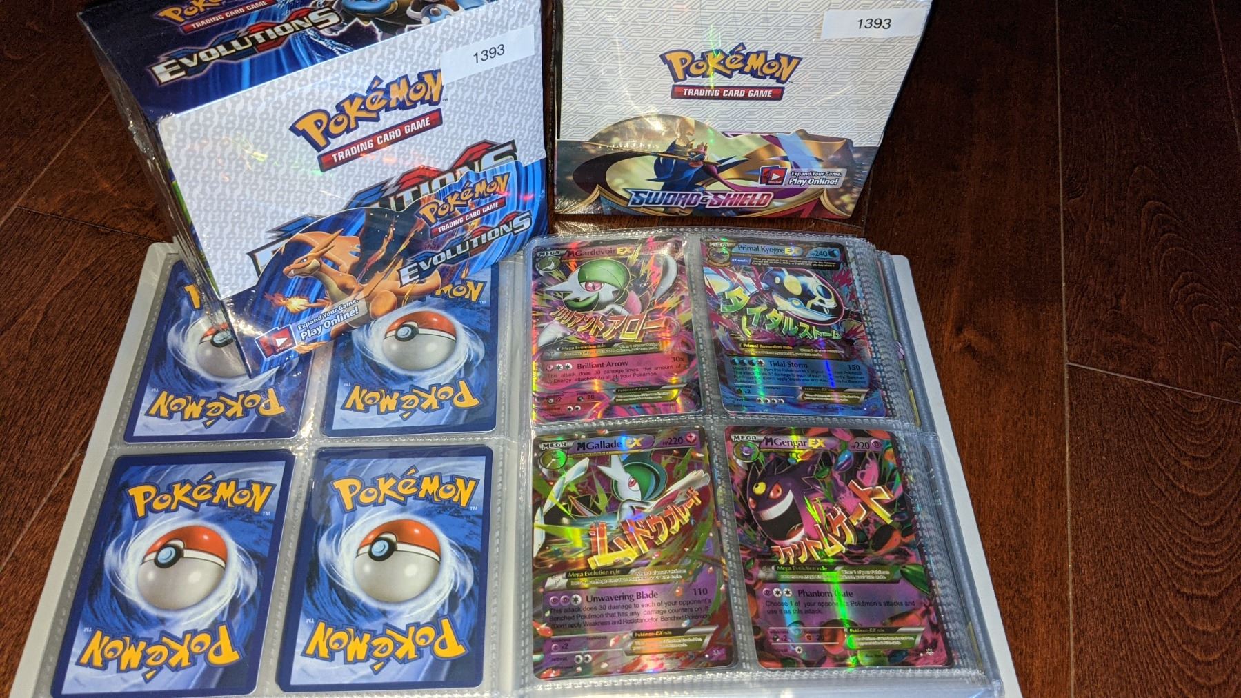 Pokemon Cards all holographic card file with 120 near-mint, excellent condition cards. XY Evolutions sealed booster box and Sword & Shield sealed booster box, each with 324 cards, 36 individually sealed packs per box, 9 cards per pack.