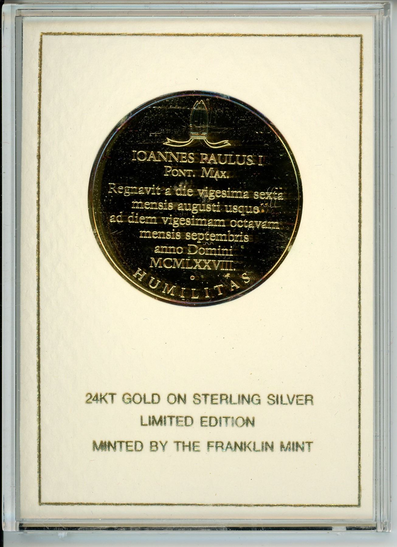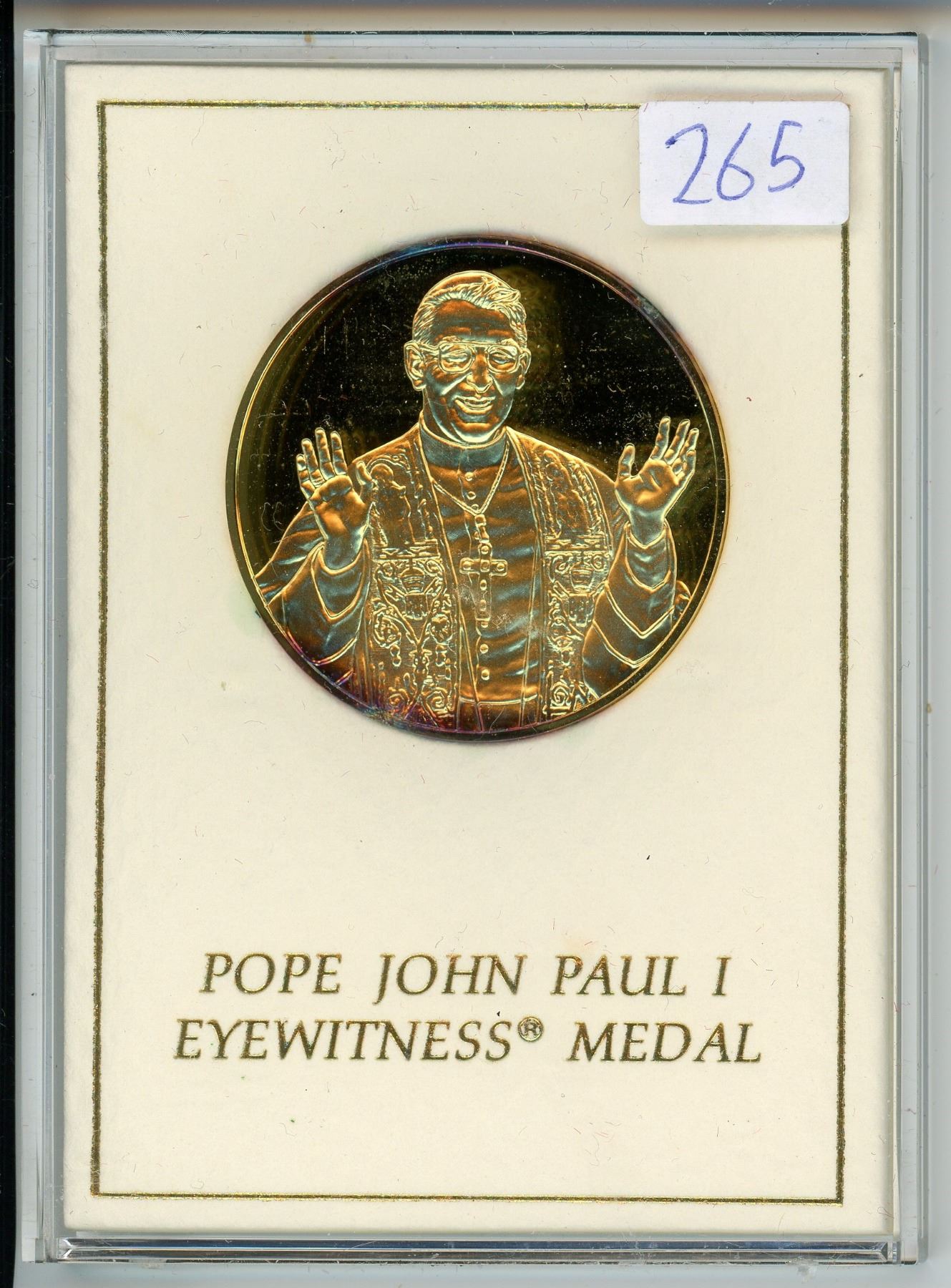 Pope John Paul I Eyewitness Medal. Sterling Silver with 24-karat Gold Plating. Housed in its original hard plastic holder.