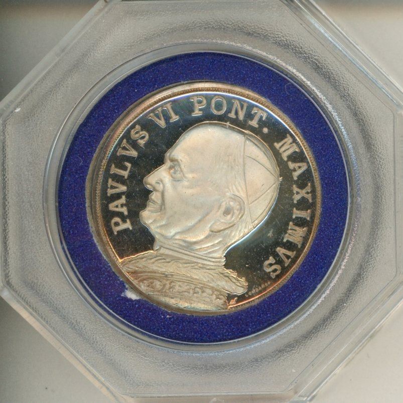 Pope Paul VI Silver Medal. Pope from 1963 – 1978. Housed in a hard plastic holder. BU.