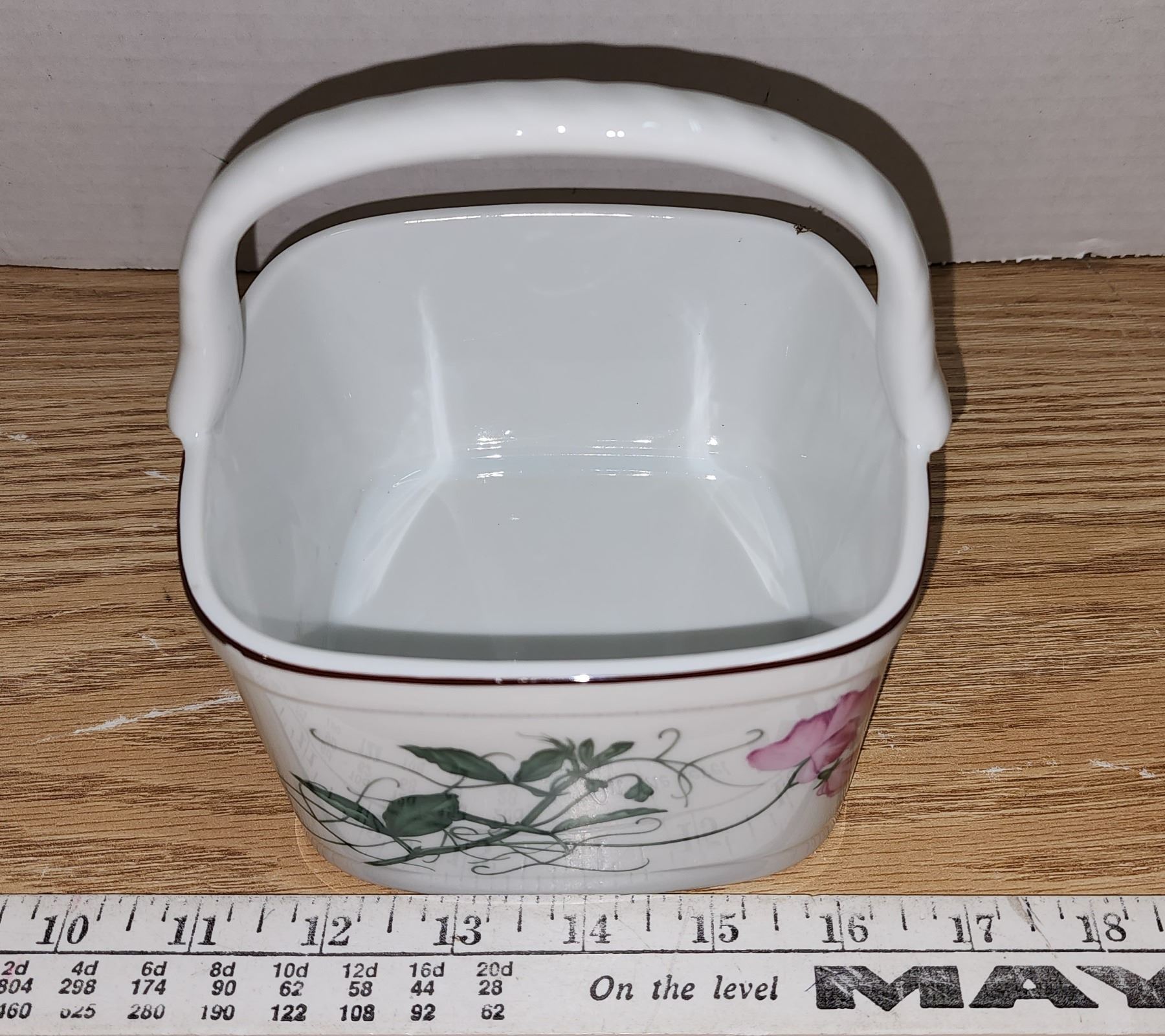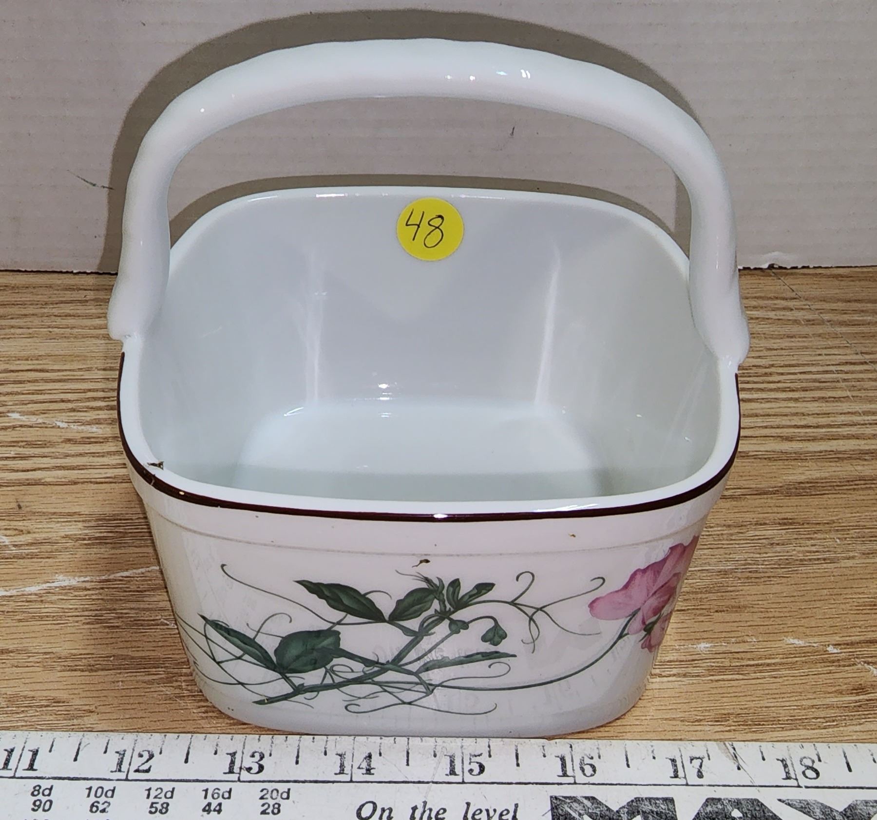 Porcelain Botanical Basket by Y'ohta signature - Vintage