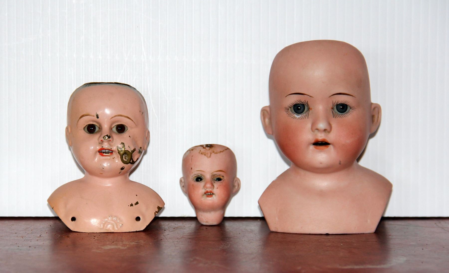 Porcelain Heubach-Koppelsdorf No 275, No 201 Germany and Tin Doll Head, All glass eyes and teeth int